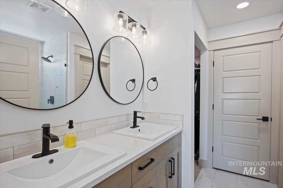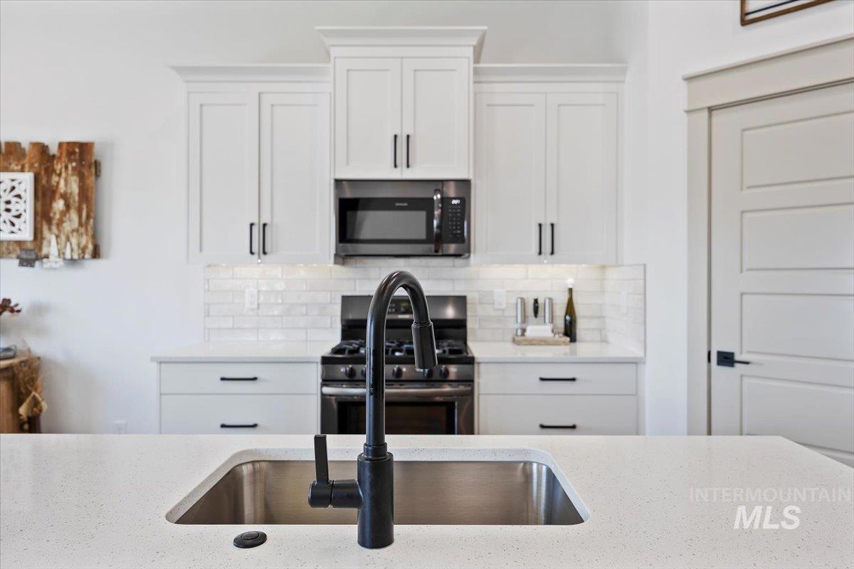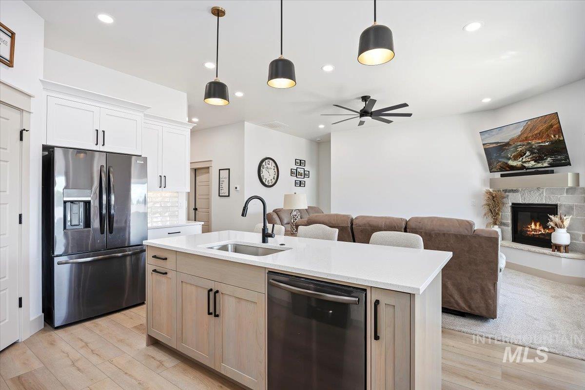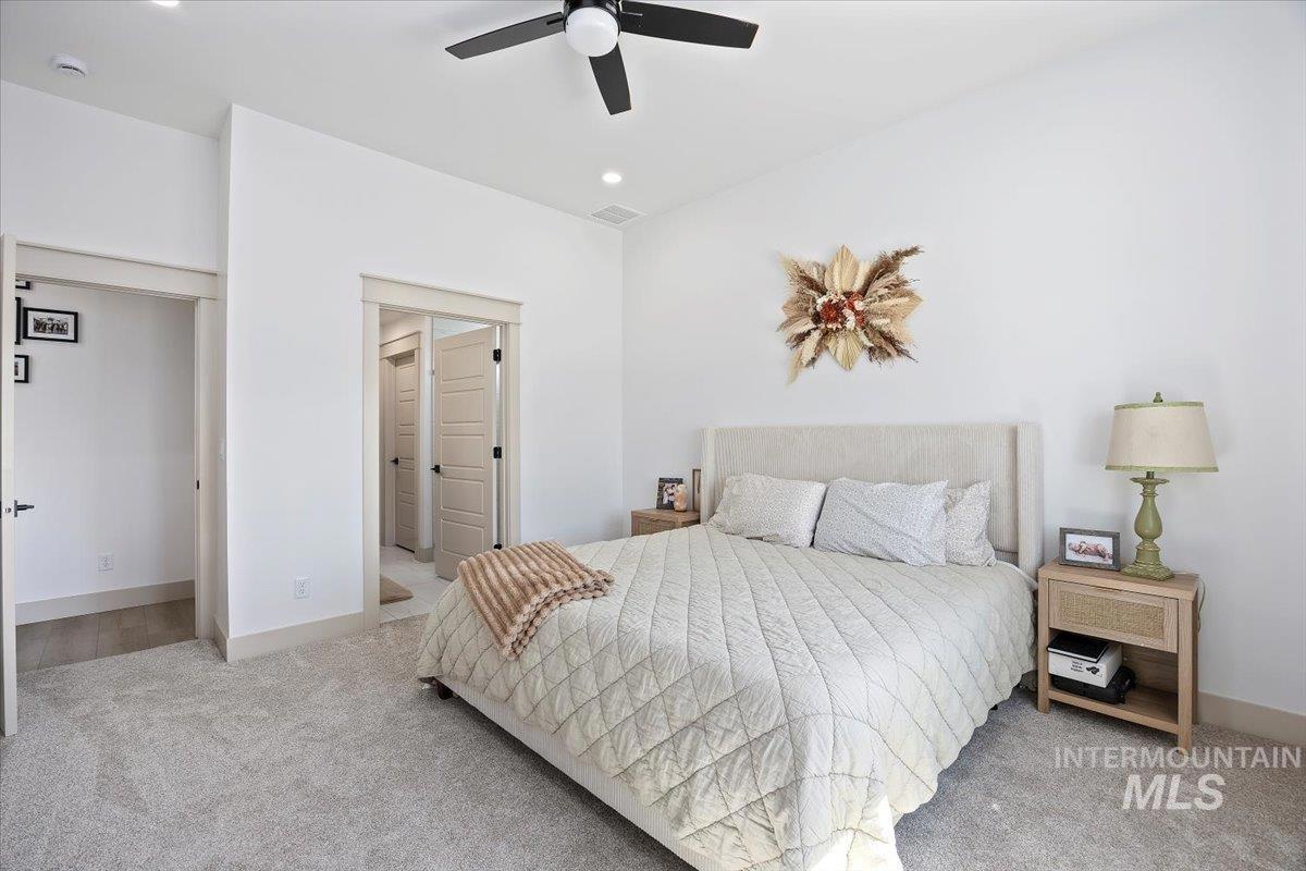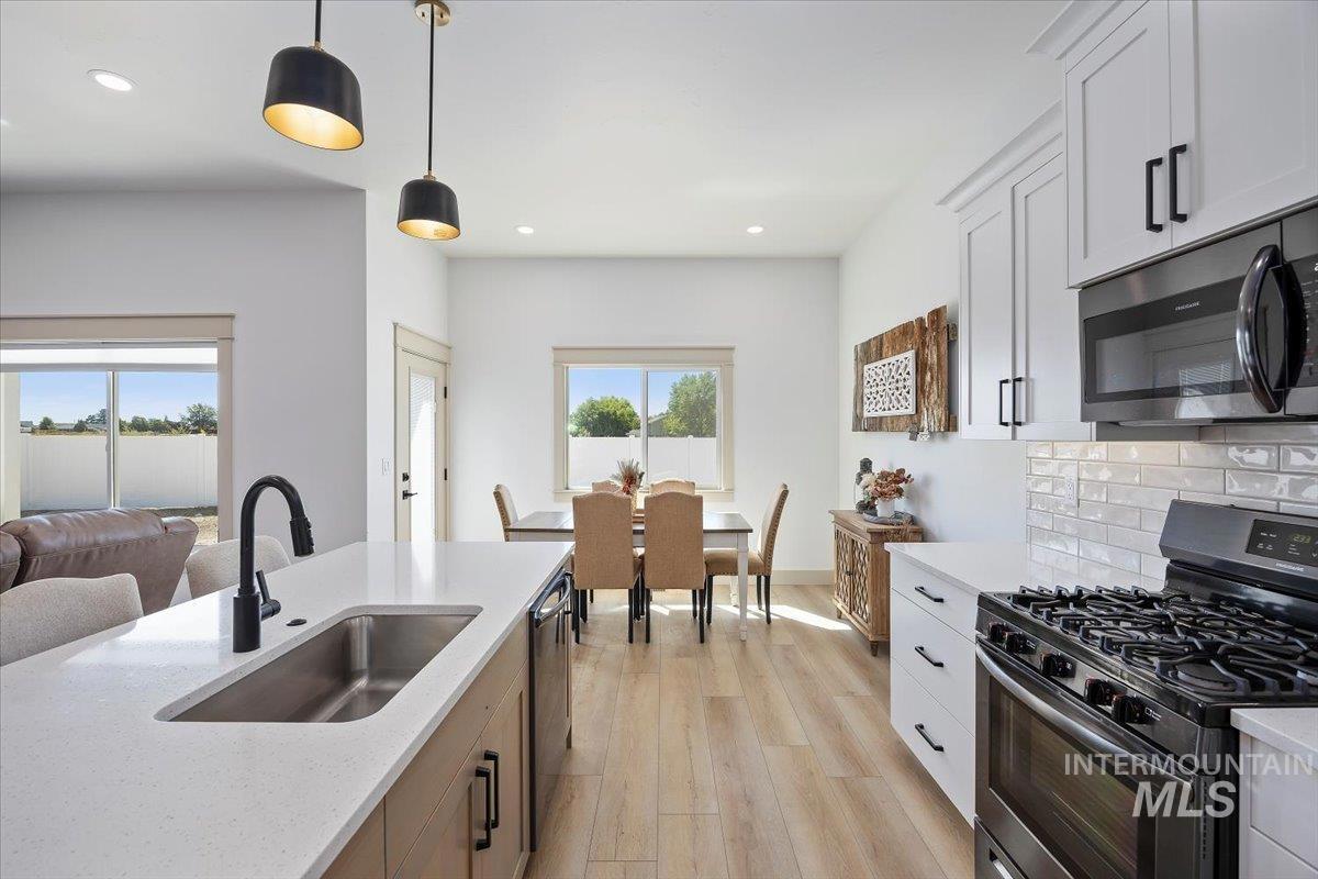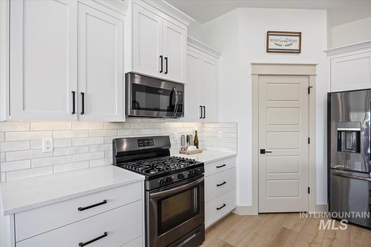 Welcome to this stunning 1,501 square foot residence, designed and built by Riverfront Custom Homes. This home features a spacious three-car garage, three bedrooms, and two full baths. Upon entering, you`ll be impressed by the ten-foot ceilings in the entry, family room, and dining, creating a sense of openness and grandeur. The home is filled with natural light, thanks to the large windows that adorn the living spaces. The kitchen is a highlight, offering custom alder cabinetry, a corner pantry, a large island, and elegant quartz countertops. It`s a perfect blend of style and functionality, ideal for both everyday cooking and guests. This home is also designed with accessibility in mind, featuring wide hallways and 36" wide doors and a roll-in tiles shower, making it ideal for wheelchair users. The east facing back yard will allow for many afternoon spending time in the shaded back yard. The exterior boasts Masonite wood siding complemented by beautiful stone accents, adding to its curb appeal. Pics similar