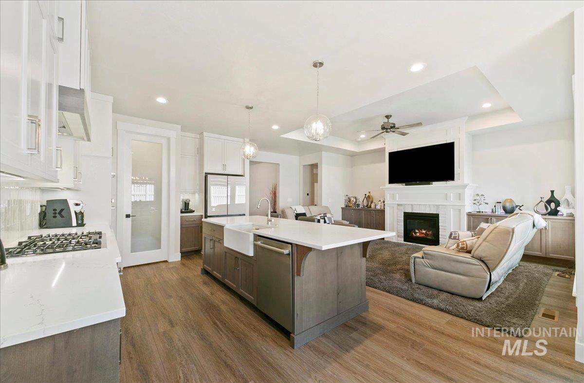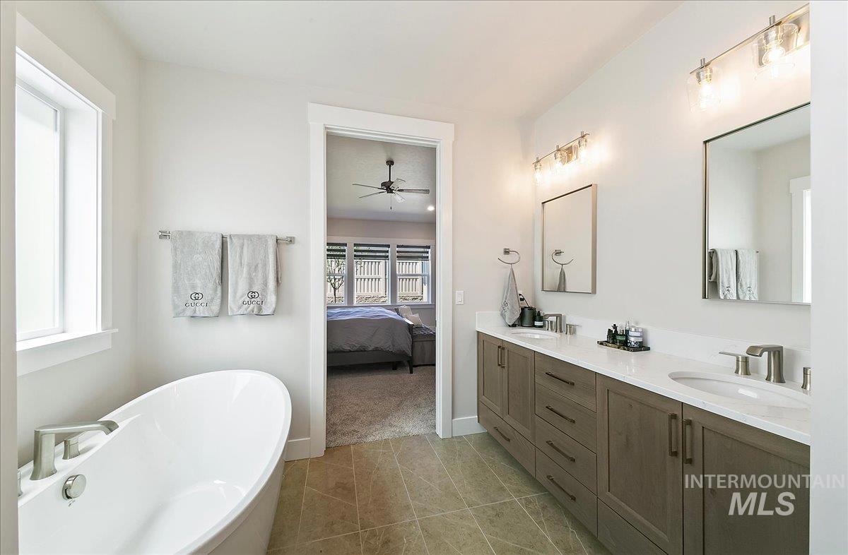 Barely lived in- Built in 2024, this single-level Camas floor plan sits on a desirable fully fenced corner lot next to the community pickleball court, w/access to community pool and modern neighborhood amenities. The home features a 3-car tandem garage with epoxy floors, EV charging capability, and a finished interior. Inside, enjoy quartz countertops, dual vanities, a walk-in master tiled shower, spacious walk-in closet, and a smart split-bedroom design. Custom blackout blinds, owned solar panels, Energy Star and Hers Rating round out this energy-efficient, move-in-ready home.