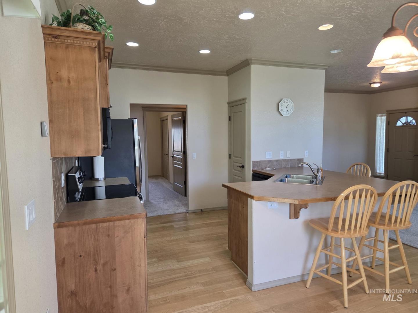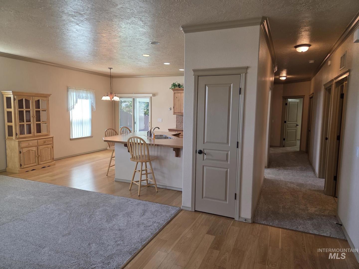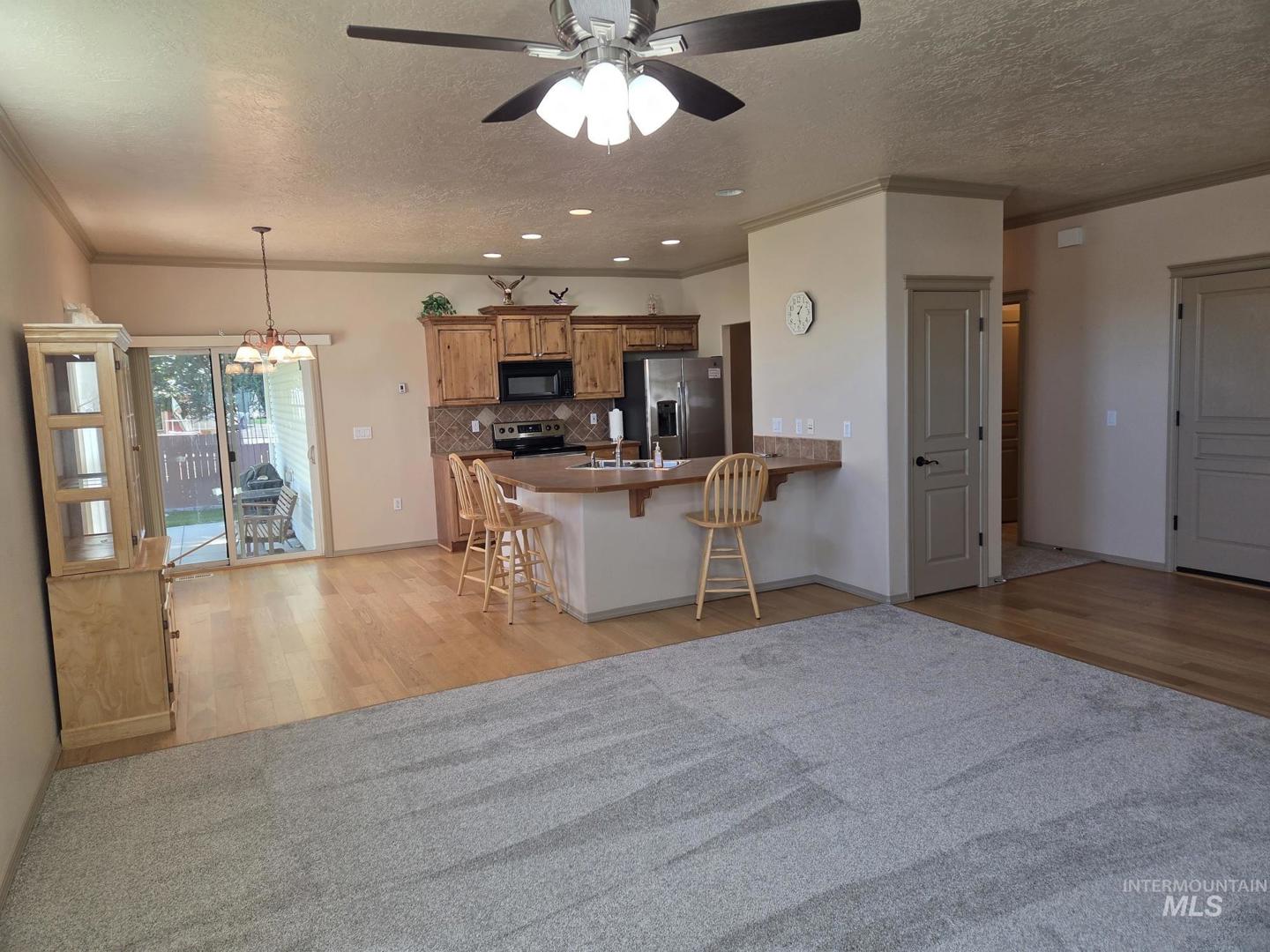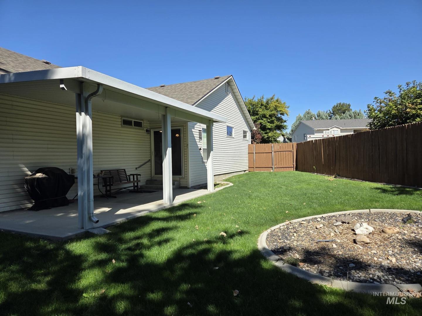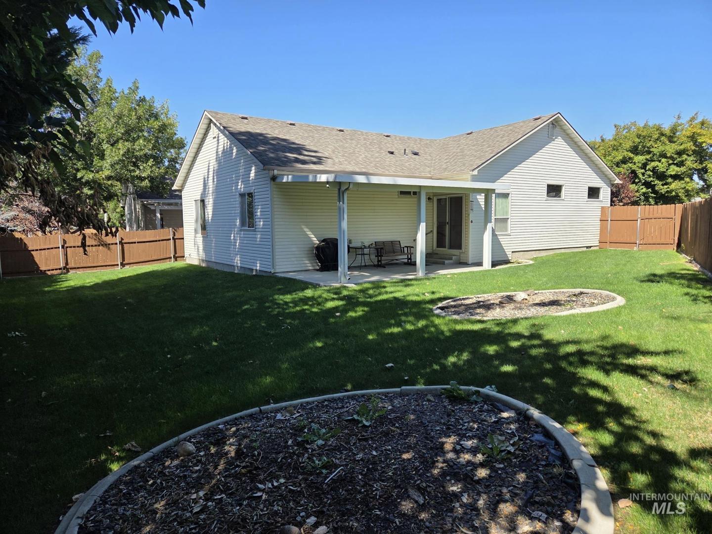 Location. Location. Location. Here`s your chance to own a fantastic 3 bedroom, 2 bathroom house with extra wide hallways, extra wide doors, 9` ceilings, crown moldings, designer cabinets and brand new carpet. The floorplan is very open and there is plenty of natural light throughout. The family room has a gas fireplace insert, the laundry room has a separate sink, and the yard is fully fenced with a full sprinkler system for easy yard maintenance. The backyard covered patio is huge and the attached 2 car garage comes with a keyless entry system (and remote).The crawl space includes a fan with humidistat so you don`t have to worry about mold. All of this in a great location that is close to all the amenities that Meridian offers. This place is move in ready and won`t last long!