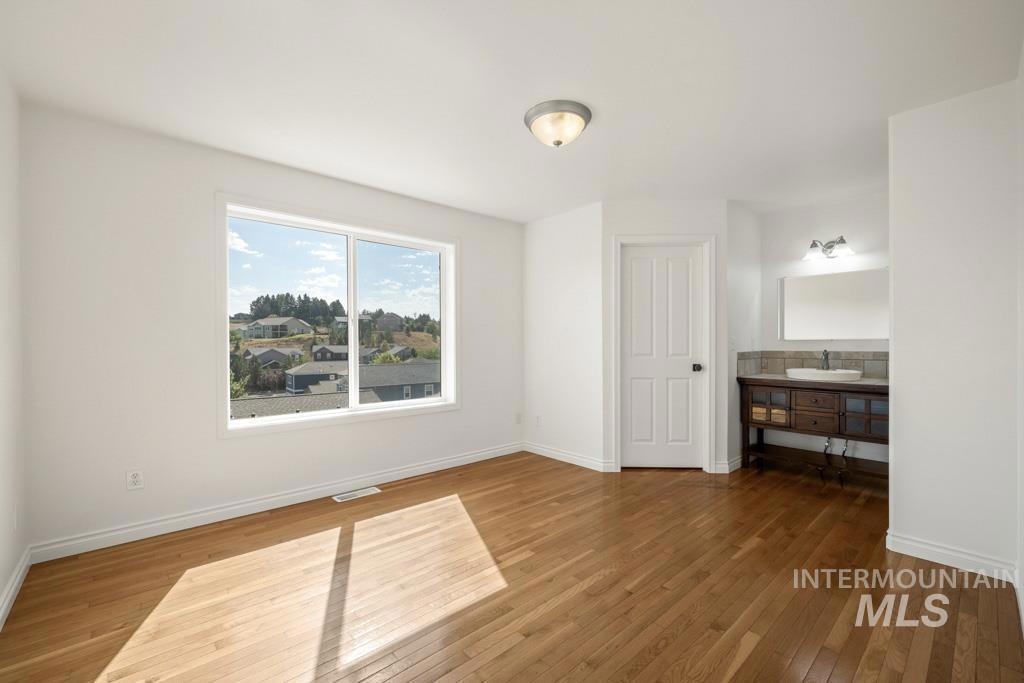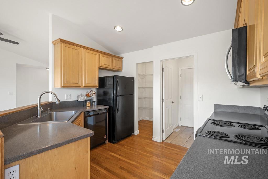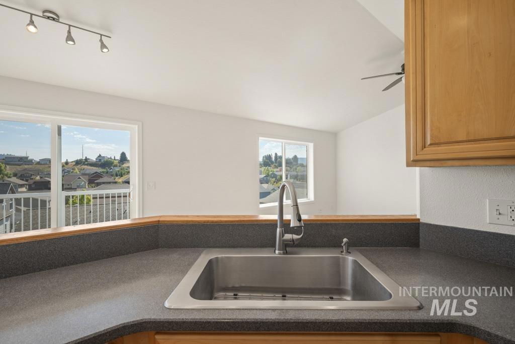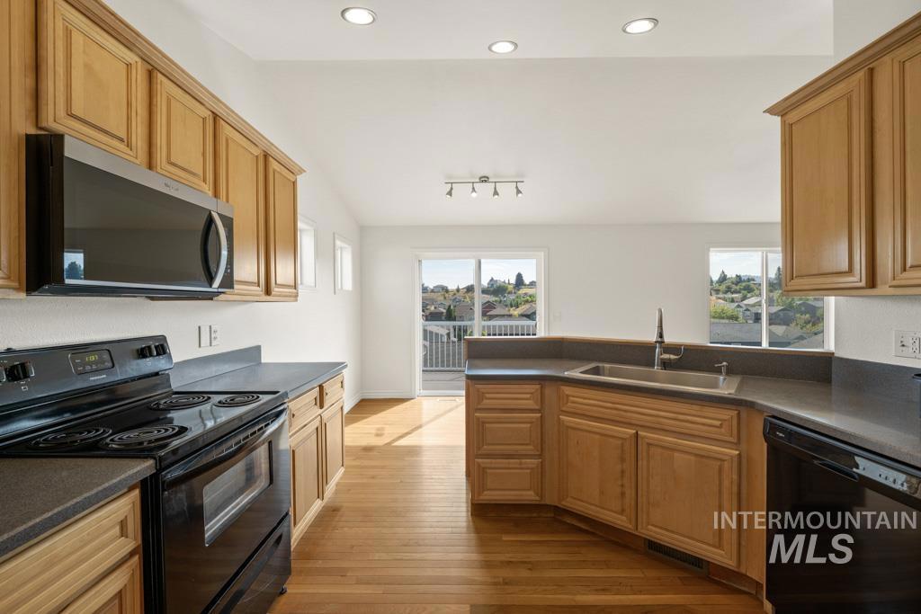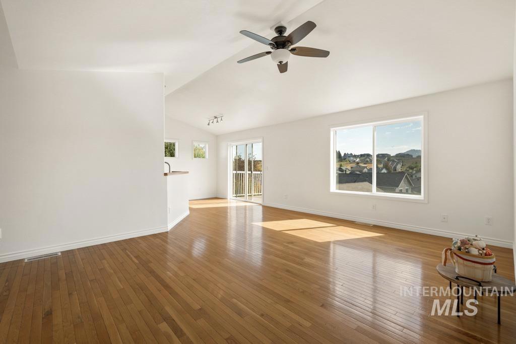 Open the front door to this great home with lots of natural light that features hardwood floors throughout the main level. The kitchen offers corian counters, a corner pantry, an easy access laundry conveniently located off the 2 car garage. Main floor primary suite offers southern views, has a tiled walk in shower and walk in closet. The main floor also offers 2 more bedrooms along with a main bathroom. Down in the walk out basement with tall ceilings you`ll find a large utility/storage room, spacious gathering room, another full bathroom, 2 more bedrooms of which one has it`s own bathroom. The sloped back yard awaits your landscaping dreams and would be great for planters with its southern exposure. Graveled off street parking for extra vehicles, RV or boat. So much opportunity awaits you in this spacious home!