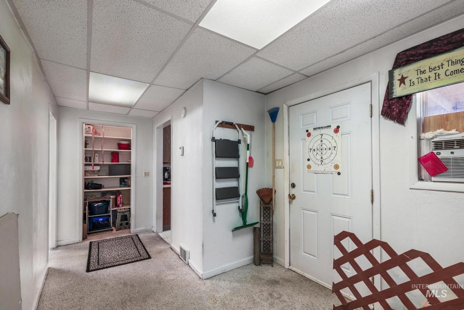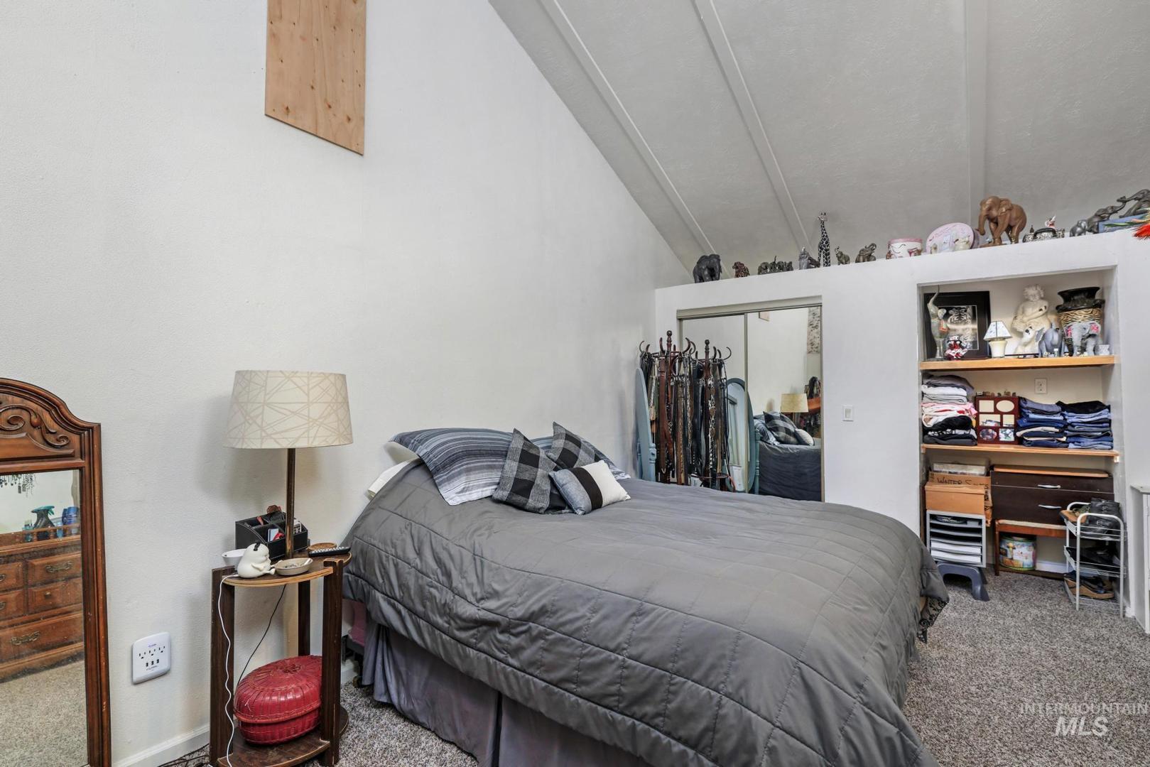 Great opportunity to own your own home! This property offers plenty of space and potential to make it your own. The living room features brand-new carpet and a cozy gas fireplace, creating an inviting entrance. The kitchen provides generous counter space with an easy flow to the rest of the home. The large bathroom offers excellent storage and counter space. The primary bedroom includes vaulted ceilings and double closets, while the upstairs bedroom delivers wonderful privacy. Downstairs you’ll find two good-sized bedrooms, an updated furnace, and the option to add another bathroom with easily accessible plumbing. The backyard is a blank canvas with alley access—perfect for RV or trailer parking. A spacious storage shed with power and a new roof completes the package.