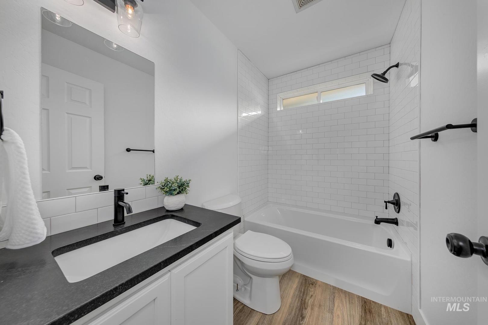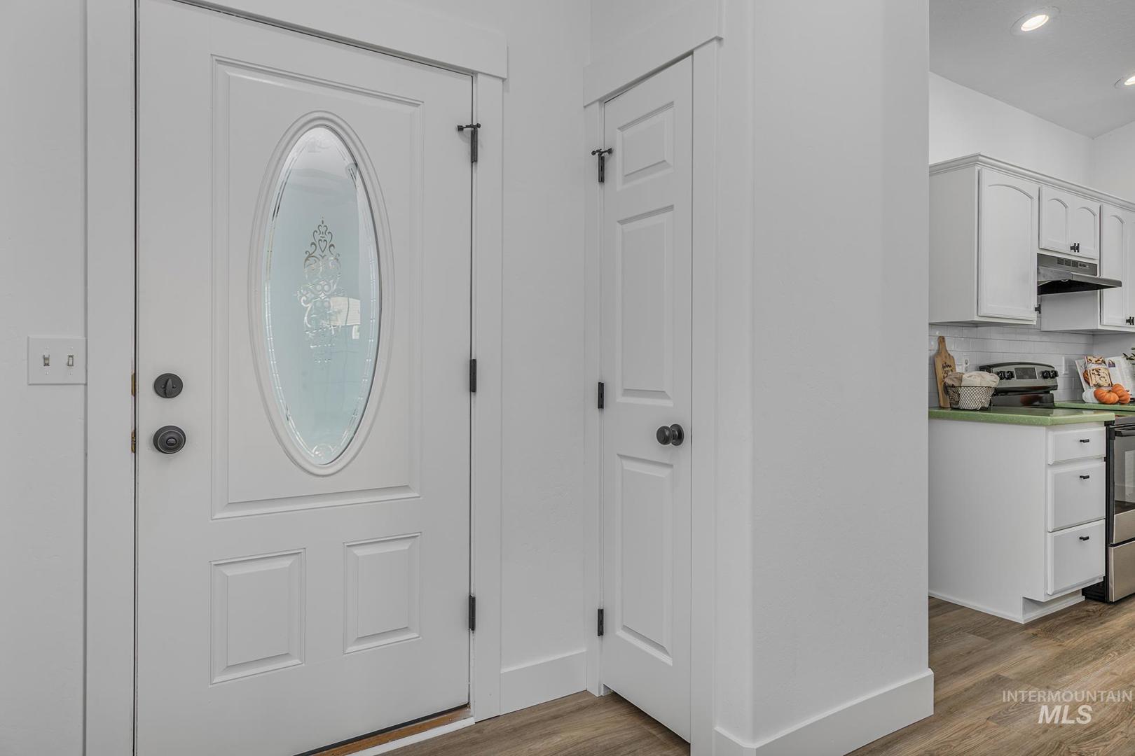 What a find! This home has been beautifully updated inside and out. Tasteful LVP flooring flows throughout this semi open floor plan, new lighting, paint, appliances and both bathrooms have been remodeled. The Primary bedroom boosts a trey ceiling, sconce lighting, walk in closet, dual vanity with granite countertop, and step in tile shower. There are TWO areas with double gates for RV/TRAILER PARKING. Complete with mature shade trees you will love the location. Walk across the street to enjoy the Payette River Greenbelt that meanders alongside the picturesque Payette River. It offers a serene environment filled with lush greenery and the soothing sounds of flowing water where you can see local wildlife & enjoy the benches & picnic tables.