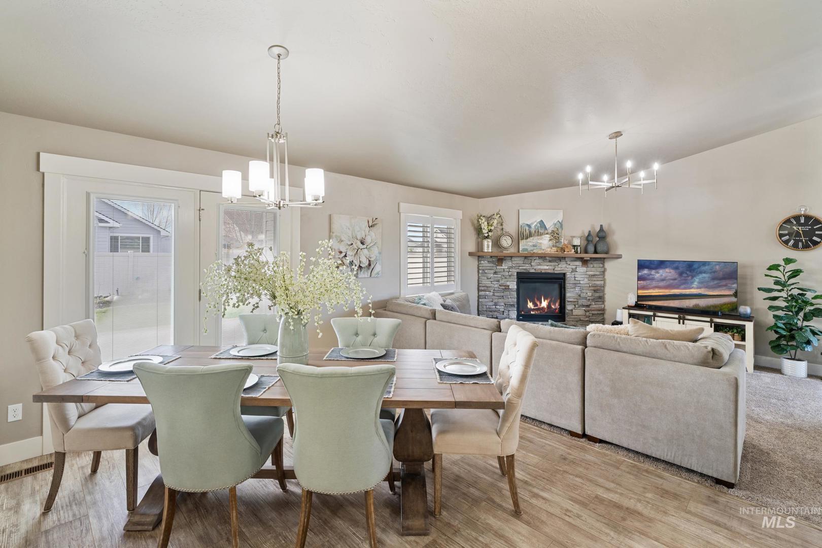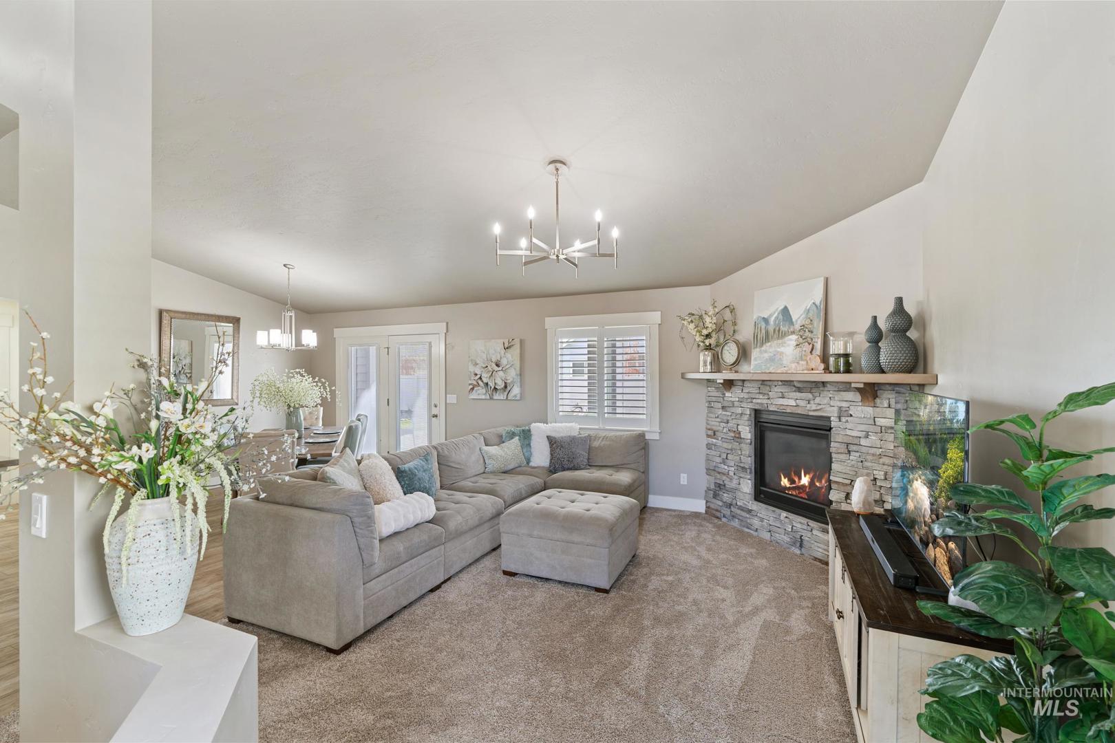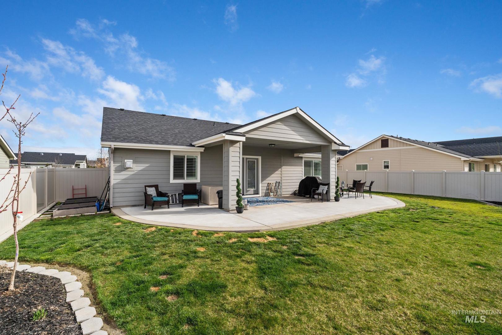 Step inside this beautifully maintained 1,531 sq. ft. home that blends cozy charm with modern comfort. Designed with both style and function in mind, it offers all the right spaces - open, comfortable, and ready for everyday living or entertaining. The inviting living room centers around a fireplace for warm gatherings, while quartz countertops, undermount sinks, and plantation shutters add timeless elegance throughout. The thoughtfully designed kitchen and open layout make hosting a breeze. Central air keeps things cool, and the finished 3-car garage gives you plenty of storage. Enjoy Idaho’s seasons in your own backyard oasis! The oversized covered patio is perfect for outdoor dining or simply relaxing, surrounded by a beautifully landscaped yard that reflects true pride of ownership. This home is move-in ready and waiting for its next story. (BTVAI) And when you step beyond the front door, the neighborhood itself is a gem. Tree-lined streets, walking paths, and serene ponds create a peaceful setting. Lush landscaping frames wide trails and stunning water features - ponds, waterfalls, rocks, and boulders - that give the community a park-like feel. Add in the playground, community parks, and open green spaces, plus a pool with a convenient bathhouse at the entrance, and you’ve got a neighborhood designed for connection and relaxation. All of this, just minutes from schools.