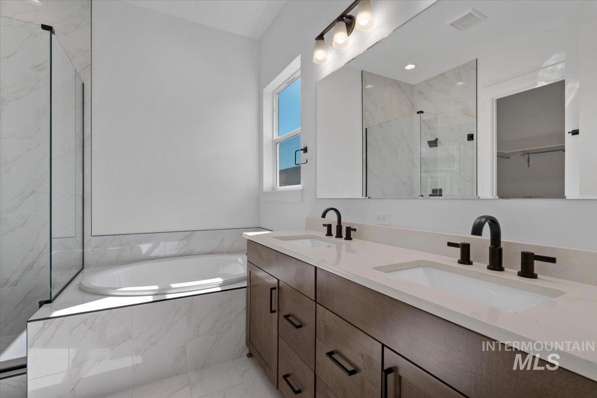 "The Helena" by Richmond American Homes, available now. This home is open daily from 10 AM to 6 PM, and no appointment is needed to visit. You can stop by the Information Center at 2375 N. Mountain Vista Ave., Star, ID 83669 to see our full inventory of completed and upcoming homes. Please feel free to ask about current builder special financing options. These Portfolio collection homes feature luxury finishes such as 10-foot ceilings, 8-foot entry and interior doors, gourmet kitchens with quartz countertops, gas fireplaces, covered patios, upgraded wood soft-close cabinets, and deluxe primary baths. Addi to see our full inventory of completed and upcoming homes. Please feel free to ask about current builder special offers and financing options. These Portfolio collection homes feature luxury finishes such as 10-foot ceilings, 8-foot entry and interior doors, gourmet kitchens with quartz countertops, gas fireplaces, covered patios, upgraded wood soft-close cabinets, and deluxe primary baths. Additionally, all homes come with tankless water heaters, are HERS rated for superior efficiency and low utility bills, and include front and back landscaping, sprinklers, and fencing. Restrictions apply.