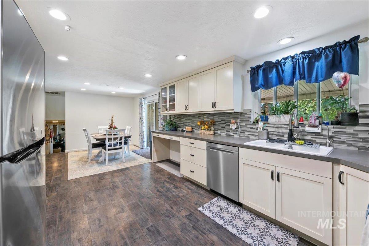 Discover this inviting 4-bedroom, 2-bathroom single-family home in the heart of West Boise. Built in 1968 and thoughtfully updated, this 2,146 sq ft residence blends timeless character with modern comfort. Step into a beautifully renovated kitchen that’s ready for everyday meals or weekend entertaining. The spacious layout offers warm, light-filled living areas perfect for relaxing or gathering with loved ones. Out back, enjoy a mature, private yard with lush landscaping and a covered patio - ideal for morning coffee, evening BBQs, or simply soaking up Idaho’s seasons. The extra-deep garage and additional side parking provide ample space for vehicles, toys, or storage. Best of all - no HOA, giving you the freedom to truly make this home your own. Located near neighborhood parks and a leisurely stroll away from Hyatt Lake Reserve. This home offers the perfect balance of tranquility and convenience. Whether you`re upsizing, downsizing, or planting roots, this West Boise gem is ready to welcome you home.