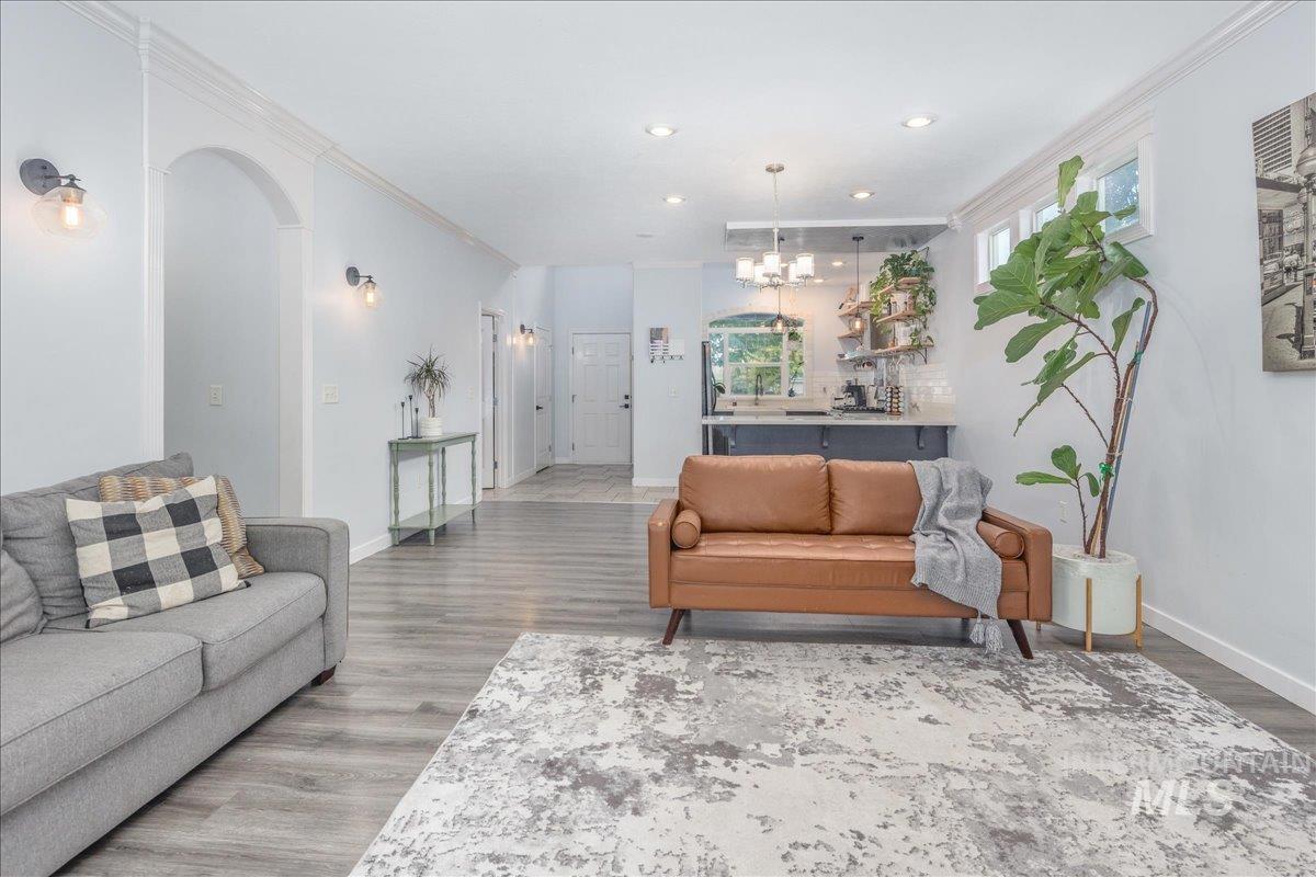 Welcome to your charming single-level patio home nestled in a serene and cozy neighborhood. This newly updated 2 bedroom, 2 bath residence featuring upgrades in the kitchen with quartz, tile, farm style sink and stainless appliances. Both of the bathrooms are recently updated and remodeled as well as paint and flooring throughout home. The open layout creates a warm and inviting atmosphere, perfect for both relaxing and entertaining. A convenient laundry room sink and a garage that is fully painted with epoxy floors complete this home. Recent upgrades include new furnace, AC, water heater. Enjoy the convenience of a great location, where local amenities and attractions are just moments away. This is a wonderful opportunity to experience comfortable, easy living just minutes from grocery, shopping and I-84 access. HOA fees include mowing, edging, trimming shrubs, sprinkler maintenance, and snow removal. It`s move-in ready! Come and see this