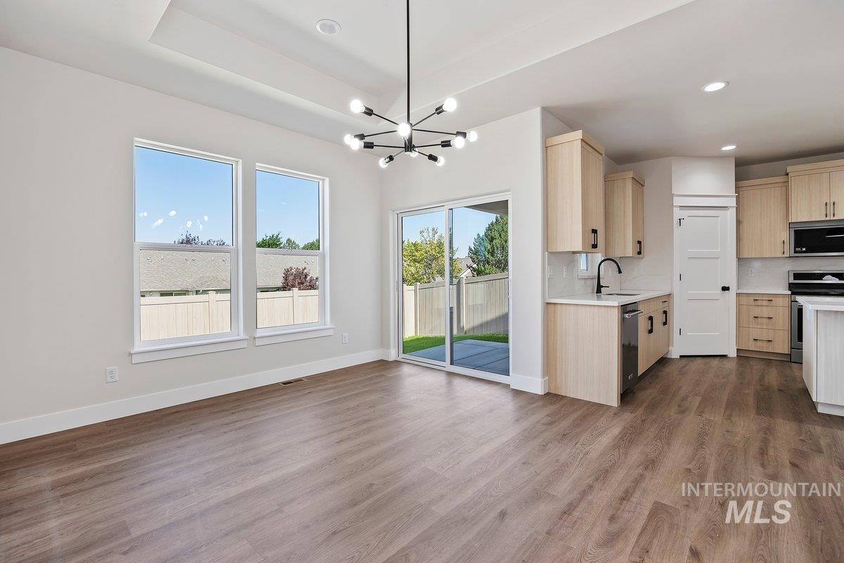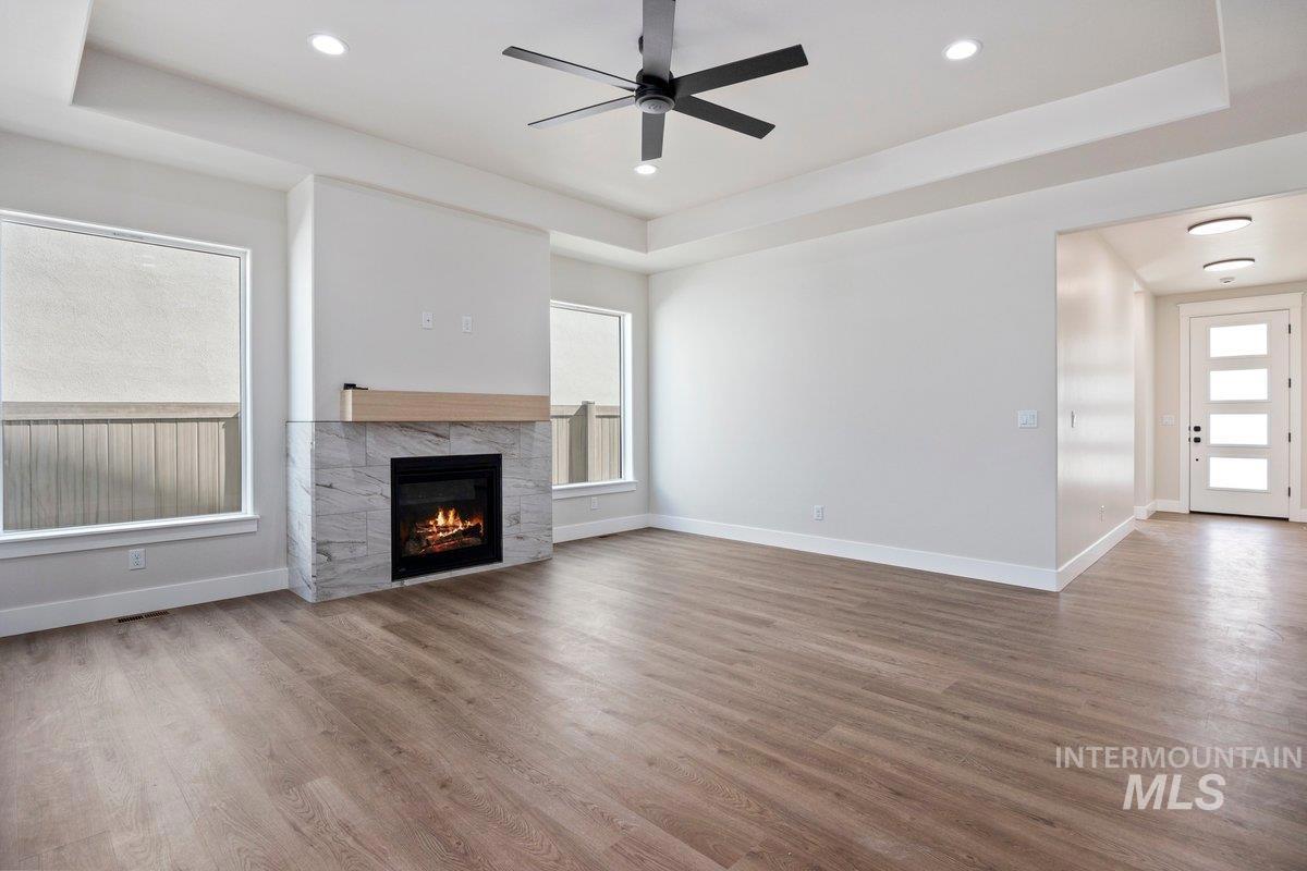 Welcome to your dream home, perfectly situated in a prime central location near the breathtaking Snake River Canyon! This exquisite 3-bedroom, 2.5-bathroom residence combines contemporary elegance with unparalleled convenience, just moments from shopping, dining, and all the amenities you need. Step inside to discover a bright and airy open-concept interior, highlighted by soaring tray ceilings that add a touch of sophistication to every space. The heart of the home is the kitchen, featuring sleek modern cabinetry, an expansive quartz island perfect for entertaining, and a spacious pantry for all your storage needs. Flowing seamlessly into the living area, you’ll find a cozy gas fireplace and luxurious LVP flooring that exudes style and durability. Retreat to the oversized master suite, where the spa-inspired bathroom awaits with dual vanities, a lavish walk-in shower, and ample space to unwind. The additional two bedrooms, adorned with plush patterned carpet, offer comfort and versatility for family, guests.