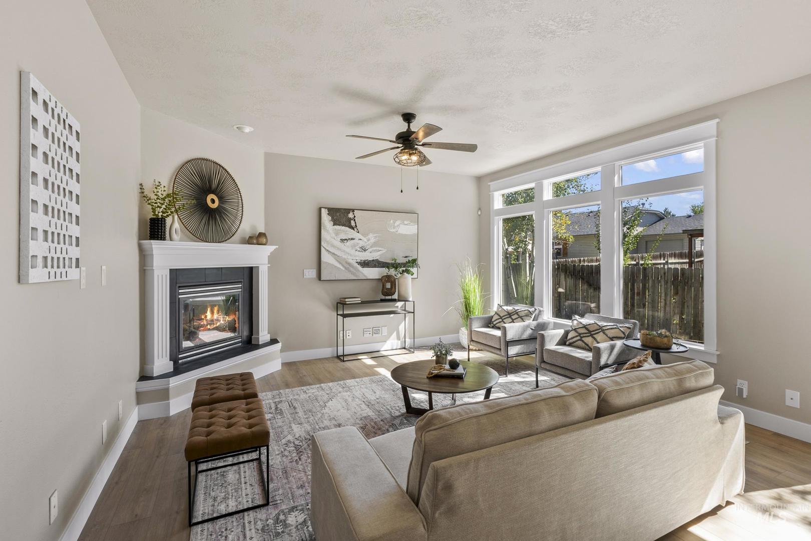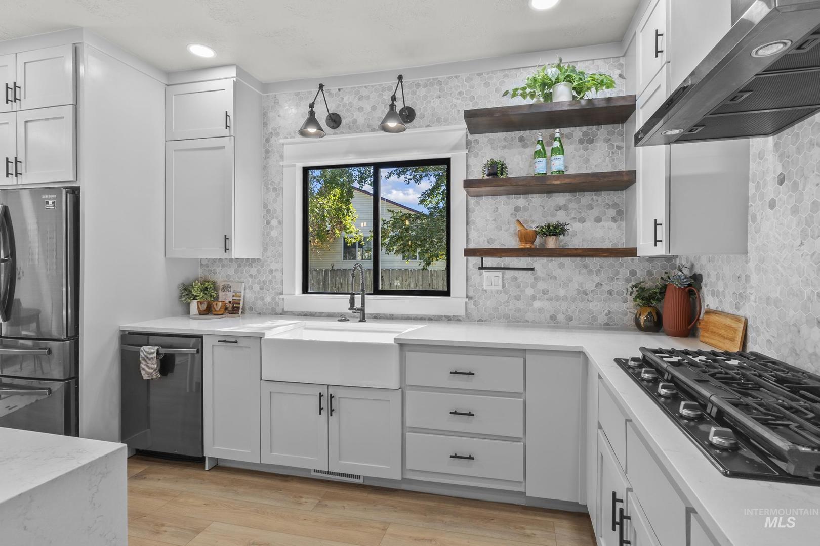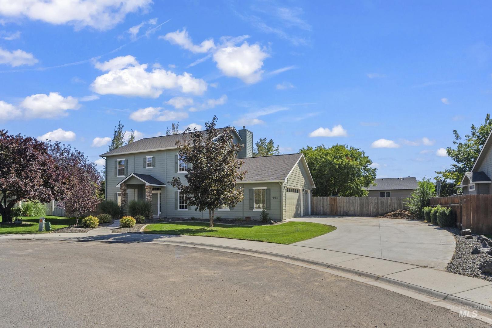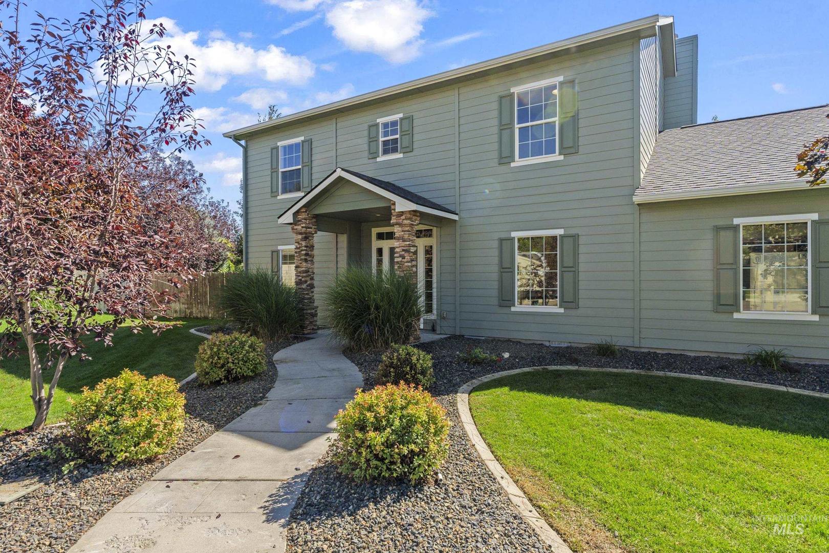 This newly remodeled home with 3 car garage is packed with upgrades from top to bottom. Sitting on a quiet cul-de-sac, it offers peace of mind with paid-off SOLAR panels, fresh new interior and exterior paint, and all new flooring throughout the home. LVP floors flow throughout the first floor. The thoughtfully designed layout is open for easy flow and connection with a corner gas fireplace and expansive great room. The showpiece of the home is the parade home-quality kitchen, thoughtfully curated with a farm sink, prep sink, full tile backsplash, designer lighting, striking quartz waterfall island with built-in USB charging ports, pot filler, gas range with hood, and accented wood floating shelves; complete with a stainless steel appliance package including wine fridge and microwave drawer. Upstairs, you’ll find 3 of the spacious bedrooms, complemented with updated bathrooms with new vanities, flooring and tile work. The secluded, fully fenced backyard with brand new sod is a little world of its own; perfect for play, peace, and planting. With style, energy efficiency {from the paid off solar panels} and thoughtful upgrades throughout, this home is designed to move right in. This home is anything but cookie cutter! Located in a quiet, established neighborhood, this home offers quick access to all the amenities of Kuna and Meridian. Put down roots and start your story here!