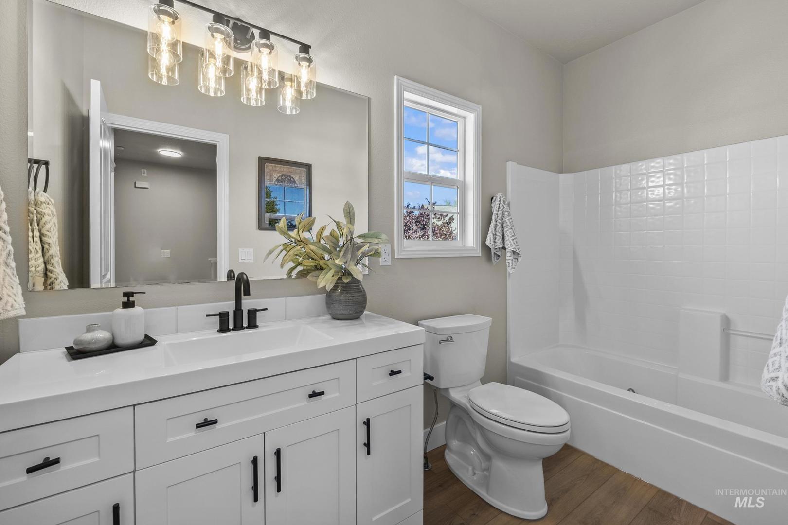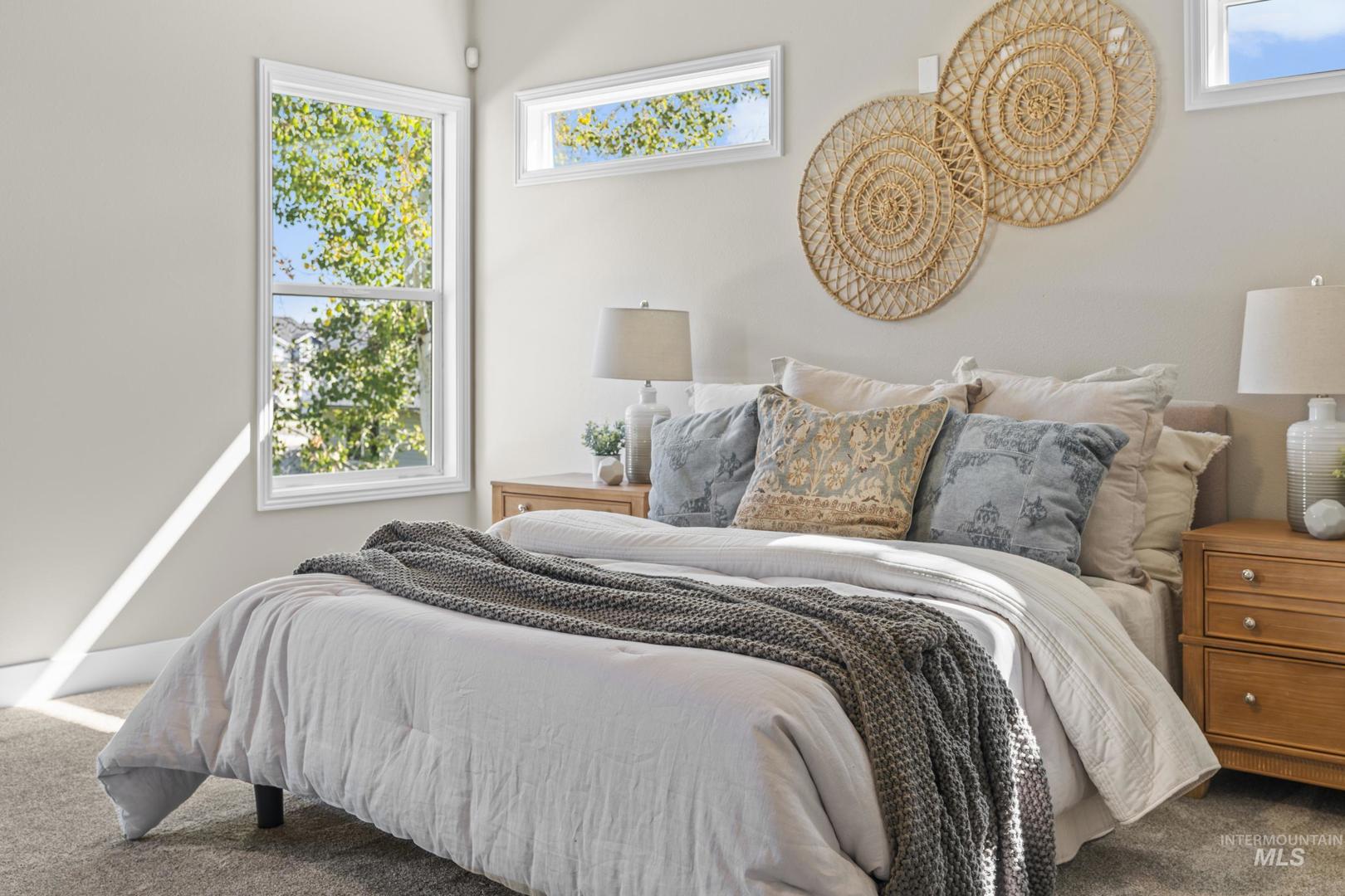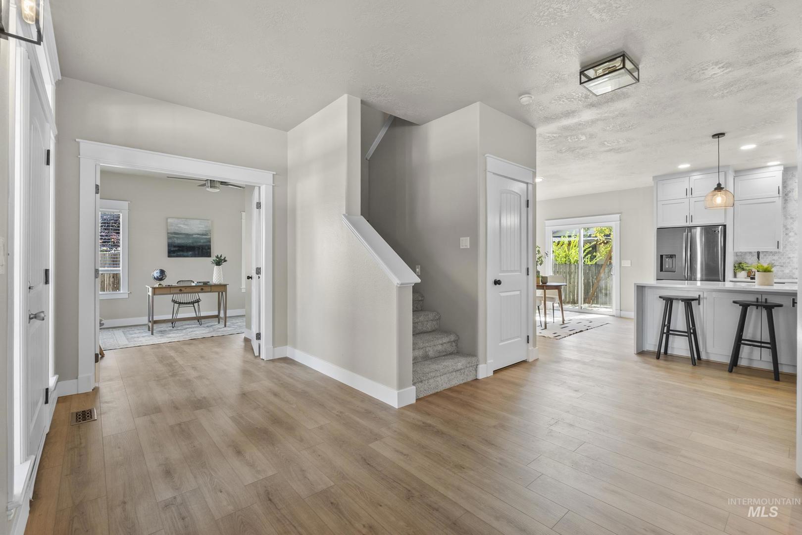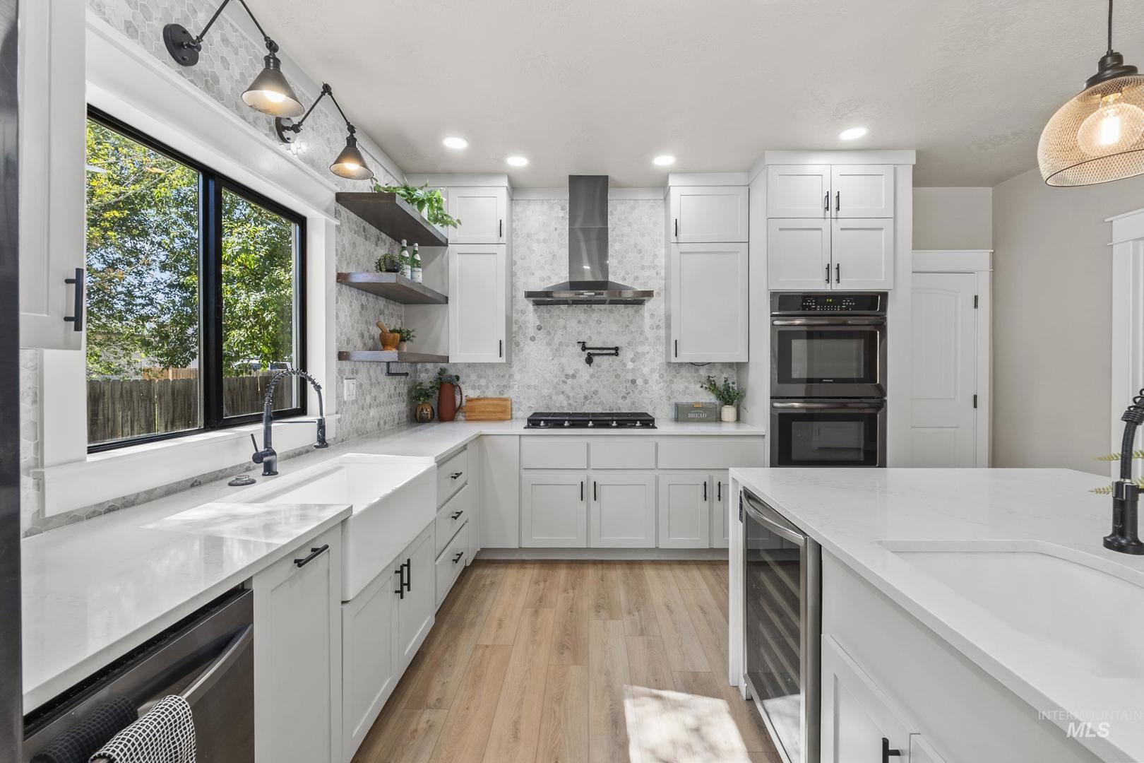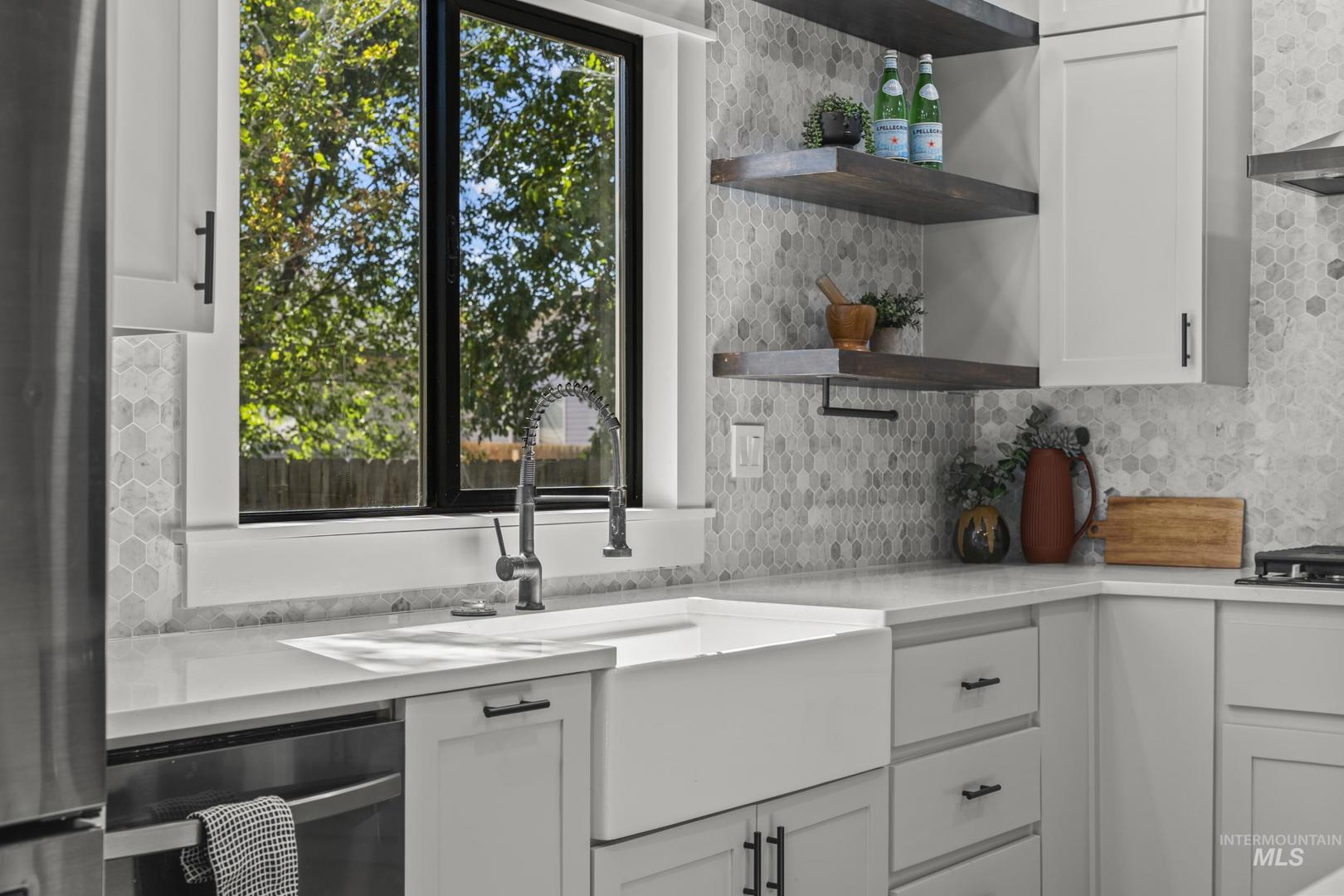 This newly remodeled home with 3 car garage is packed with upgrades from top to bottom. Sitting on a quiet cul-de-sac, it offers peace of mind with paid-off SOLAR panels, fresh new interior and exterior paint, and all new flooring throughout the home. LVP floors flow throughout the first floor. The thoughtfully designed layout is open for easy flow and connection with a corner gas fireplace and expansive great room. The showpiece of the home is the parade home-quality kitchen, thoughtfully curated with a farm sink, prep sink, full tile backsplash, designer lighting, striking quartz waterfall island with built-in USB charging ports, pot filler, gas range with hood, and accented wood floating shelves; complete with a stainless steel appliance package including wine fridge and microwave drawer. Upstairs, you’ll find 3 of the spacious bedrooms, complemented with updated bathrooms with new vanities, flooring and tile work. The secluded, fully fenced backyard with brand new sod is a little world of its own; perfect for play, peace, and planting. With style, energy efficiency {from the paid off solar panels} and thoughtful upgrades throughout, this home is designed to move right in. This home is anything but cookie cutter! Located in a quiet, established neighborhood, this home offers quick access to all the amenities of Kuna and Meridian. Put down roots and start your story here!
