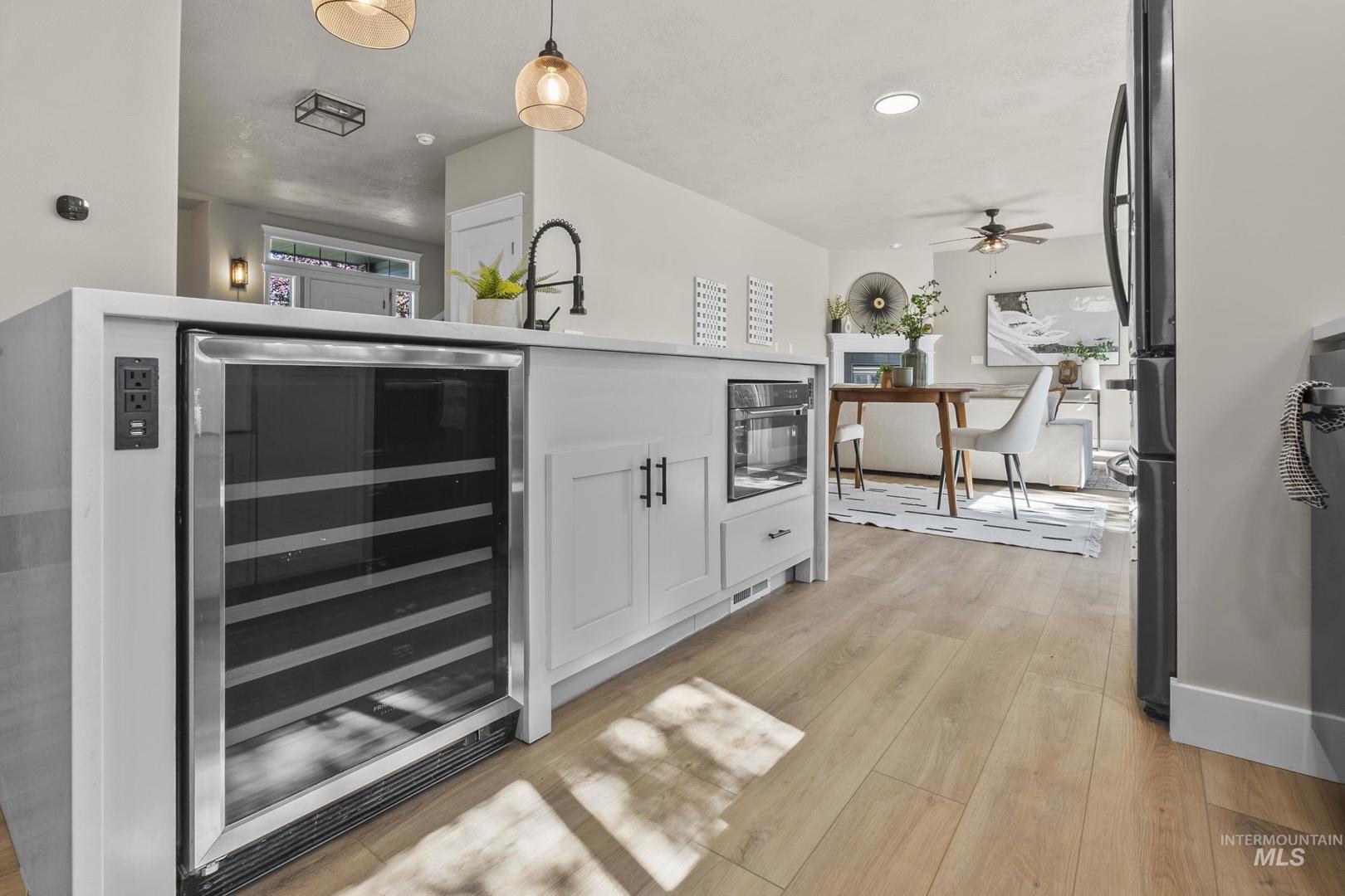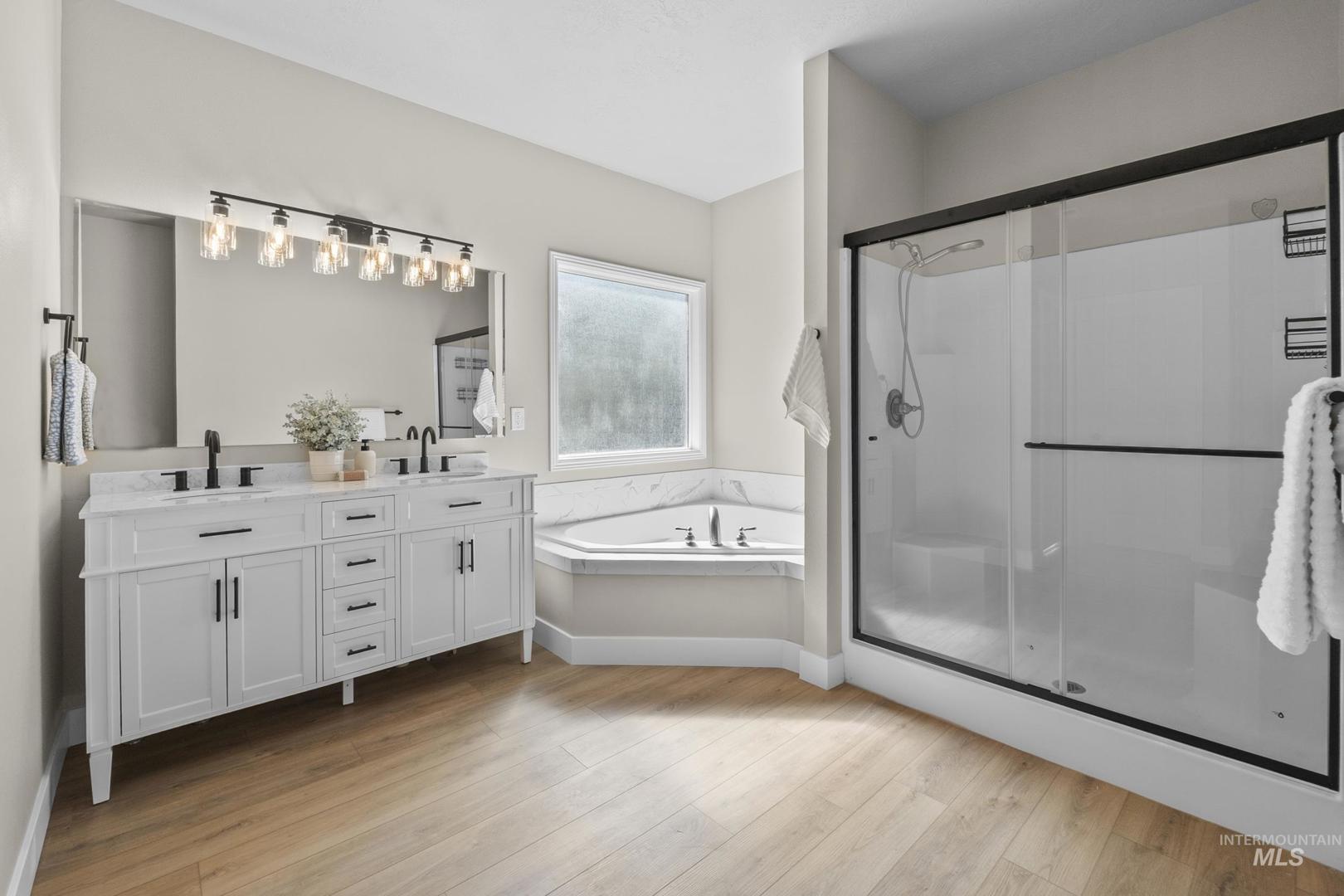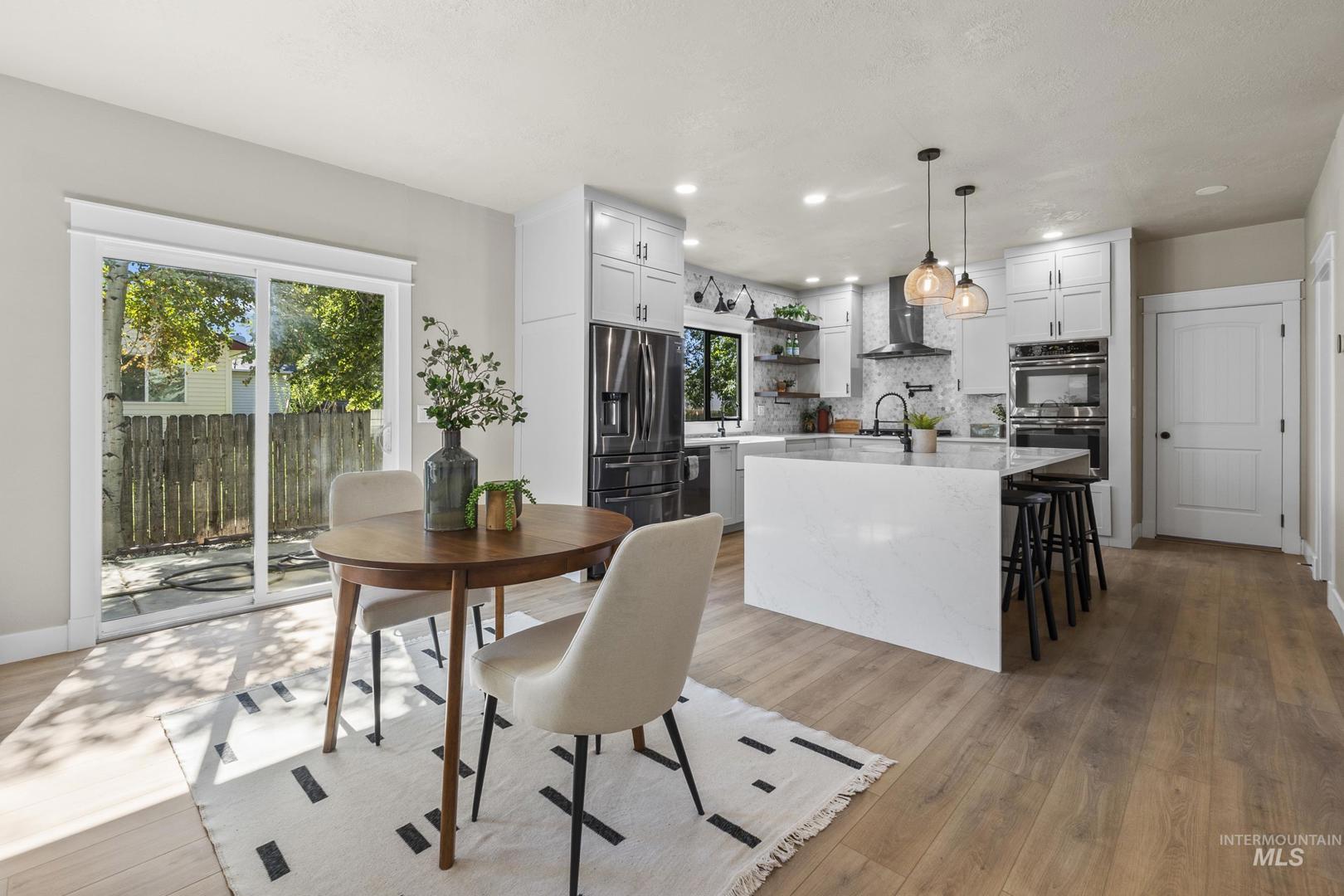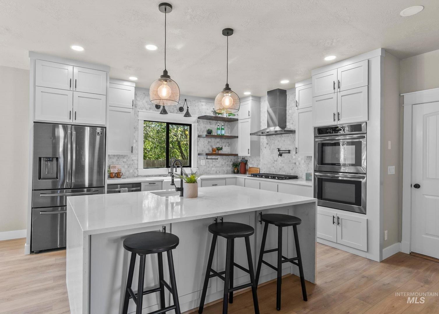 This newly remodeled home with 3 car garage is packed with upgrades from top to bottom. Sitting on a quiet cul-de-sac, it offers peace of mind with paid-off SOLAR panels, fresh new interior and exterior paint, and all new flooring throughout the home. LVP floors flow throughout the first floor. The thoughtfully designed layout is open for easy flow and connection with a corner gas fireplace and expansive great room. The showpiece of the home is the parade home-quality kitchen, thoughtfully curated with a farm sink, prep sink, full tile backsplash, designer lighting, striking quartz waterfall island with built-in USB charging ports, pot filler, gas range with hood, and accented wood floating shelves; complete with a stainless steel appliance package including wine fridge and microwave drawer. Upstairs, you’ll find 3 of the spacious bedrooms, complemented with updated bathrooms with new vanities, flooring and tile work. The secluded, fully fenced backyard with brand new sod is a little world of its own; perfect for play, peace, and planting. With style, energy efficiency {from the paid off solar panels} and thoughtful upgrades throughout, this home is designed to move right in. This home is anything but cookie cutter! Located in a quiet, established neighborhood, this home offers quick access to all the amenities of Kuna and Meridian. Put down roots and start your story here!
