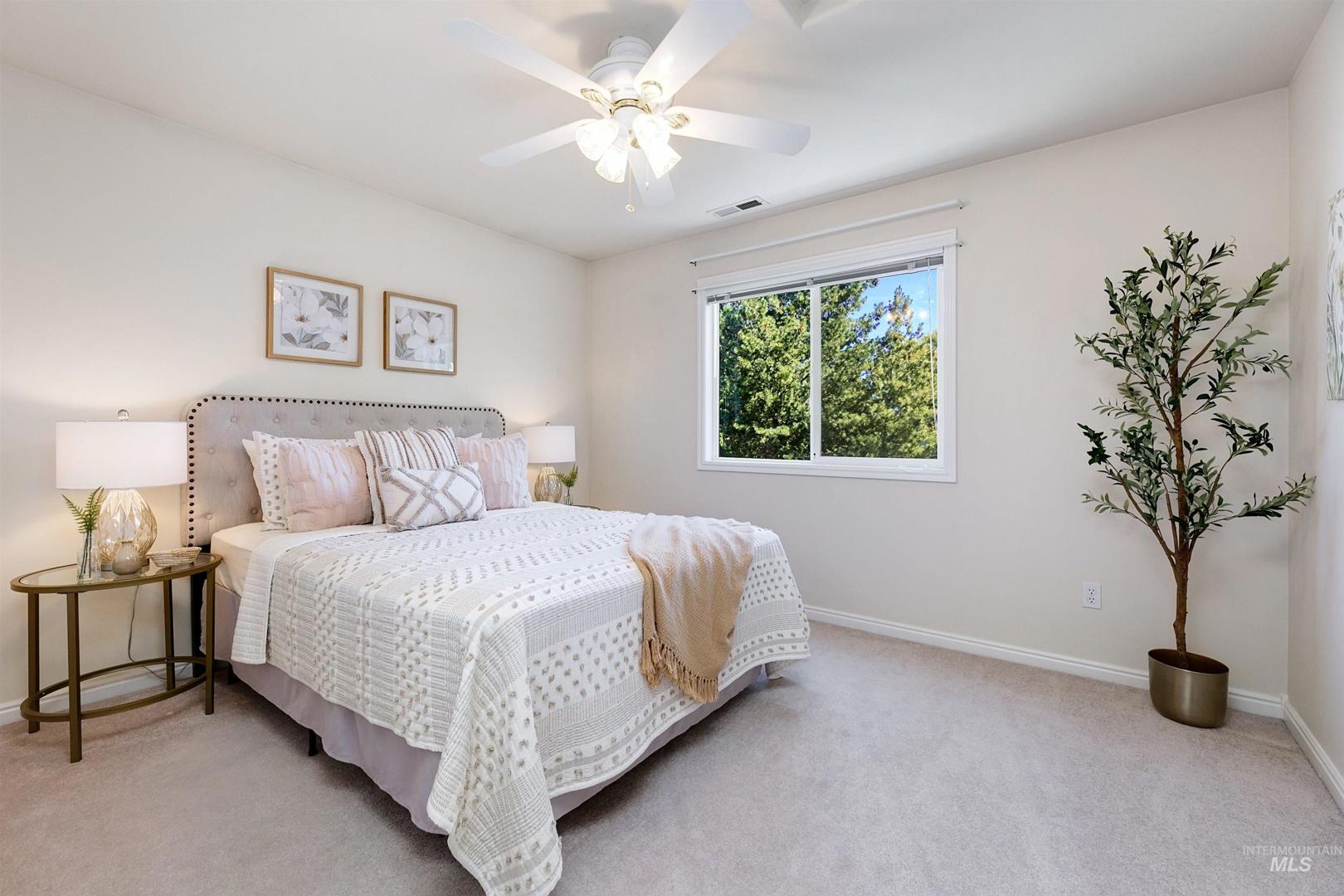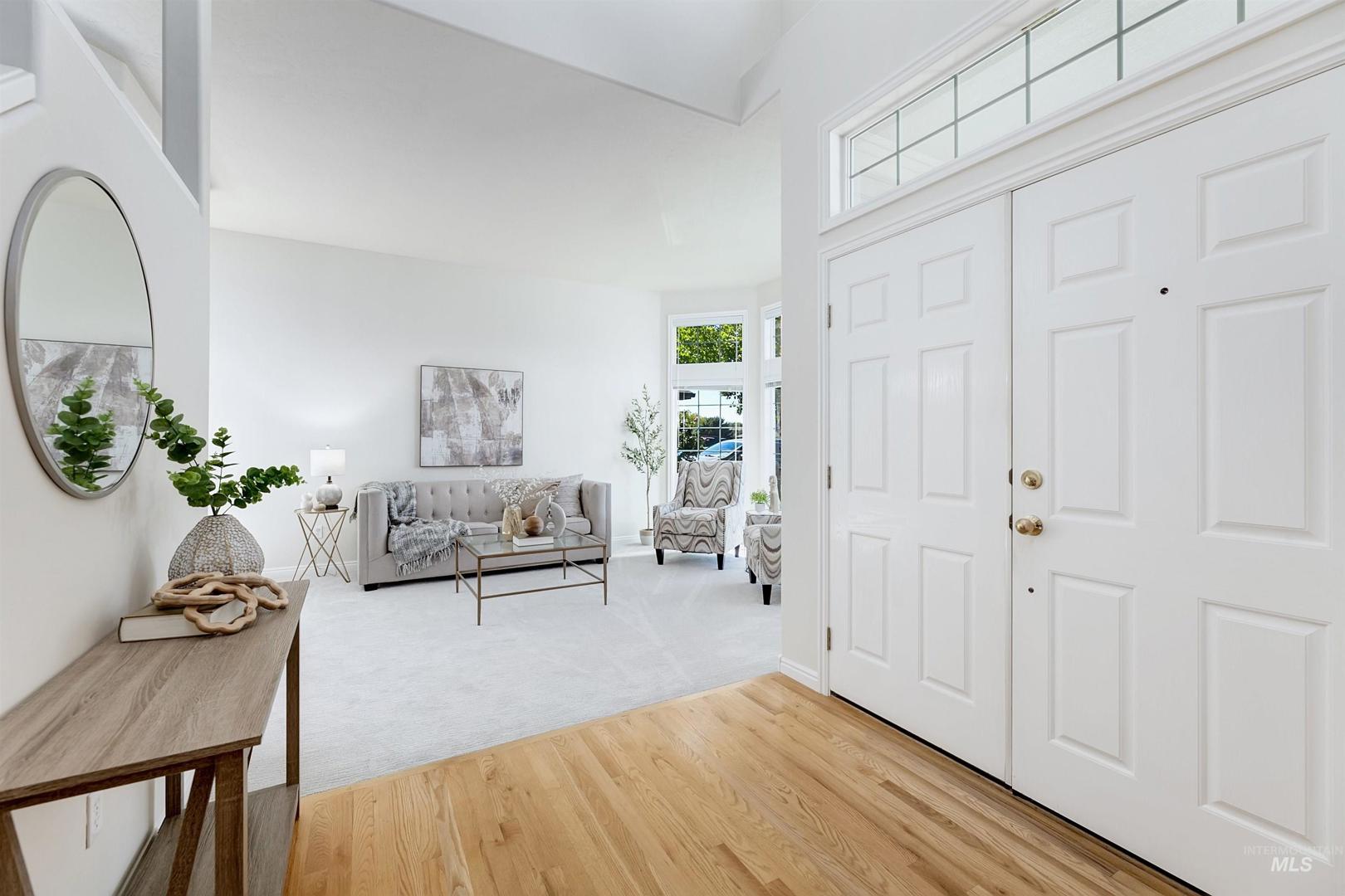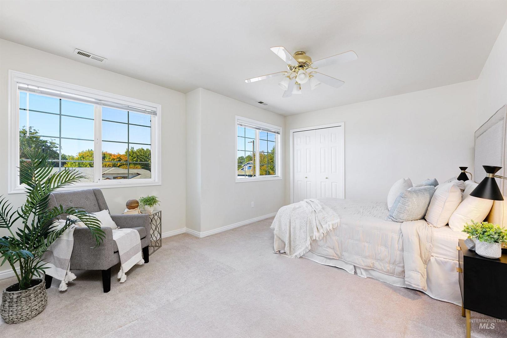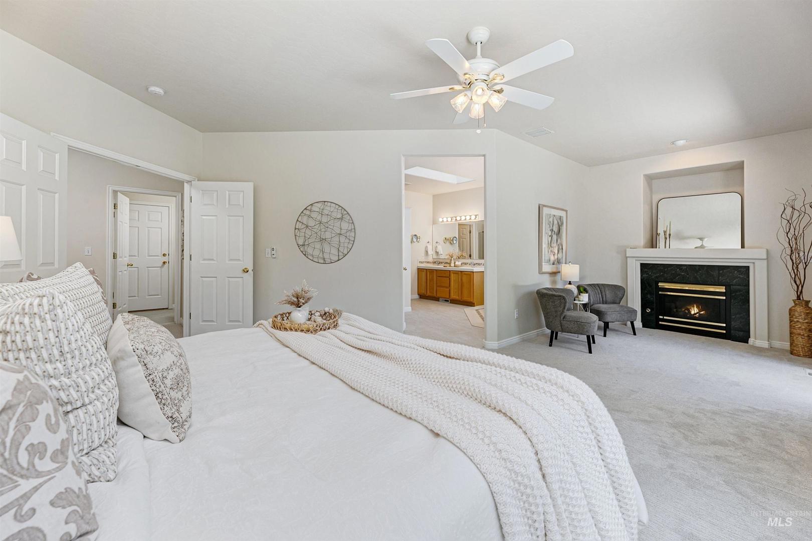 Rare combination of main level primary suite, RV parking, large lot and Boise location. This custom built home was thoughtfully designed for livability with multiple living spaces, two gas fireplaces, and tons of windows that flood the living spaces with light. Enjoy key updates like new flooring, lighting, upgraded plumbing (zero polybutylene!) and roof replaced in 2021.The main-level primary suite is extra special with a dedicated seating area with a gas fireplace plus doors to the patio and yard. Upstairs features four large, true bedrooms giving this home tremendous flexibility. Main level laundry room includes storage and extra counter space. The spacious garage enjoys a west-facing driveway, ideal for snowmelt, and the double gates open to a spacious paved area next to the home for RV parking. The east-facing back yard features mature landscaping and is oriented perfectly for sunny mornings and shady evenings. Wonderful location near schools and shopping with easy freeway access. Irreplaceable setting--incredible lot and neighborhood!