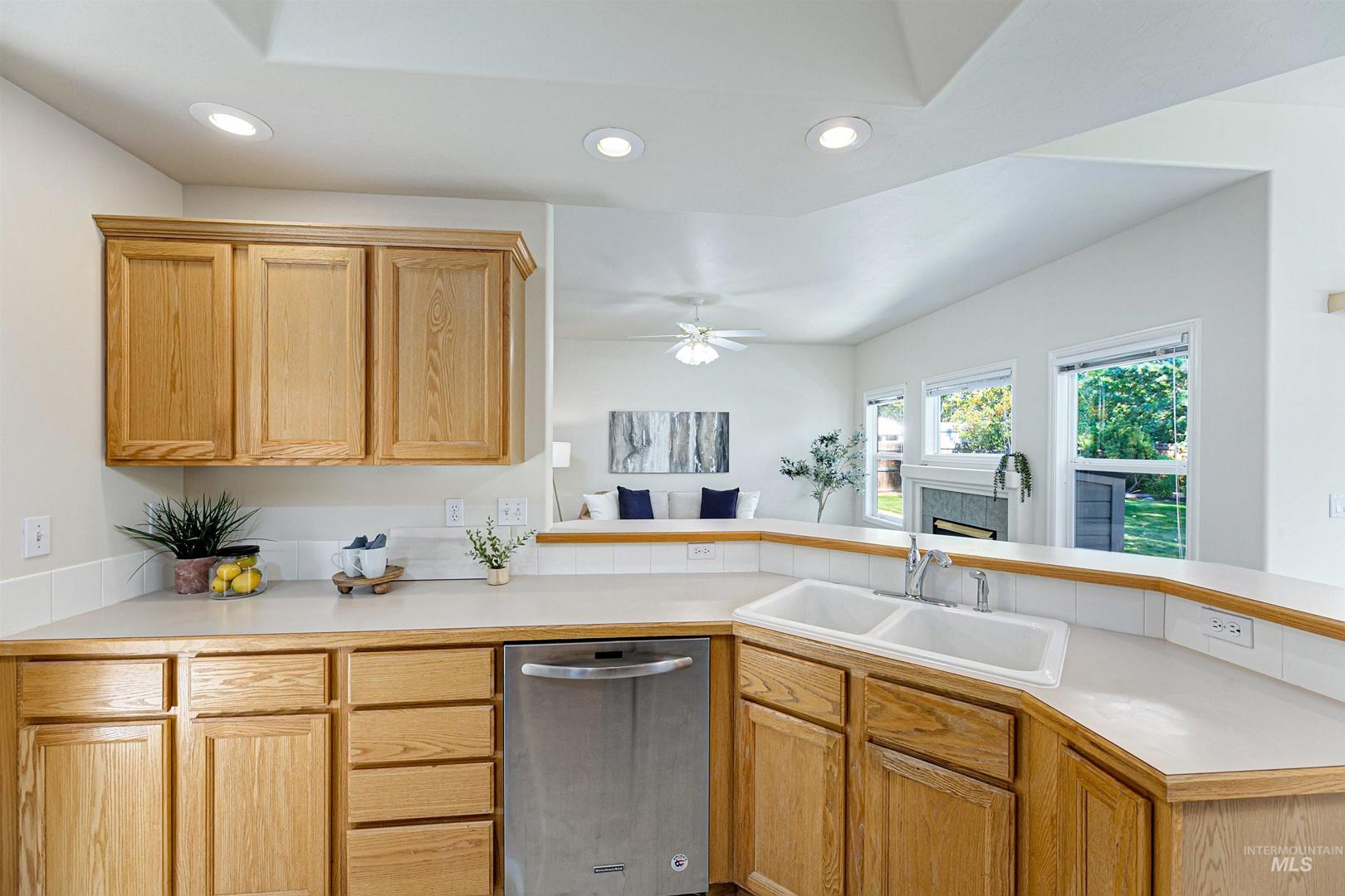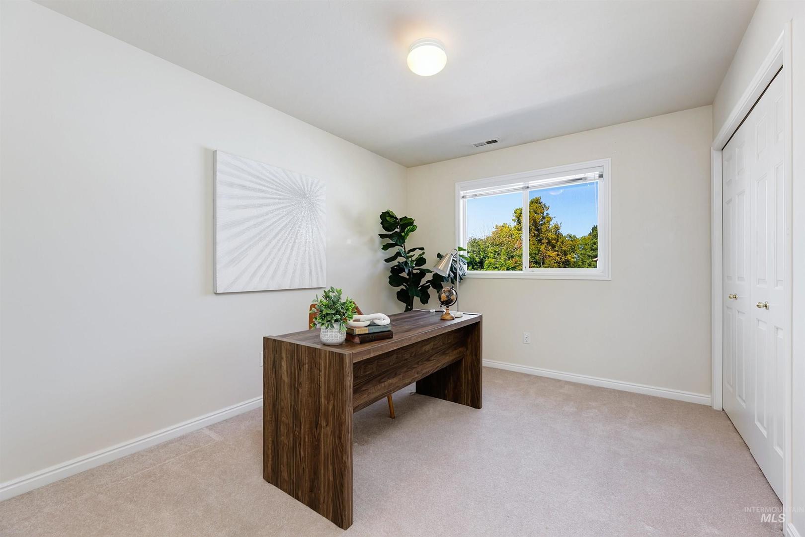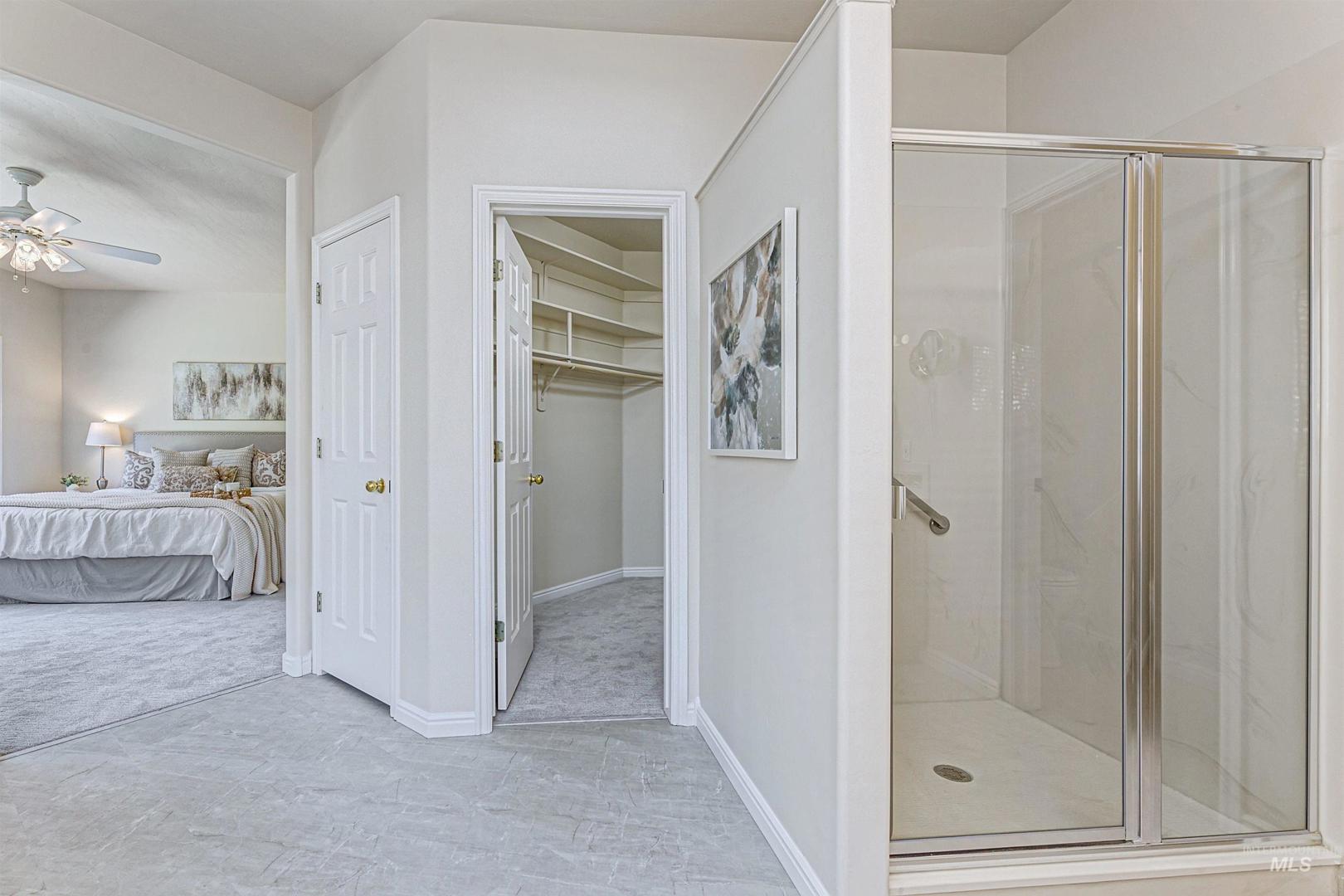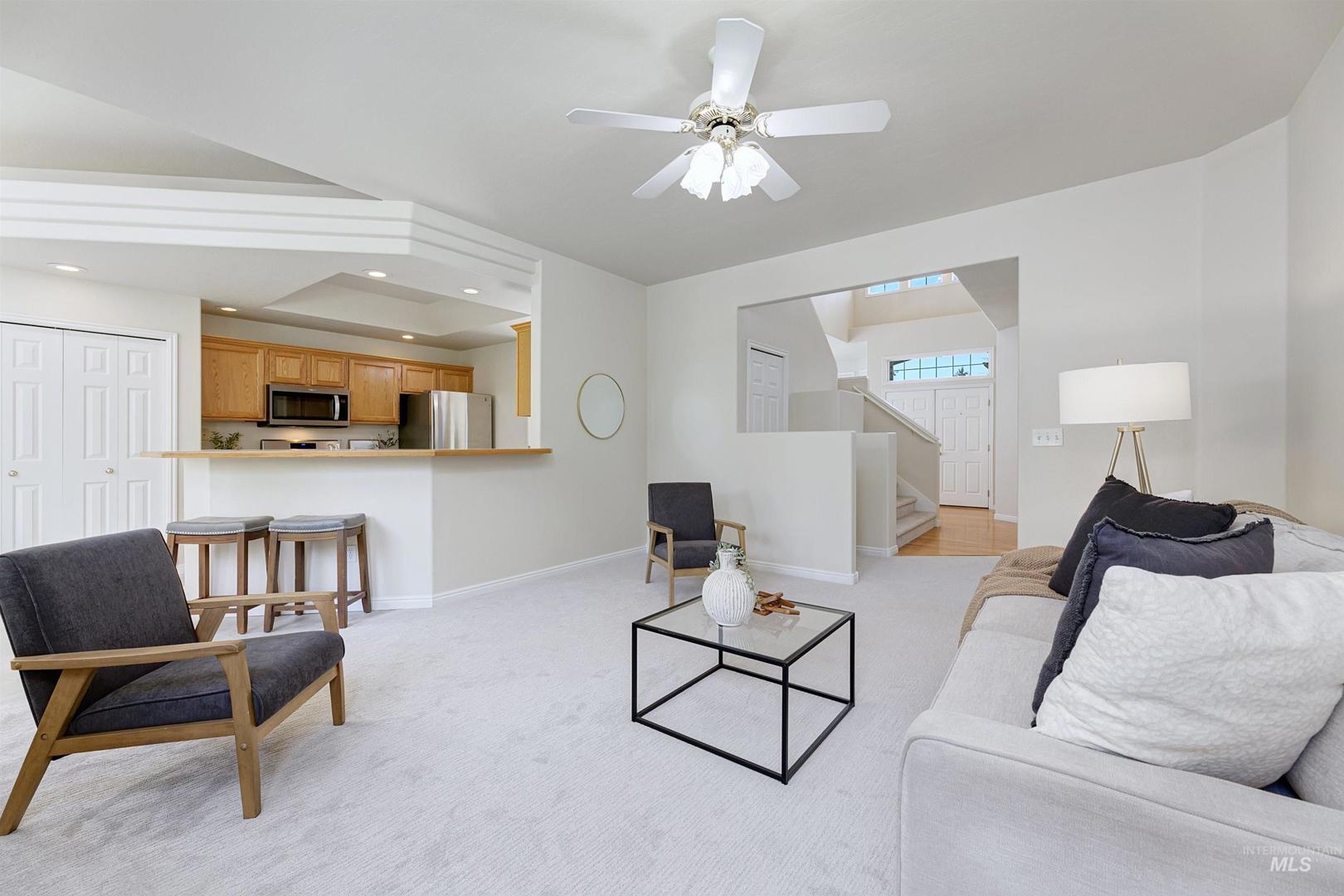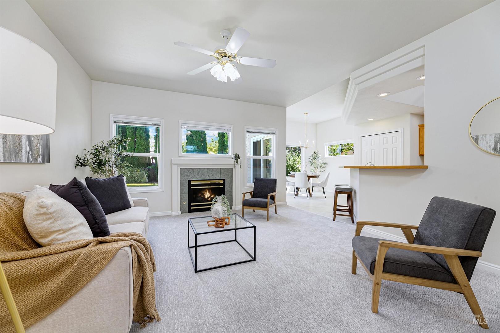 Rare combination of main level primary suite, RV parking, large lot and Boise location. This custom built home was thoughtfully designed for livability with multiple living spaces, two gas fireplaces, and tons of windows that flood the living spaces with light. Enjoy key updates like new flooring, lighting, upgraded plumbing (zero polybutylene!) and roof replaced in 2021.The main-level primary suite is extra special with a dedicated seating area with a gas fireplace plus doors to the patio and yard. Upstairs features four large, true bedrooms giving this home tremendous flexibility. Main level laundry room includes storage and extra counter space. The spacious garage enjoys a west-facing driveway, ideal for snowmelt, and the double gates open to a spacious paved area next to the home for RV parking. The east-facing back yard features mature landscaping and is oriented perfectly for sunny mornings and shady evenings. Wonderful location near schools and shopping with easy freeway access. Irreplaceable setting--incredible lot and neighborhood!