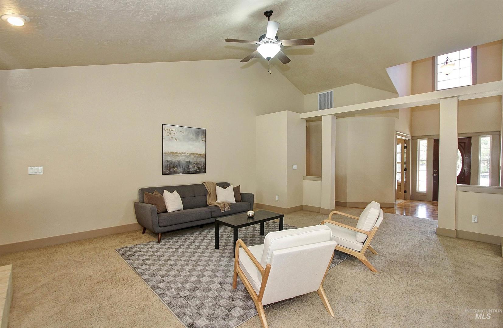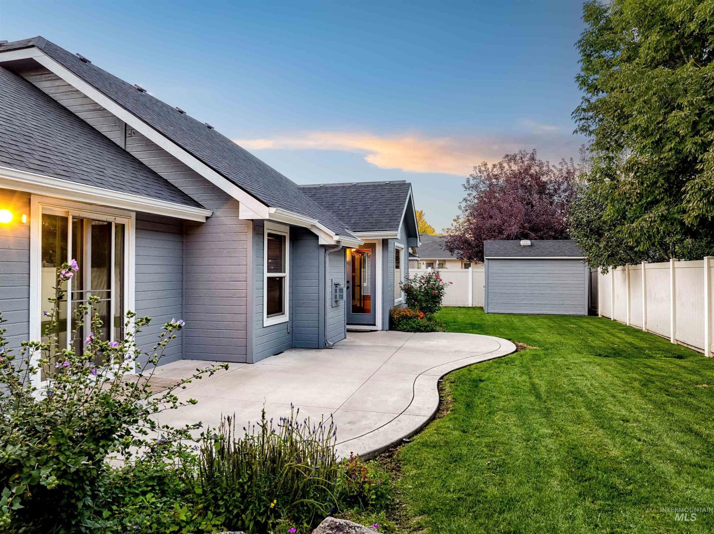 Welcome to a home that feels as inviting as it is functional. Perfectly placed on a corner lot across from the community pool, this residence opens to a great room with soaring vaulted ceilings that create a sense of space and light. The large, open kitchen flows seamlessly into the living area, making it the heart of the home—perfect for everyday living and gatherings alike. Mornings begin with coffee on the east-facing patio as the sun rises over the beautifully landscaped backyard. Afternoons are spent unwinding in the shade, hosting barbecues, or enjoying the simple ease of single-level living. The spacious bonus room, with its own bathroom, offers even more possibilities. Whether it becomes a game room, a guest retreat, or a private getaway for family members, this versatile space elevates both comfort and convenience. Just minutes from shopping and dining, close to schools, and with quick access to Micron and the Boise Airport, everything you need is within reach. Whether it’s a quick commute, weekend adventures, or evenings spent connecting with neighbors, this location makes it easy to balance work, play, and relaxation. Freshly painted with newer roof, thoughtfully maintained, & nestled in a friendly community, this home offers the perfect backdrop for everyday life.