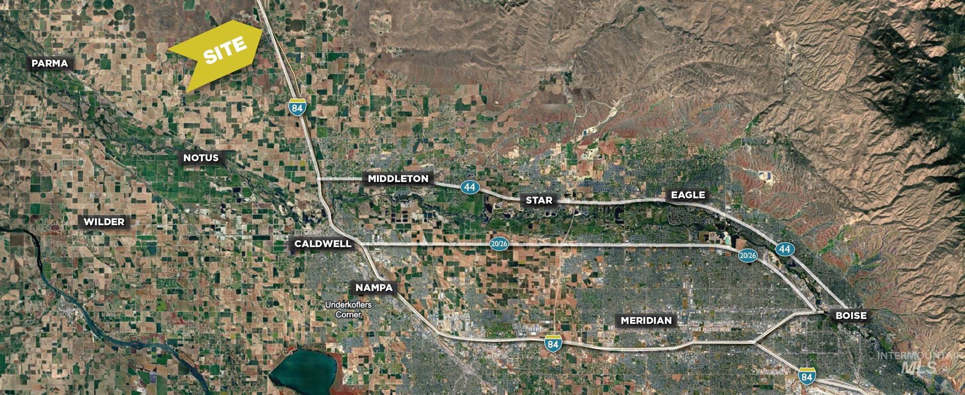 Live Public Auction!! Published Reserve of $1,199,000!! Auction is 10/31/25 at 12pm, held on site. 13.02 Prime Acres in Payette County with over 2,000 feet of interstate frontage!!! Rare opportunity for incredible exposure and accessibility near the Treasure Valley! Pylon signage possible for incredible marketing and name recognition!! Located at a freeway interchange with incredible ease of access. Turnkey opportunity for a trucking company Truck inventory and equipment auctioned same day. ±10 acres usable, with ±7 acres fully fenced with compacted gravel. Approved, shovel-ready plans for 12,000+ SF shop building. 187 ft deep well installed on site already, with approved Development Agreement for Commercial zoning in Payette County! Don’t miss this incredible opportunity!!! Property will sell for any bid meeting or exceeding the reserve on auction day! All pre-auction offers are encouraged and will be presented!! TRUCK OR TREAT!! BTVAI