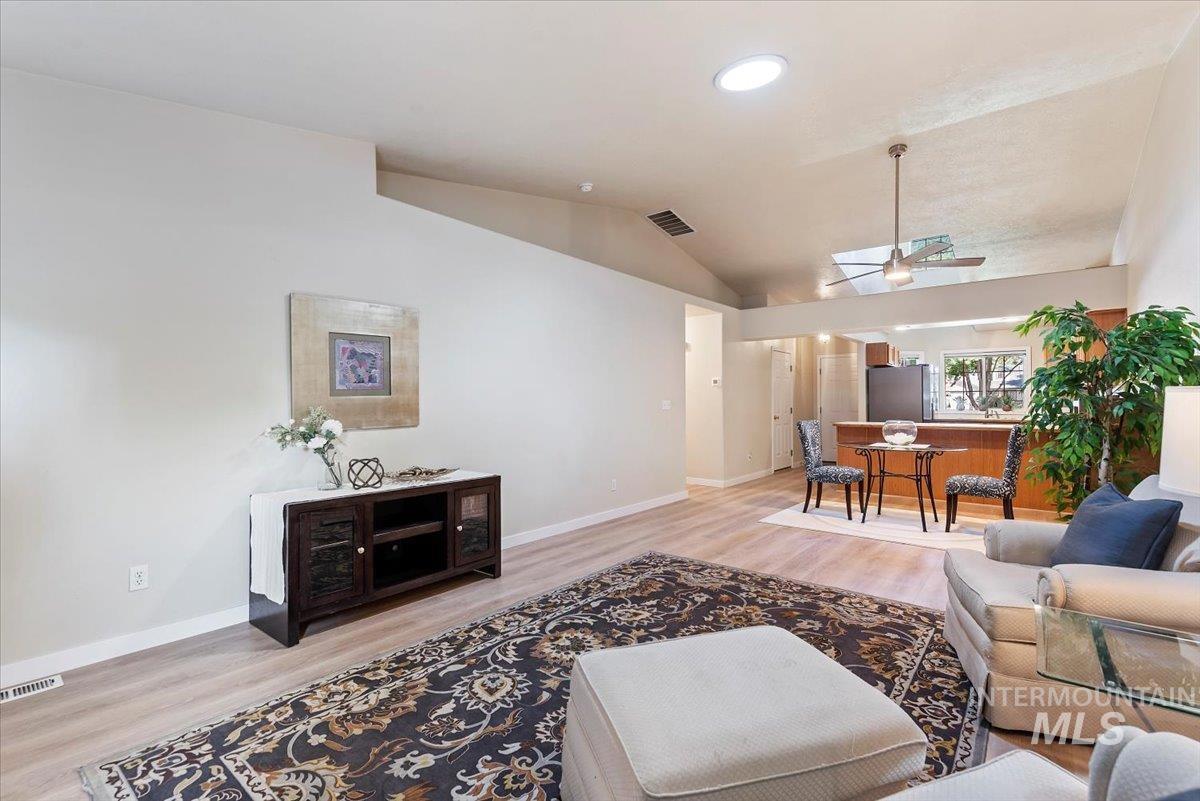 Quality built by Ted Mason Signature Homes. This two bedroom, two bath townhome showcases comfortable living and "lock and go" ease with vaulted ceilings, charming great room living with gas tiled fireplace and renovated luxury plank flooring. The kitchen has many new stainless steel appliances and pull out drawers for easy accessibility. The bedrooms have new carpet and the primary bedroom ensuite is spacious with a window seat overlooking the backyard. The primary walk-in closet is large and roomy. New granite like counters grace the kitchen and both bathrooms. Whether you want to soak in the walk-in jetted tub or take a shower, this townhome has it all. The home has many new renovations with its brand new HVAC unit, newer 40 year roof installed in 2016, counters, flooring, trim and appliances - making it move-in ready. The community clubhouse has a full kitchen and is perfect to hold large gatherings or gather as a community. Centrally located for easy access to Boise Downtown, Boise Greenbelt and Foothills and shopping. Walk to the local grocery store or community library.