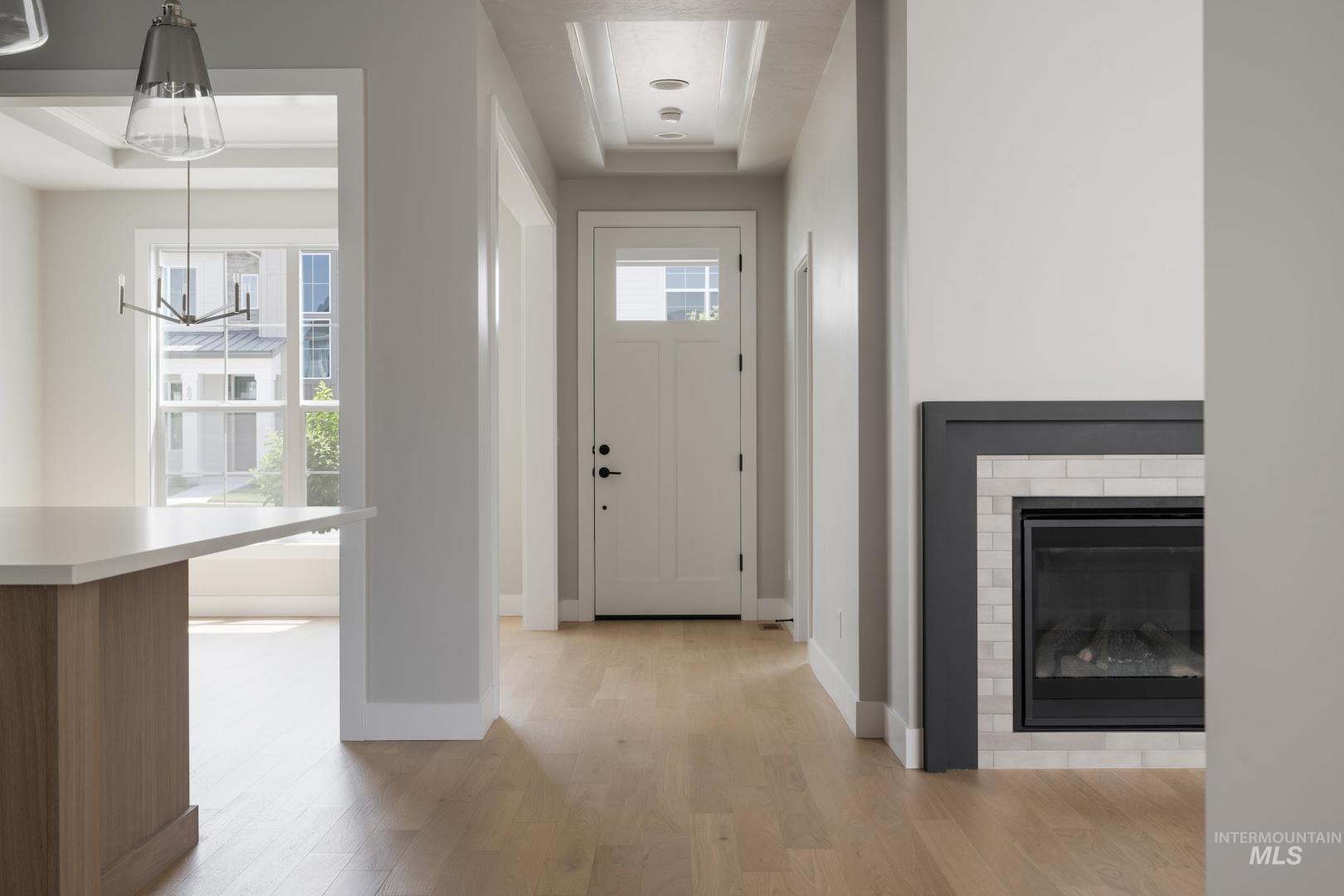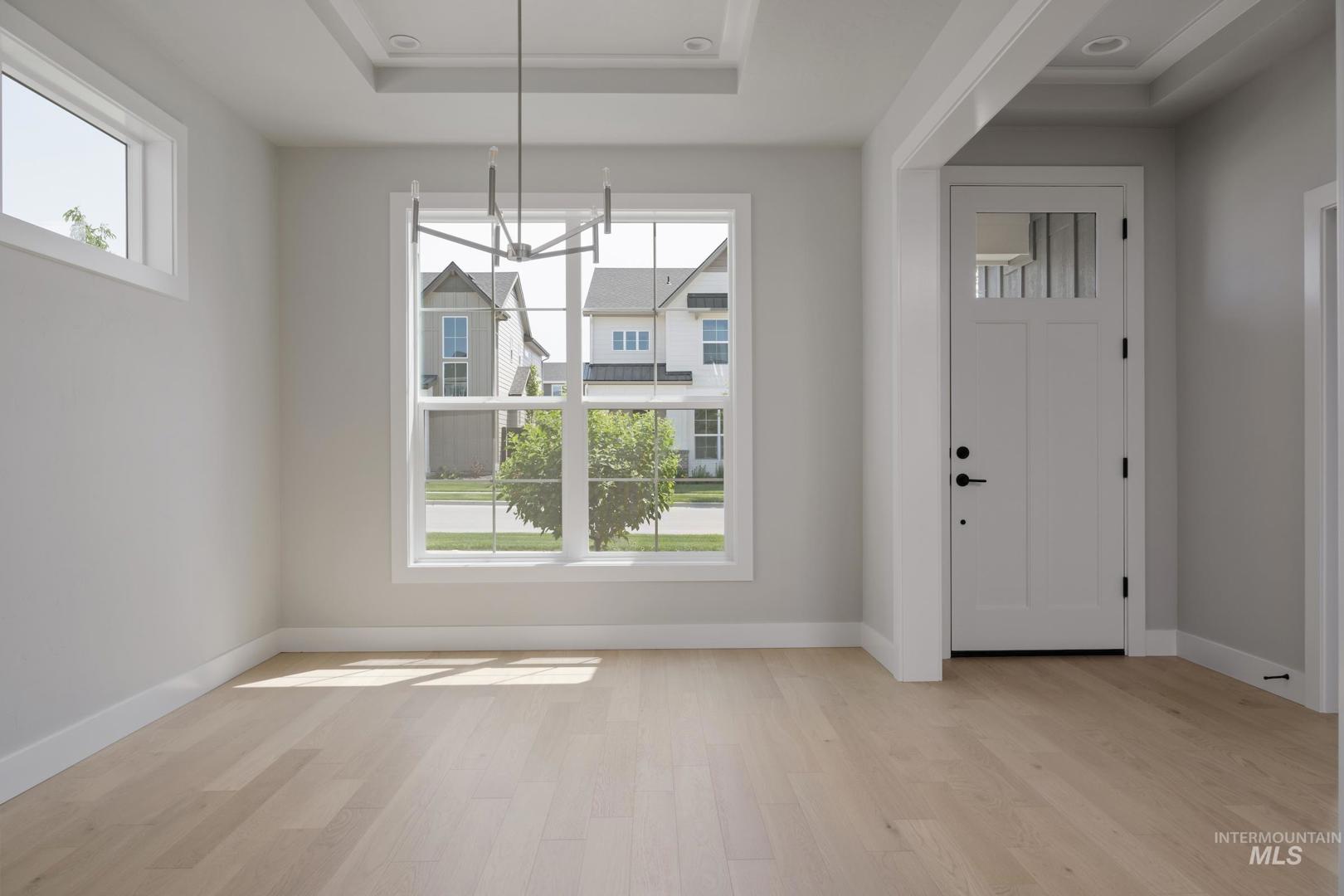 The Castle floor plan combines modern living with thoughtful design. The main level features an open kitchen, dining area, and family room with a cozy fireplace. A partially enclosed dining room adds flexibility for entertaining, while a large walk-in pantry ensures ample storage. A main-level bedroom provides added convenience for guests or multigenerational living. Large windows throughout bring in natural light, and the upstairs media room offers an additional space for relaxation or entertainment.