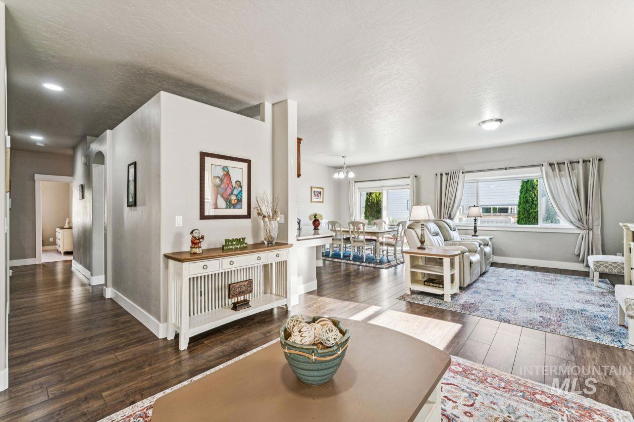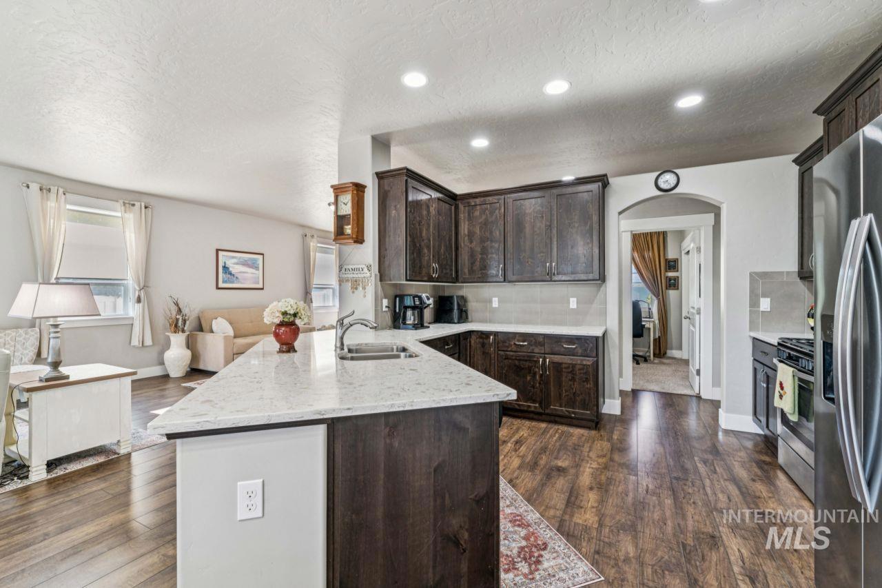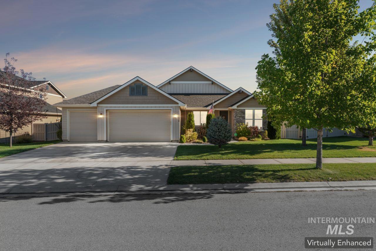 Come discover this beautifully maintained traditional West Highlands home. Step inside to wide-plank floors, a spacious living area, and a dedicated office. The kitchen shines with stainless steel appliances and quartz countertops, perfect for everyday living or entertaining. Retreat to the primary en suite, your private sanctuary, featuring a walk-in closet, dual vanity, and a walk-in shower. Two additional bedrooms, a full bath, and convenient laundry complete this inviting ranch layout. Enjoy ample storage and parking in the three-bay garage, RV Parking, plus a backyard designed for gatherings with its covered patio.