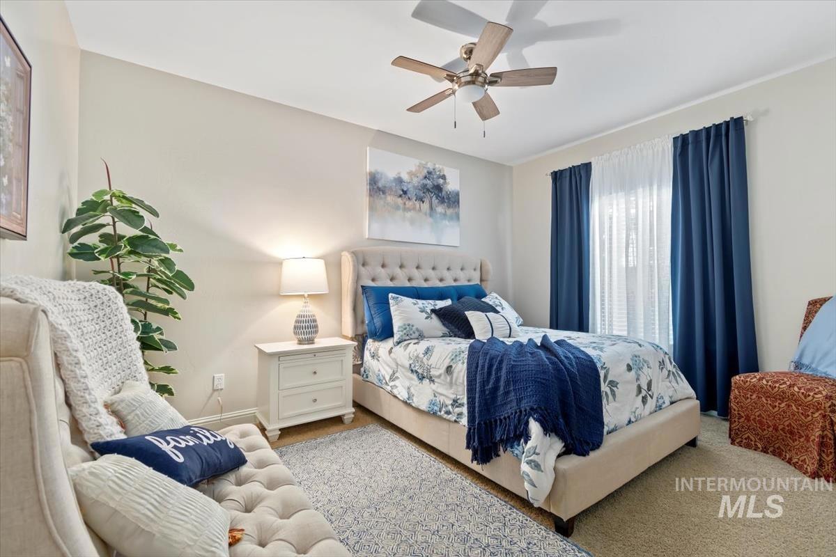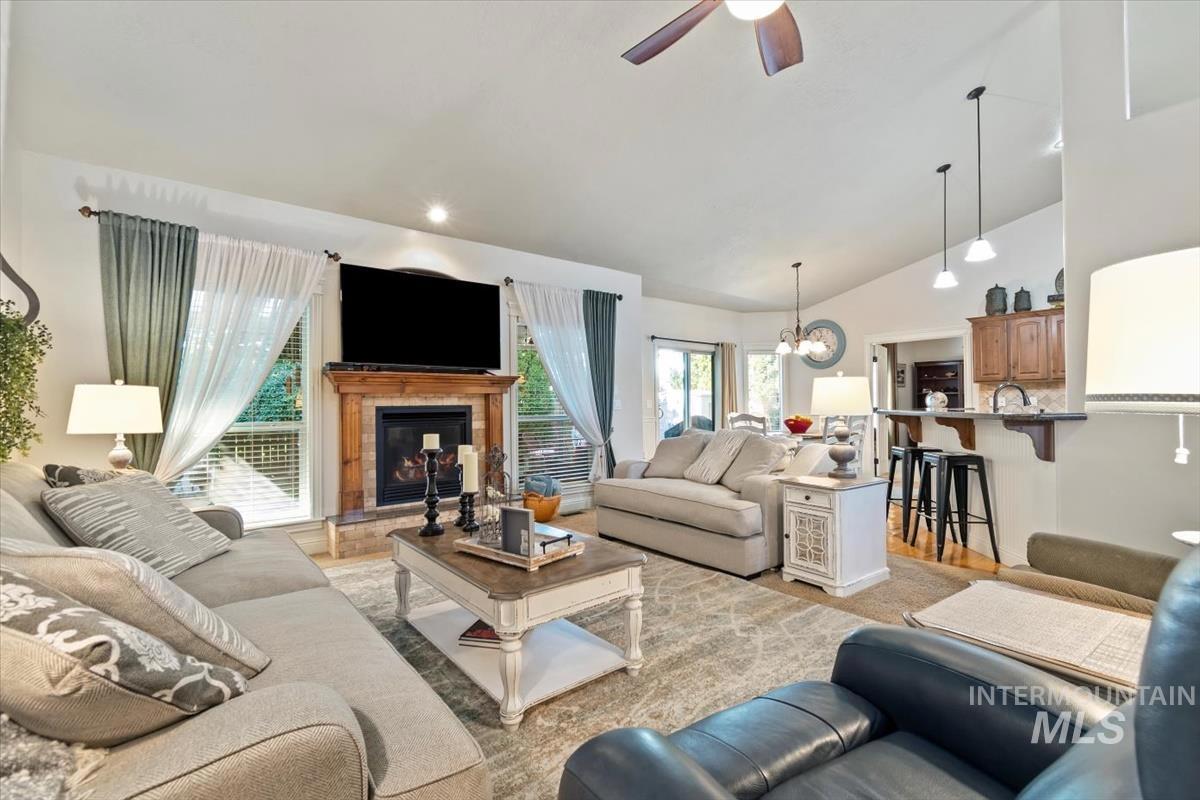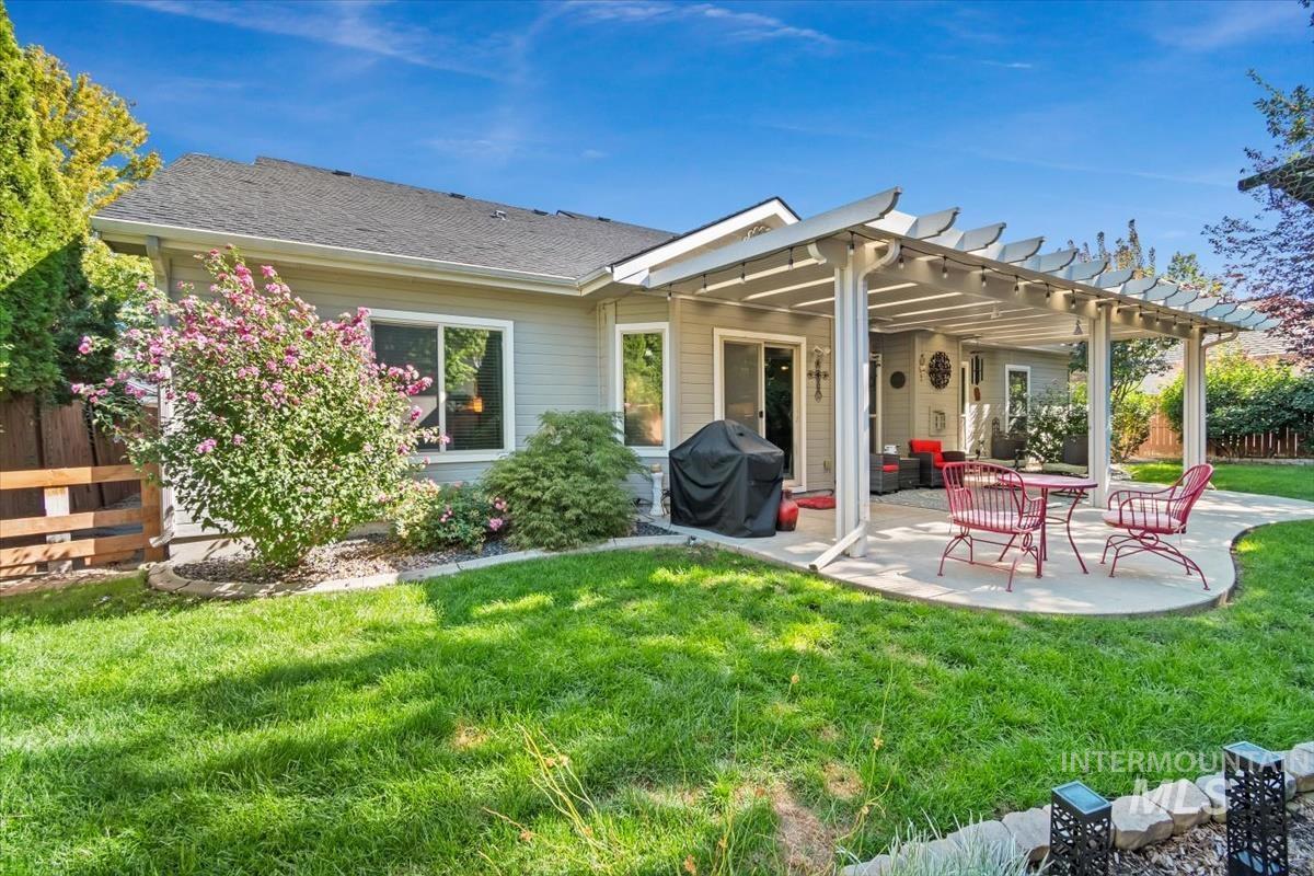 ***Ask about a 1.25% credit w/ use of preferred lender!*** 3200+ SqFt single level w/ huge 2nd story guest suite near the Meridian Village! This Todd Campbell home is custom built w/ high end finishes & craftsmanship! You won`t find a more immaculately kept home, ideally located in the quiet, sought after Champion Village just a 3 min drive (see aerials) to the Meridian Village & LOTS of retail, grocery, home improvement, dining & takeout! Step through the grand entry into an open concept and split, main level floorplan. Relish the amazing real hard wood floors always covered to protect their beauty! Continue past the formal dining area into tall vaulted ceilings in the oversized great room & a cozy, wood and stone wrapped fireplace that beckons! The large kitchen impresses w/ an abundance of cabinet space, pantry, granite countertops & SS appliances & adjacent oversized study! Admire the colossal Primary bedroom w/ lighted crown molding, large bathroom w/ dual vanities, tiled shower, soaker tub, & walk-in closet! The all but grand staircase leads to the 2nd story guest suite complete w/ large bedroom, full bathroom, & huge bonus room w/ sink & mini fridge. Walk 50 yards to the walking path leading to the HUGE, WELL maintained Champion Park w/ a walking path surround, two basketball courts, play equipment, bathrooms, drinking fountains, covered pavilion, & parking lot! Welcome Home!