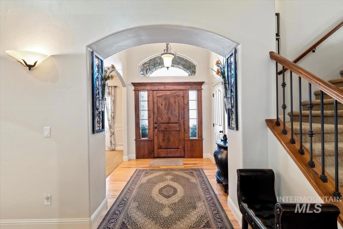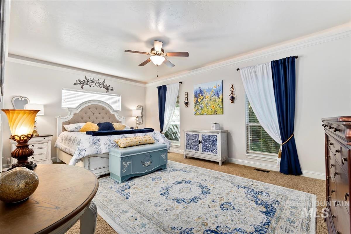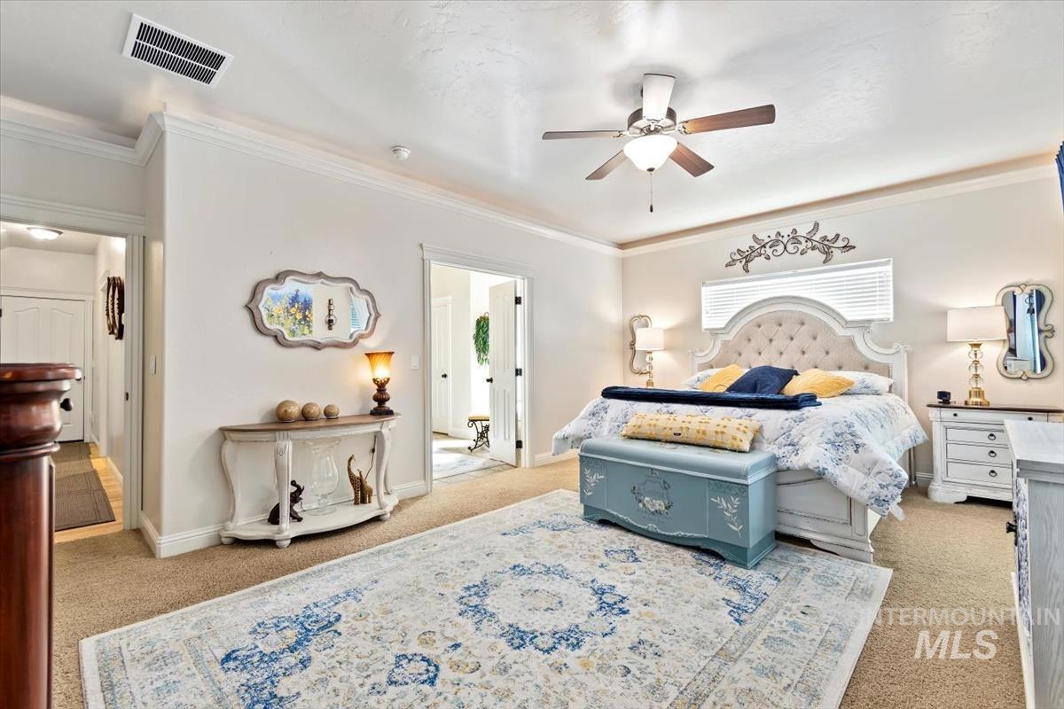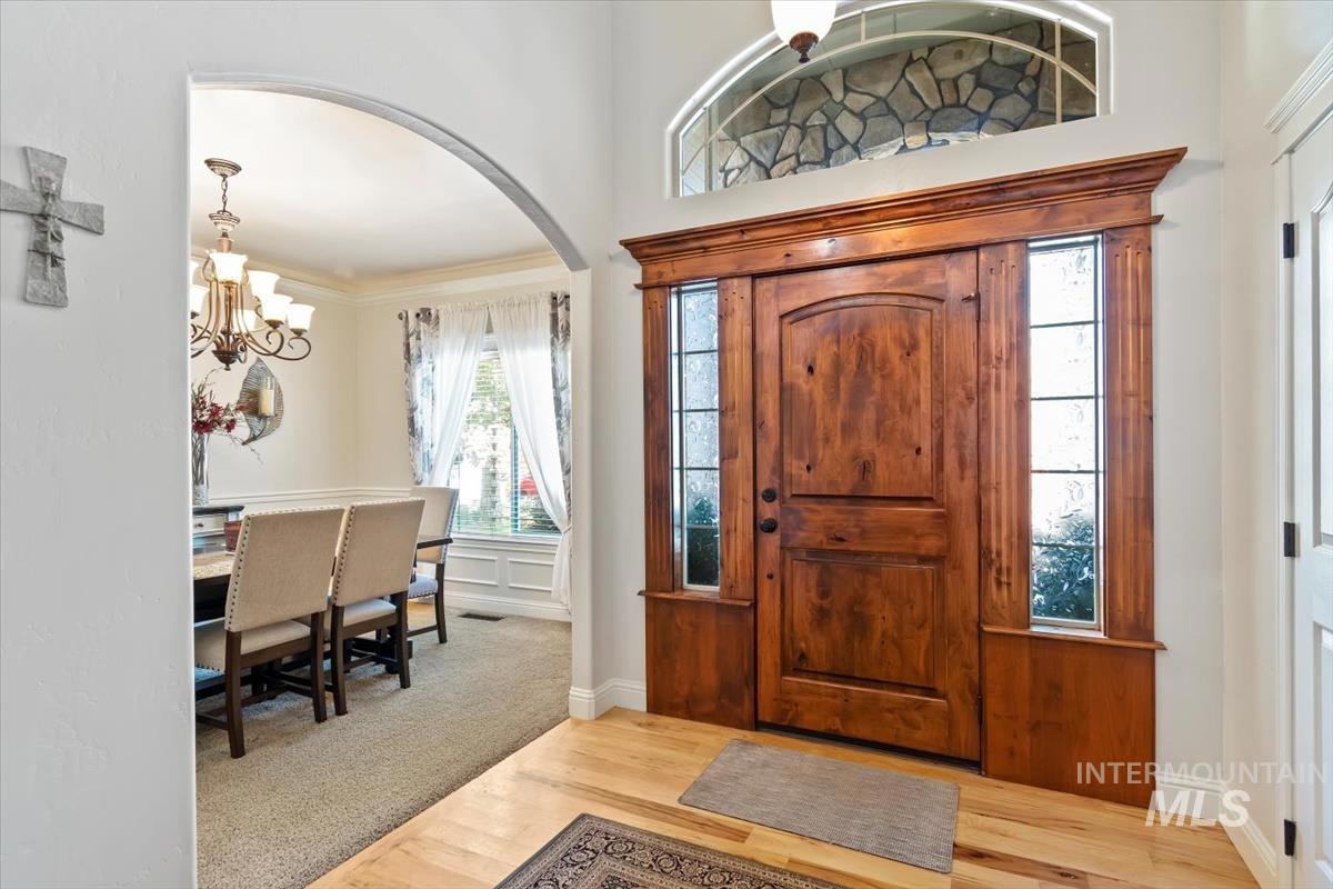 ***Ask about a 1.25% credit w/ use of preferred lender!*** 3200+ SqFt single level w/ huge 2nd story guest suite near the Meridian Village! This Todd Campbell home is custom built w/ high end finishes & craftsmanship! You won`t find a more immaculately kept home, ideally located in the quiet, sought after Champion Village just a 3 min drive (see aerials) to the Meridian Village & LOTS of retail, grocery, home improvement, dining & takeout! Step through the grand entry into an open concept and split, main level floorplan. Relish the amazing real hard wood floors always covered to protect their beauty! Continue past the formal dining area into tall vaulted ceilings in the oversized great room & a cozy, wood and stone wrapped fireplace that beckons! The large kitchen impresses w/ an abundance of cabinet space, pantry, granite countertops & SS appliances & adjacent oversized study! Admire the colossal Primary bedroom w/ lighted crown molding, large bathroom w/ dual vanities, tiled shower, soaker tub, & walk-in closet! The all but grand staircase leads to the 2nd story guest suite complete w/ large bedroom, full bathroom, & huge bonus room w/ sink & mini fridge. Walk 50 yards to the walking path leading to the HUGE, WELL maintained Champion Park w/ a walking path surround, two basketball courts, play equipment, bathrooms, drinking fountains, covered pavilion, & parking lot! Welcome Home!