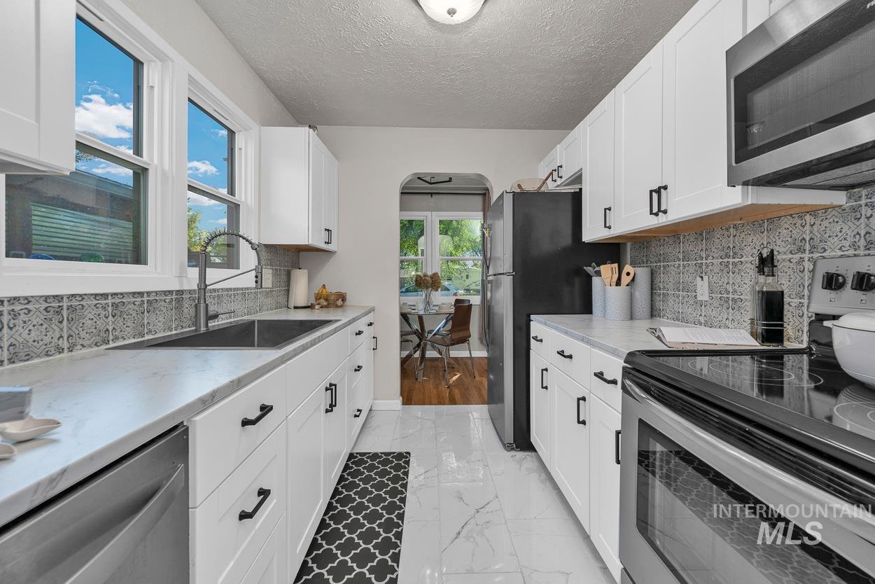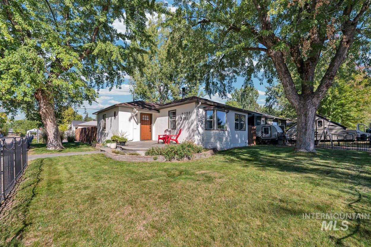 Perfection on the bench! Welcome home to this charming, updated Mid-Century cottage; centrally located off Vista! The architectural styling which includes high ceilings with rounded edges and arched doorways make the home feel cozy and big enough to entertain. Original hardwood flooring throughout the house with new tile flooring in kitchen and bathroom. Fully renovated bathroom and kitchen with all new SS appliances, cabinetry and countertops done in 2022. Recent updates include roof in 2020, new vinyl windows, composite decking, in-ground sprinklers, HVAC 2015, new dishwasher(2024), new water heater (2024), new garage door (2023) and side deck (2023). Layout is perfect with ample natural light through out. Large detached 1 car garage/shop, storage shed and dog run, It has a large fully fenced yard. Bring your furry friends! Off street parking for up to 5 cars. Minutes away from downtown Boise, airport, and highway 84. It`s move in ready!! Come check it out!!