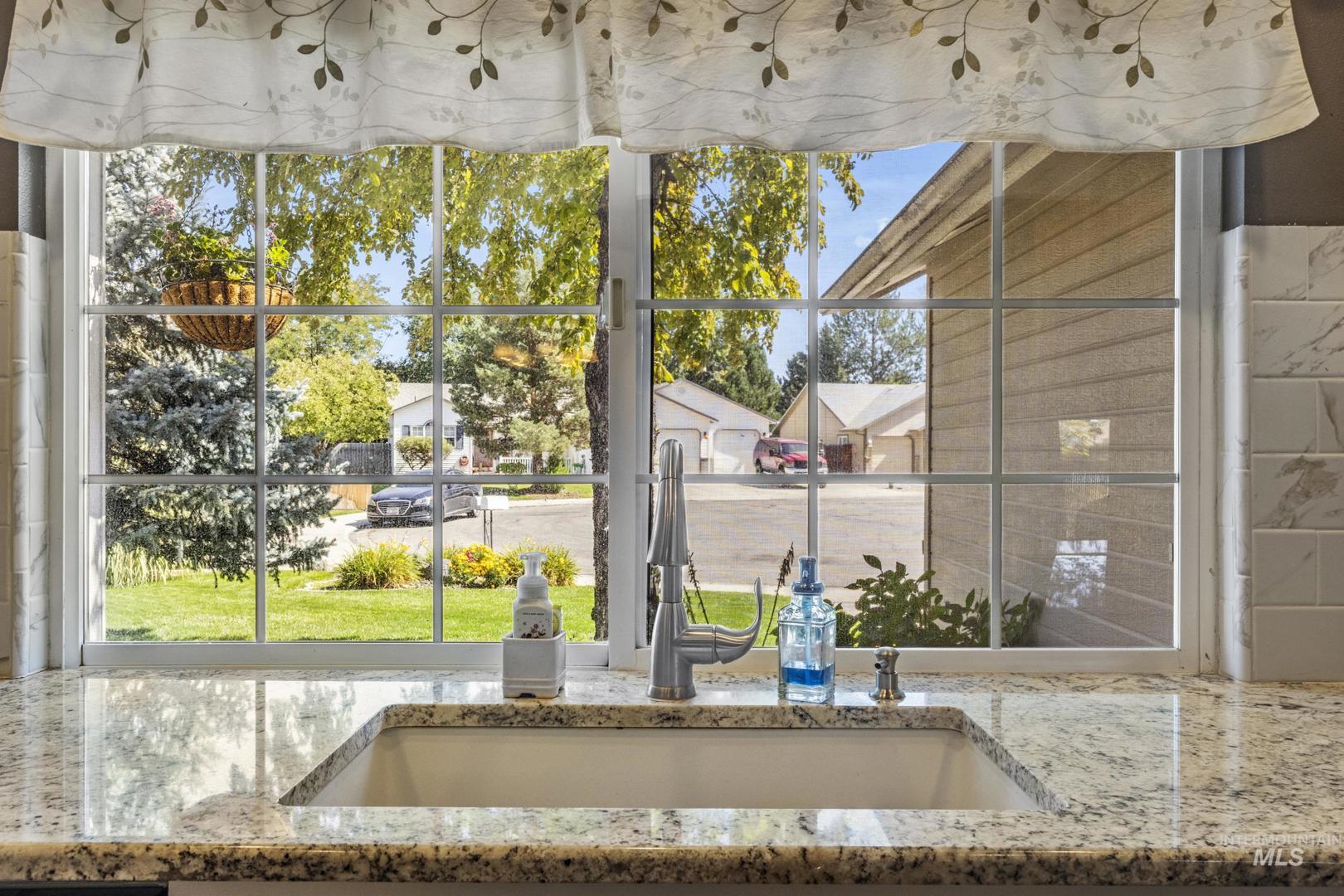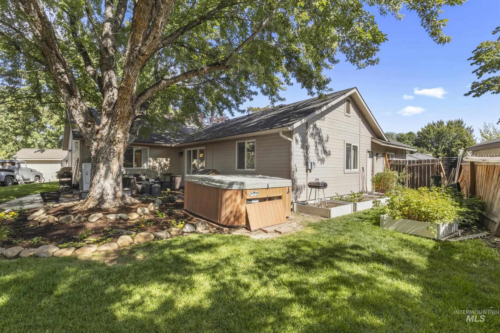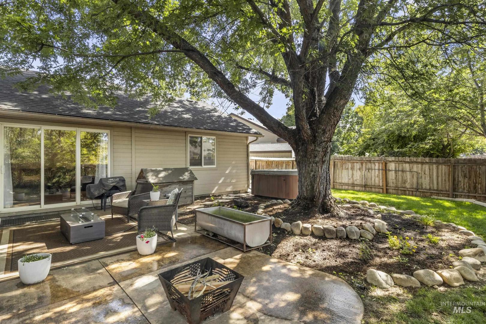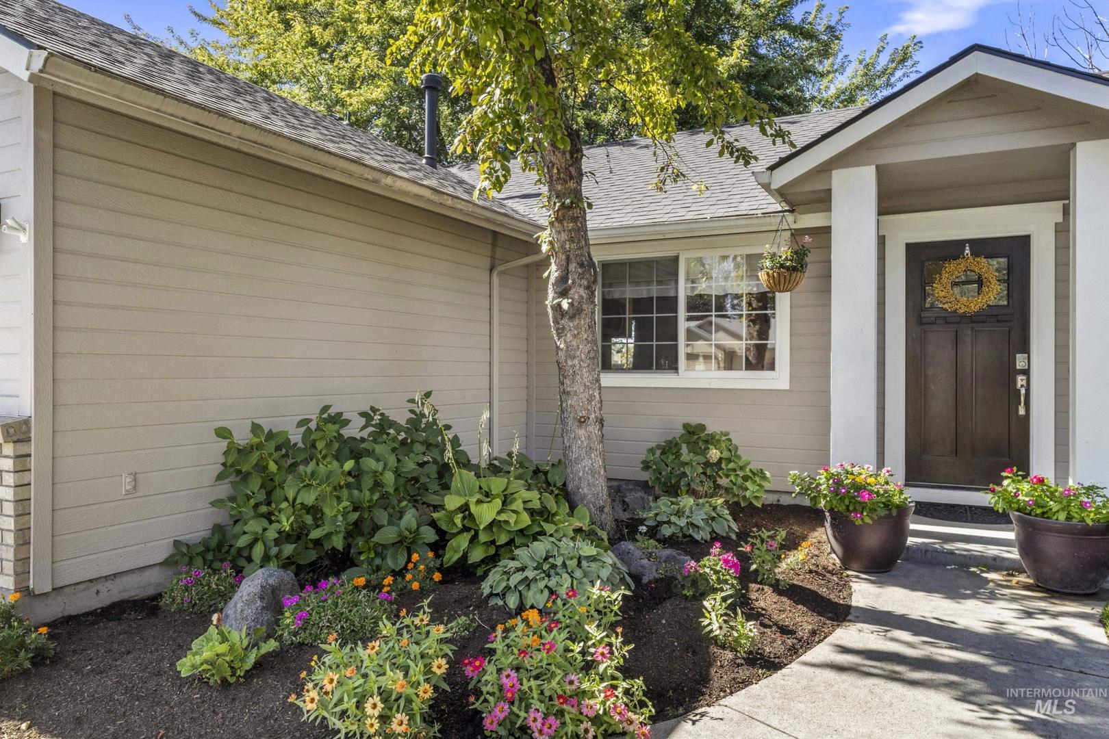 Welcome home! This beautifully maintained property sits in a quiet cul-de-sac with no neighbors directly behind for extra privacy. A rare 5 bedrrom home thats has been tasfully updated. Featuring real hardwood floors throughout the living room, hallway, dining and updated kitchen. Brand new roof replaced just last year (2024), and granite countertops in titchen and bathrooms. Enjoy the fully fenced, shaded backyard with mature landscaping, garden boxes, and plenty of space to relax. Just minutes from I-84 that will pretty much take you anywhere in the treasure valley! Walking distance to Mountain View High School, this location is unbeatable. Plus, the low power bills make this home as efficient as it is charming!