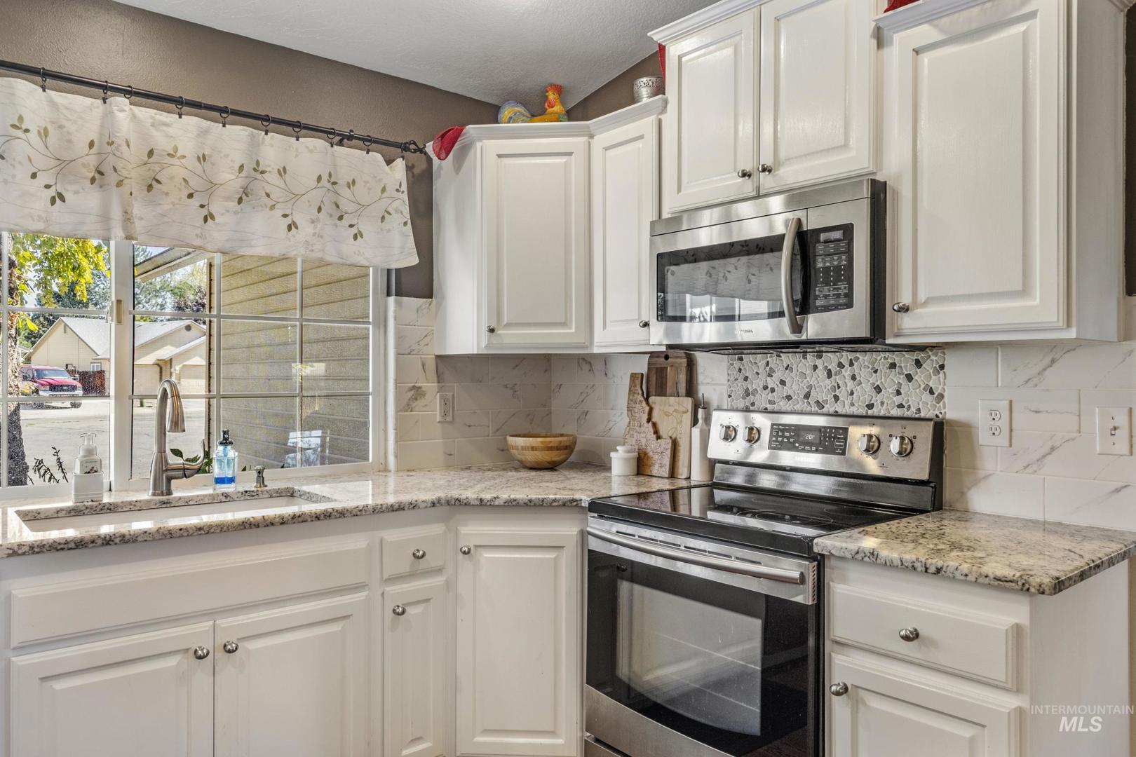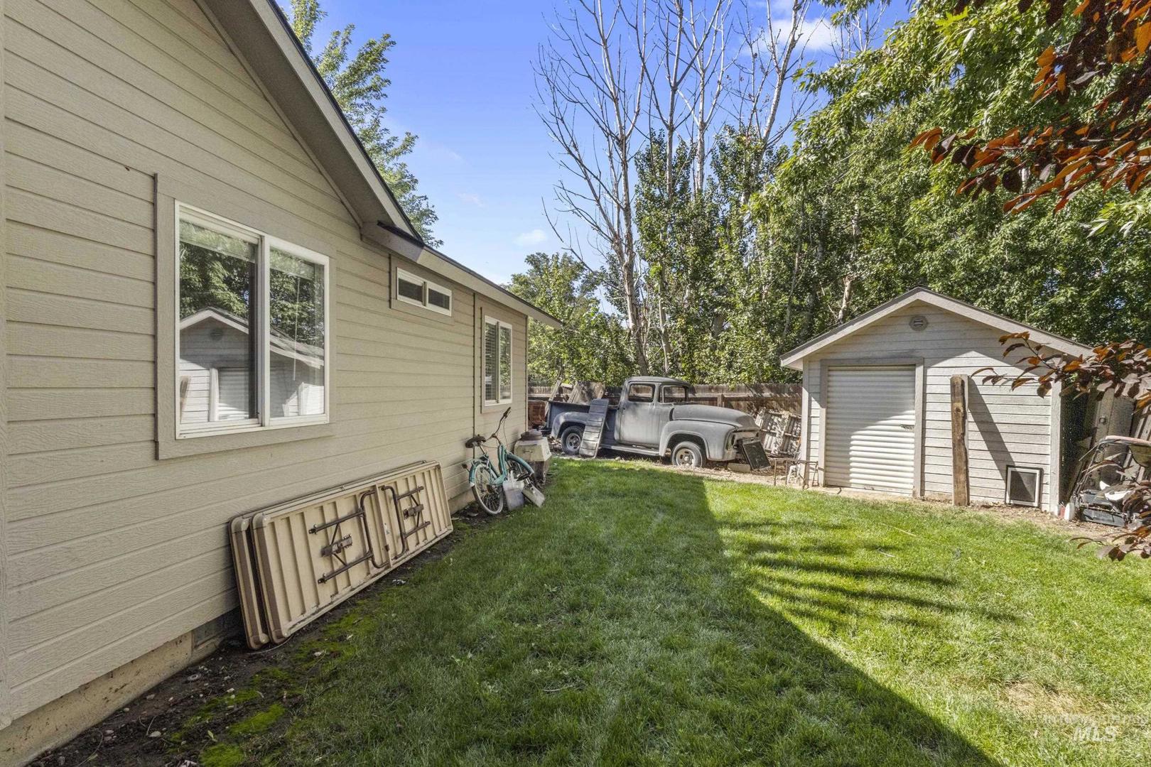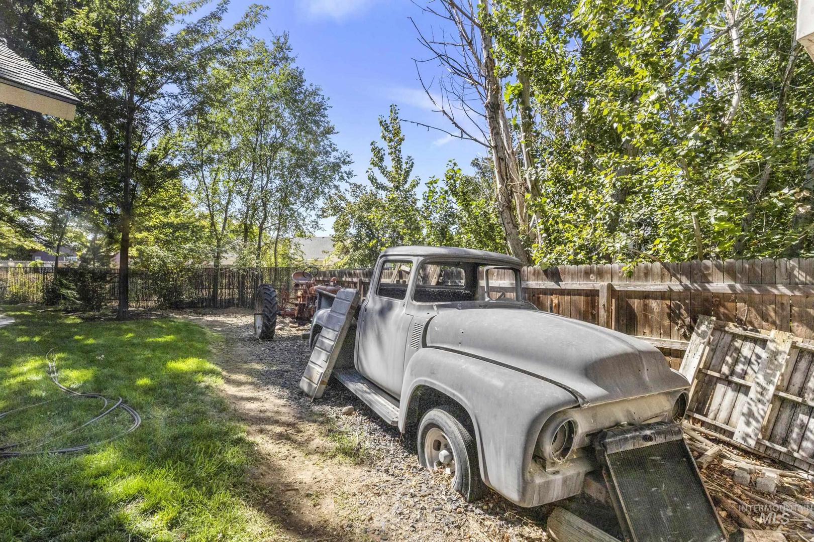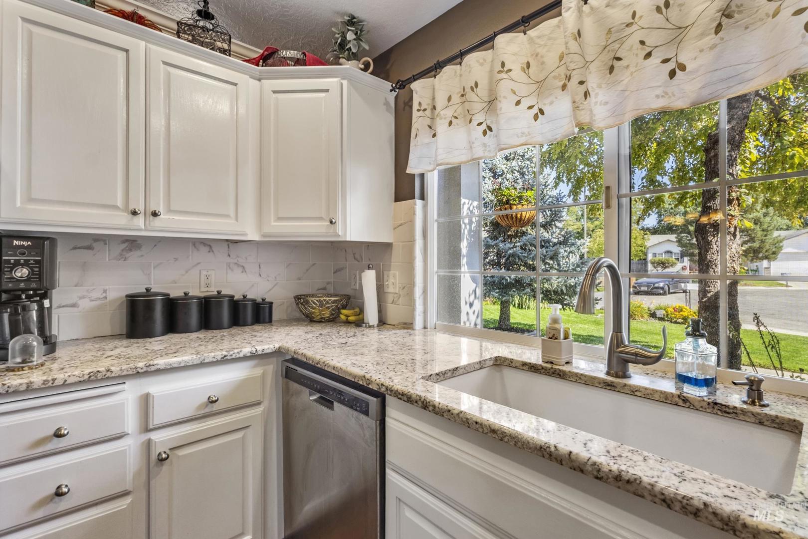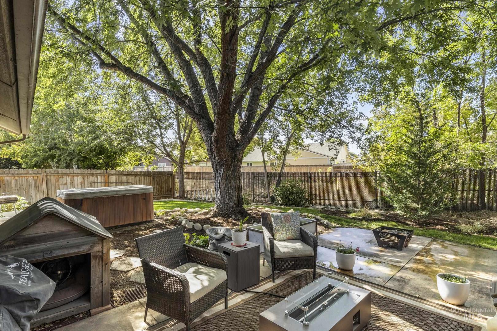 Welcome home! This beautifully maintained property sits in a quiet cul-de-sac with no neighbors directly behind for extra privacy. A rare 5 bedrrom home thats has been tasfully updated. Featuring real hardwood floors throughout the living room, hallway, dining and updated kitchen. Brand new roof replaced just last year (2024), and granite countertops in titchen and bathrooms. Enjoy the fully fenced, shaded backyard with mature landscaping, garden boxes, and plenty of space to relax. Just minutes from I-84 that will pretty much take you anywhere in the treasure valley! Walking distance to Mountain View High School, this location is unbeatable. Plus, the low power bills make this home as efficient as it is charming!