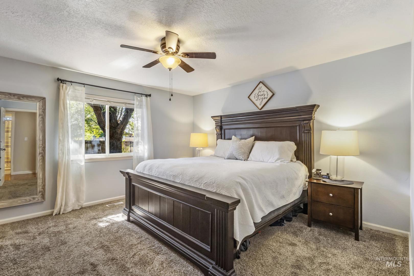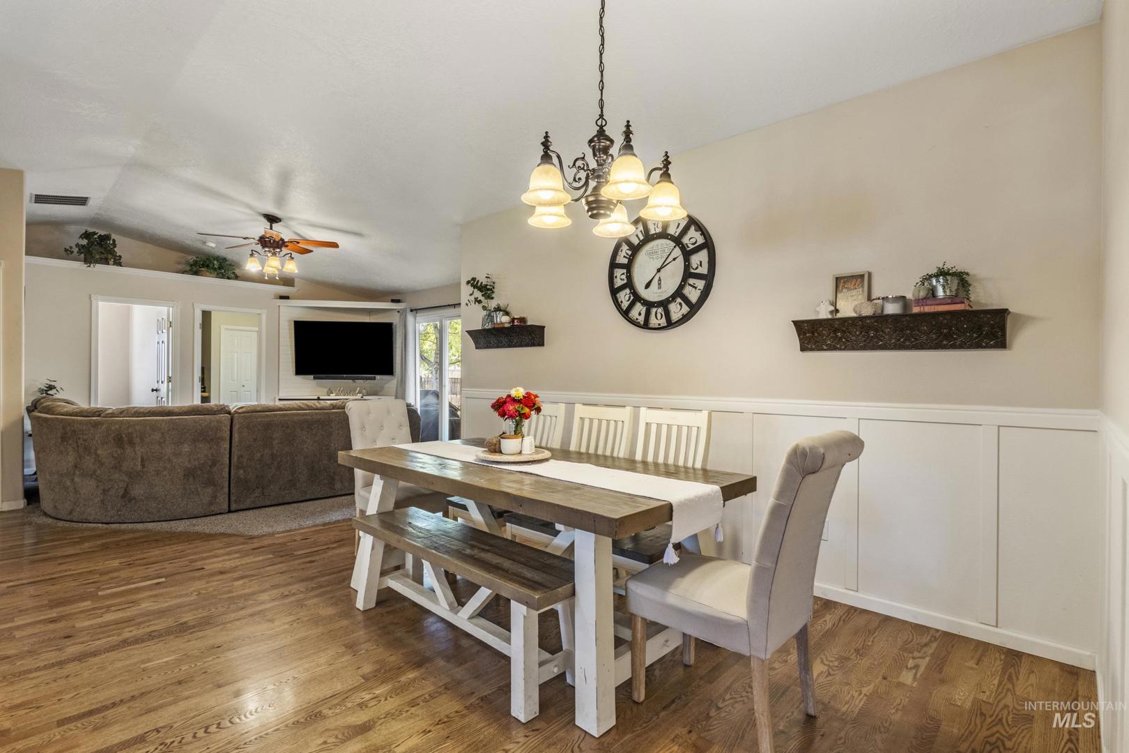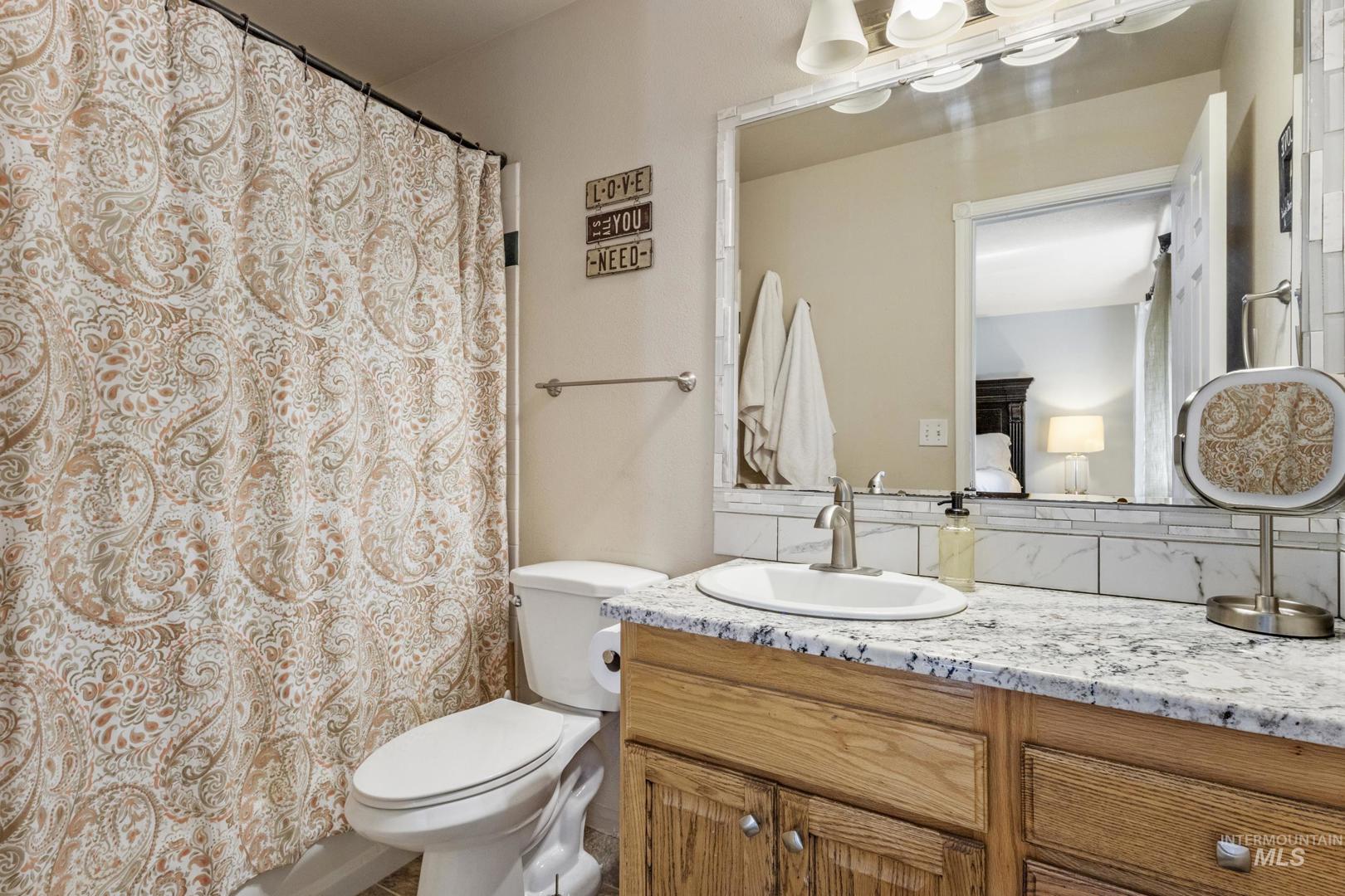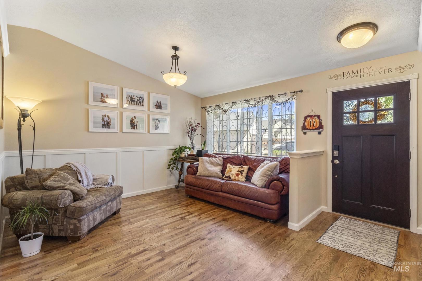 Welcome home! This beautifully maintained property sits in a quiet cul-de-sac with no neighbors directly behind for extra privacy. A rare 5 bedrrom home thats has been tasfully updated. Featuring real hardwood floors throughout the living room, hallway, dining and updated kitchen. Brand new roof replaced just last year (2024), and granite countertops in titchen and bathrooms. Enjoy the fully fenced, shaded backyard with mature landscaping, garden boxes, and plenty of space to relax. Just minutes from I-84 that will pretty much take you anywhere in the treasure valley! Walking distance to Mountain View High School, this location is unbeatable. Plus, the low power bills make this home as efficient as it is charming!