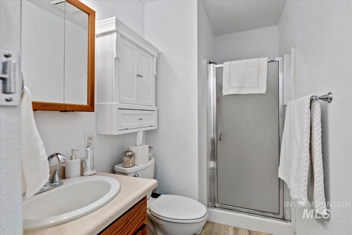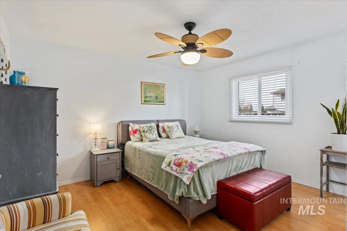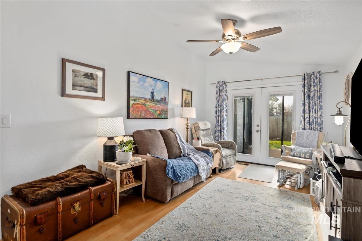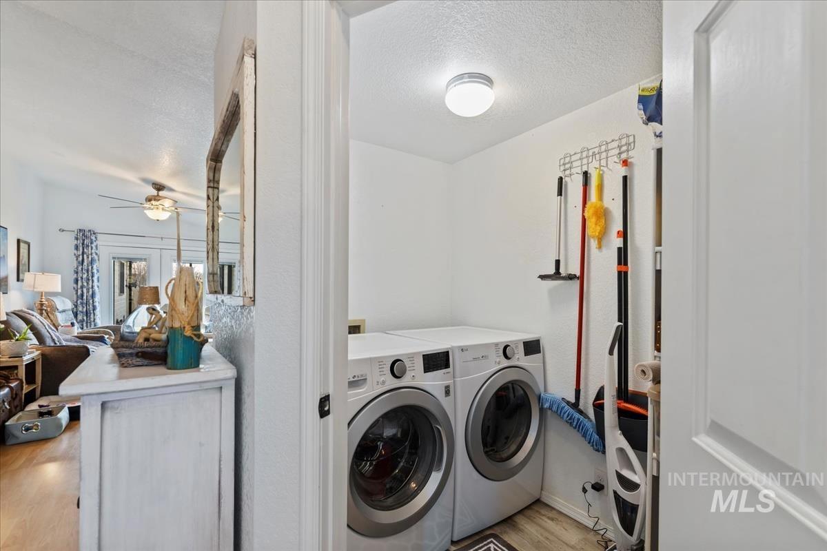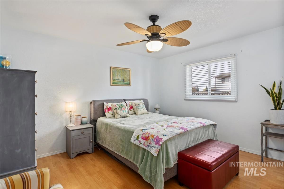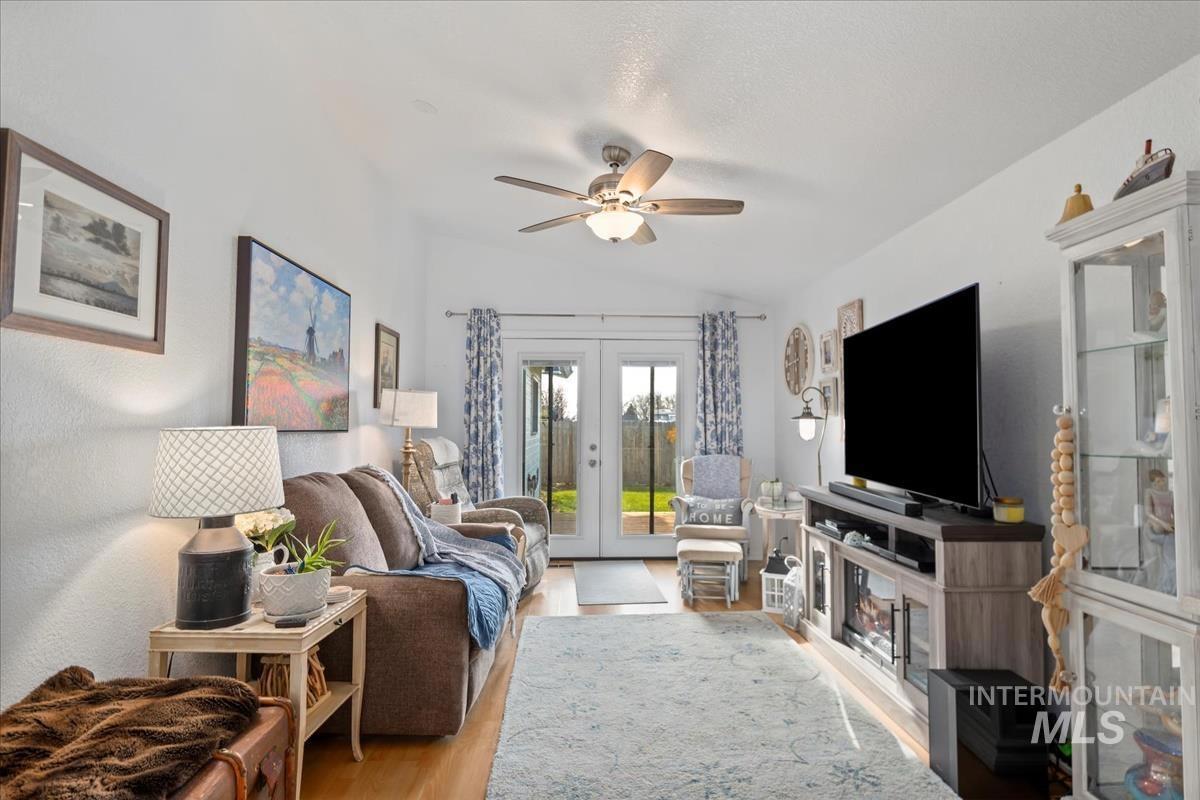 Charming and beautifully maintained 2-bedroom, 2-bath townhome with an oversized 1-car garage, located in a quiet, convenient neighborhood. This inviting home features a durable metal roof, a stained redwood deck, and a fully fenced backyard offering privacy and low-maintenance landscaping. Inside, enjoy vaulted ceilings, updated lighting, a spacious kitchen with tiled countertops, oak cabinetry, and stainless appliances including a smooth-top range, dishwasher, and microwave. The primary suite offers deck access, a large window for natural light, and an ensuite bath with a glass-door shower. Laminate floors flow throughout the main living areas, with a dedicated laundry space and added storage for convenience. Ideal for low-maintenance living or a lock-and-leave lifestyle, this charming home blends comfort and functionality. Nearby parks, shops, and dining add to the convenience, while the peaceful setting and thoughtful layout make it a true gem in the heart of Payette.