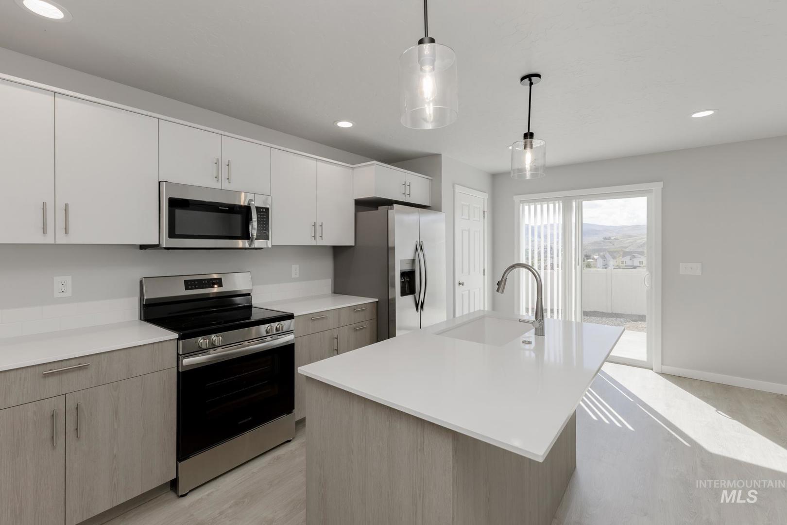 Fall in Love with Low Rates! Promotional rate as low as 2.99%. Ask a Sales Specialist for details! Feel enriched in your brand new home located in Horseshoe Bend, Idaho! Discover the thoughtful layout of the Sandhill 1492! The home includes a refrigerator, washer, dryer, and blinds throughout! The main level welcomes you with an open-concept design, where the living, dining, and kitchen areas flow together for easy entertaining and everyday living. A convenient powder bath and access to the backyard make the space both functional and inviting. Upstairs, the primary suite offers a private retreat with an attached bathroom and spacious walk-in closet, while two additional bedrooms and a full bath provide room for family, guests, or a home office. The laundry area is also located upstairs for convenience. Full landscaping is included, and the HOA covers added perks like exterior maintenance, roof care, and lawn upkeep. Photos are similar. All selections are subject to change without notice, please call to verify.