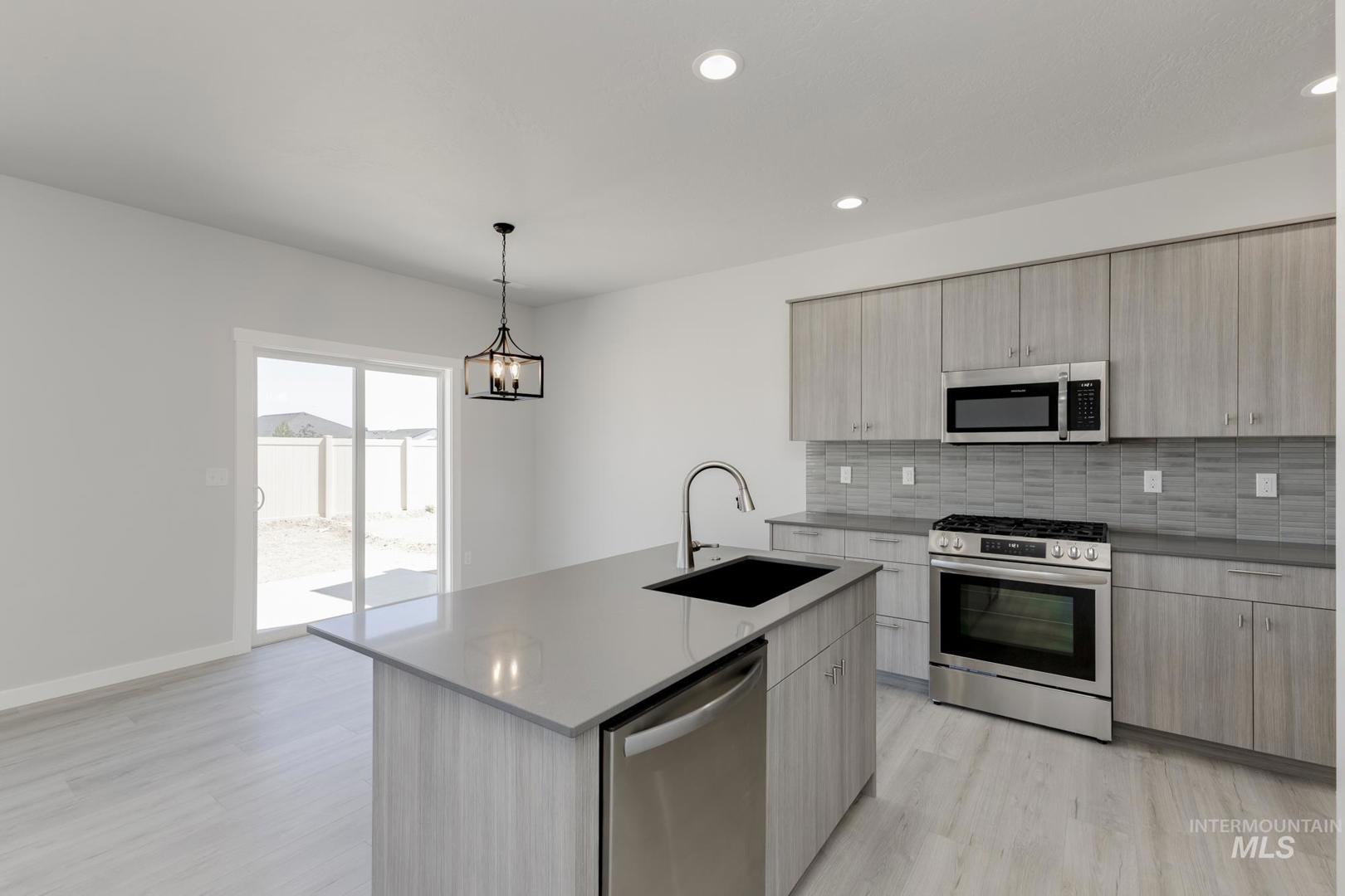 Fall in Love with Low Rates! Promotional rate as low as 2.99%. Ask a Sales Specialist for details! Feel enriched in your brand new home located in Meridian, Idaho! Gather round and let the designer in you come to life in this delightful floor plan – the Berlin 1678. The open main floor allows for large gatherings, endless entertainment, and room for any activity. The kitchen boasts upgraded finishes, including stainless steel appliances, a gas range, and stylish solid surface countertops. Wander upstairs and be mesmerized by a loft area perfect for homework, a library, or daydreaming. The flexibility of this space provides endless possibilities for customization. The primary suite is complete with a walk-in closet and an en suite bathroom fit for rest and relaxation, featuring a dual vanity. Two additional bedrooms provide space for family, guests, or a home office. With thoughtful design and an abundance of living space, the Berlin offers a home that truly adapts to your lifestyle. Photos are of the actual home!
