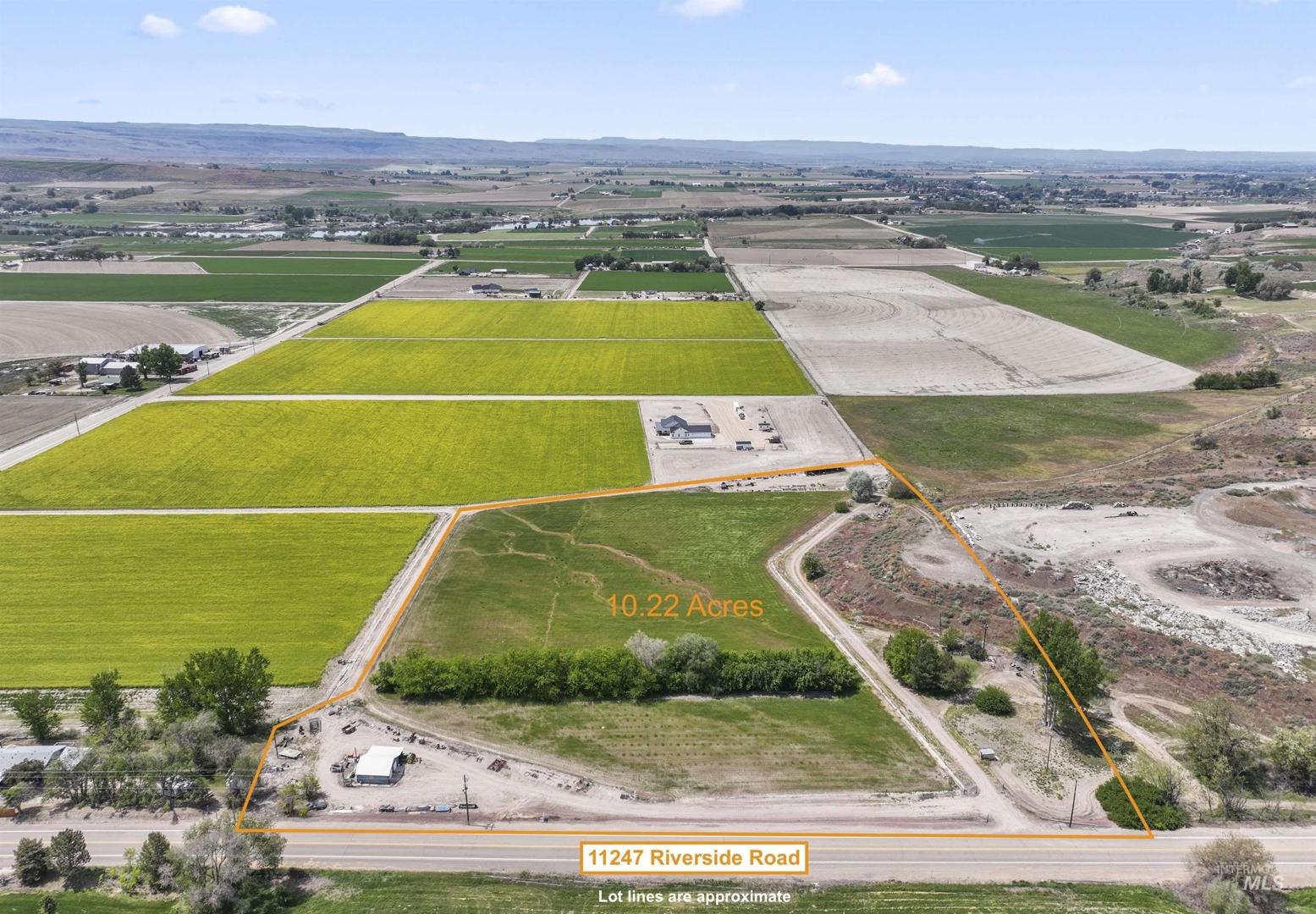 10.22 acres Sellers willing to split Parcels to Buyers needs, building permit and Adu available, Build your dream and live on site while building, level farm ground with upper-level building site. A Rare opportunity to build your dream home in a quiet country setting with unobstructed views of the Owyhee Mountains. concrete ditch and tube irrigation, Park like site with RV parking, well and septic, ready to live while you build your homes, An ideal setting for those seeking extra space The perfect location for a barn dominium, shop or home, for the wine enthusiast tour and enjoy the local snake river wineries of the area. Close to the Snake River for recreation and boating and no HOA. Owner carry financing option