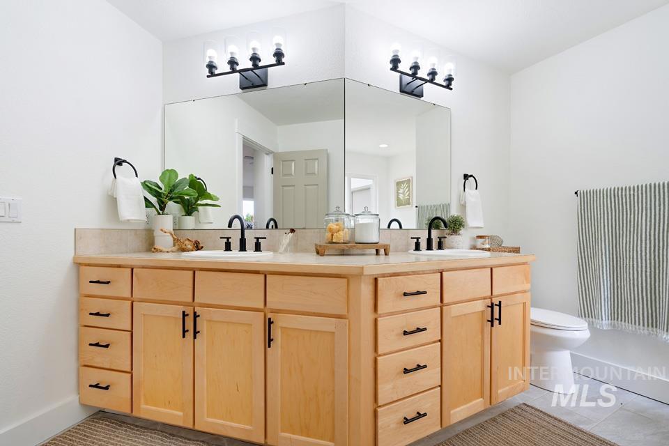 Beautiful former parade home, remodeled and move-in ready! 2,676 sqft of living space on a spacious 0.20-acre corner lot in a desirable neighborhood. This well-maintained home features brand new carpet, kitchen sink, faucets and updated light fixtures throughout. Vaulted ceilings and large windows bring in abundant natural light. Main-level primary suite and a dedicated office/den area provides the perfect work-from-home space! Enjoy a formal dining room for entertaining and an upstairs bonus/rec room (with a full bathroom) ideal for a playroom, gym, in law quarters, media space or bedroom. A 3-car garage that offers plenty of storage. Large deck with storage shed in the back yard. Located close to schools, parks, and amenities, this home offers the perfect blend of comfort, function, and style. Don’t miss this one!