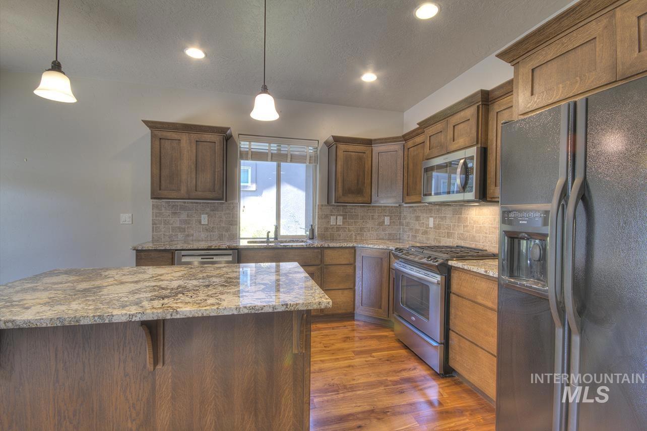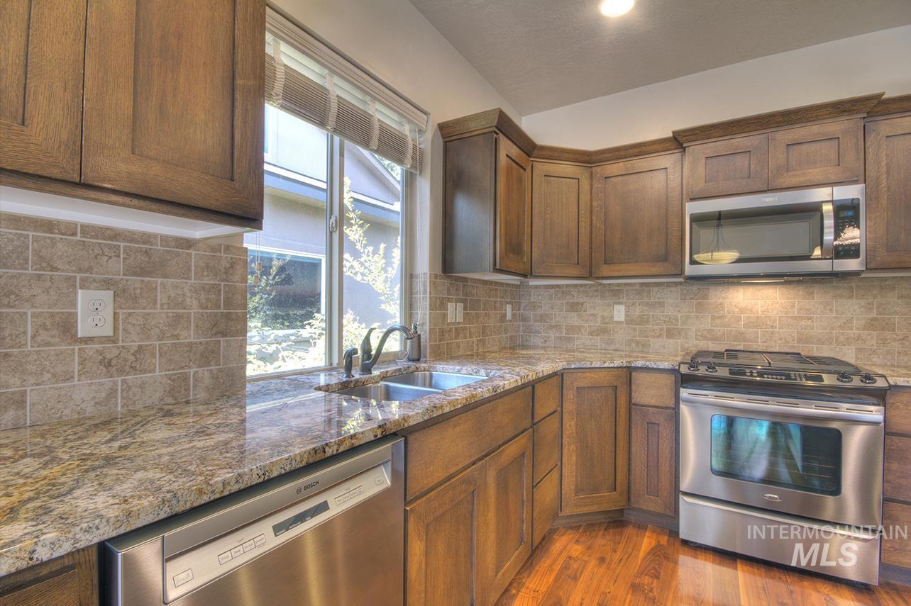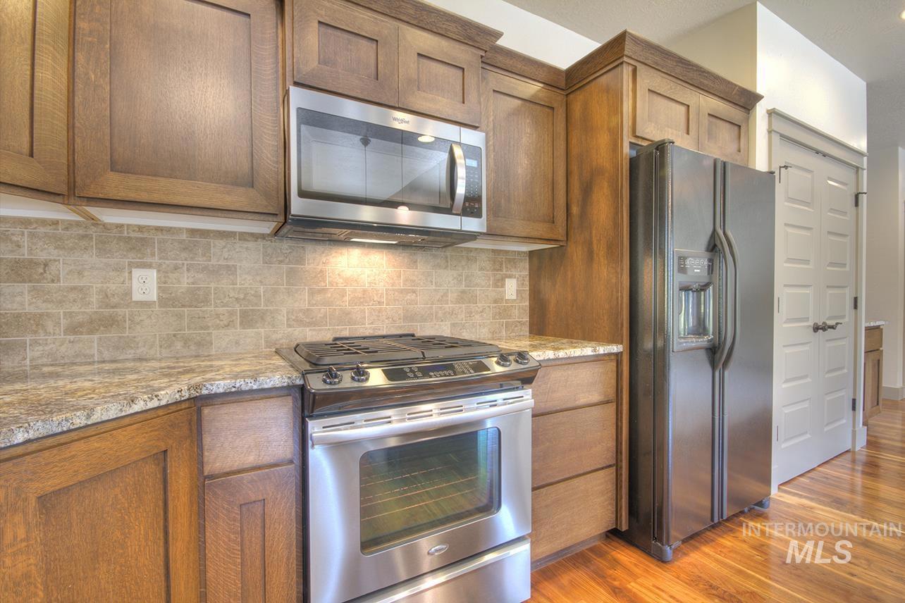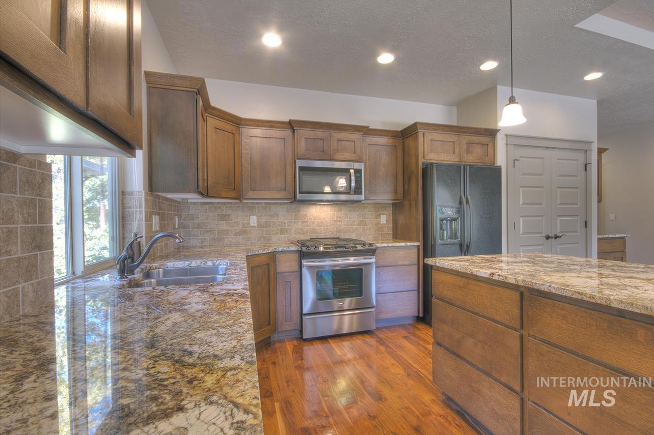 Vacant turnkey home comes with an oversized three-car garage, utility trailer parking on the side of the house, a covered backyard patio, and very little lawn maintenance. Beautiful, real dark walnut hardwood floors and hand-textured walls The kitchen includes all granite surfaces, with custom-made quarter-sawn cabinets; the large master bedroom has an attached, huge walk-in shower; includes washer, dryer, and refrigerator; whole-house sucker fan, perfect for inexpensive heating and cooling the home to the exterior temperatures! Built in a time where quality was at a different level.