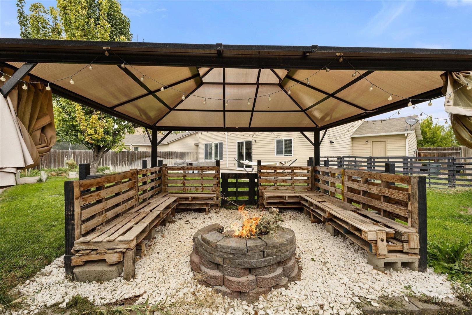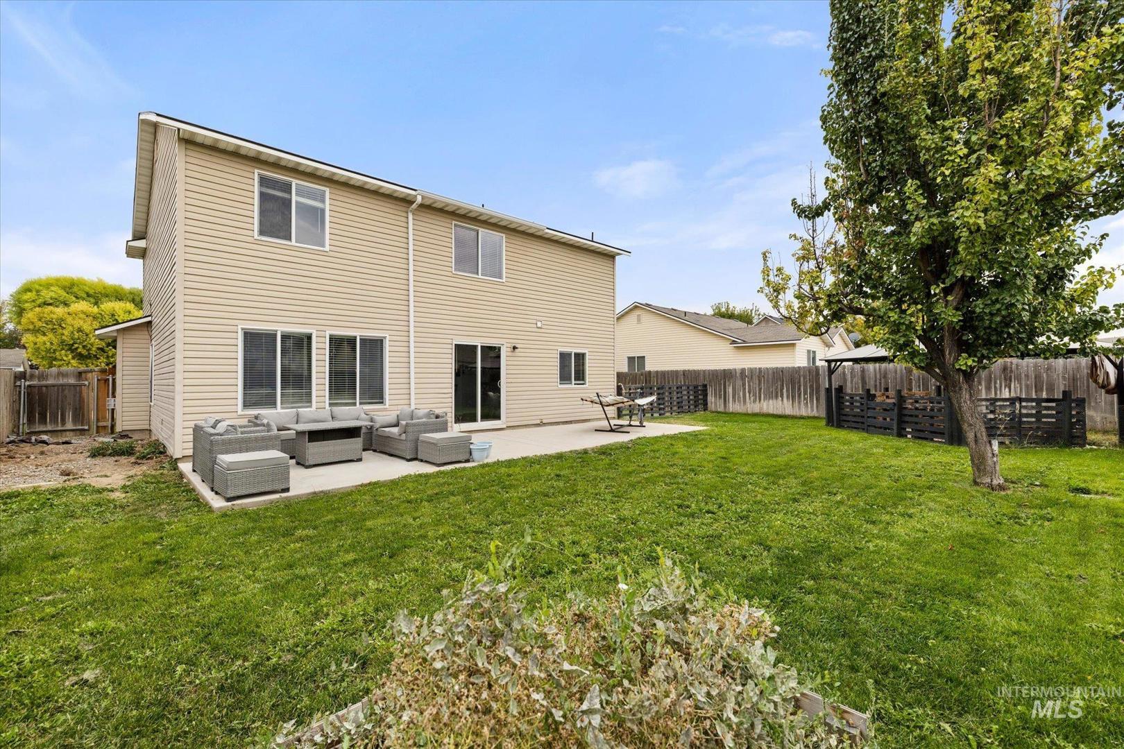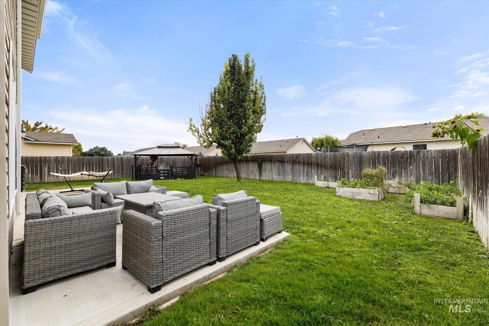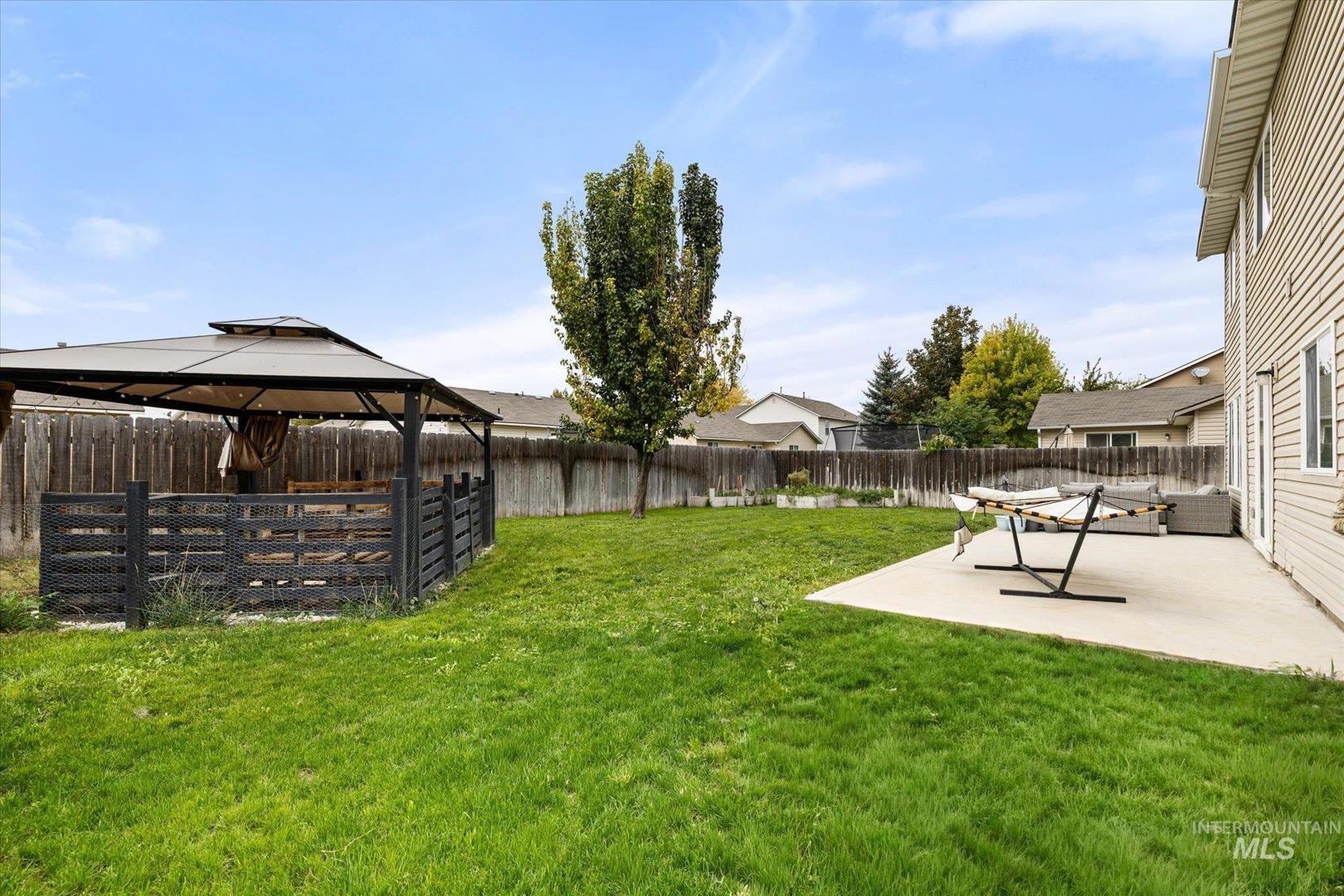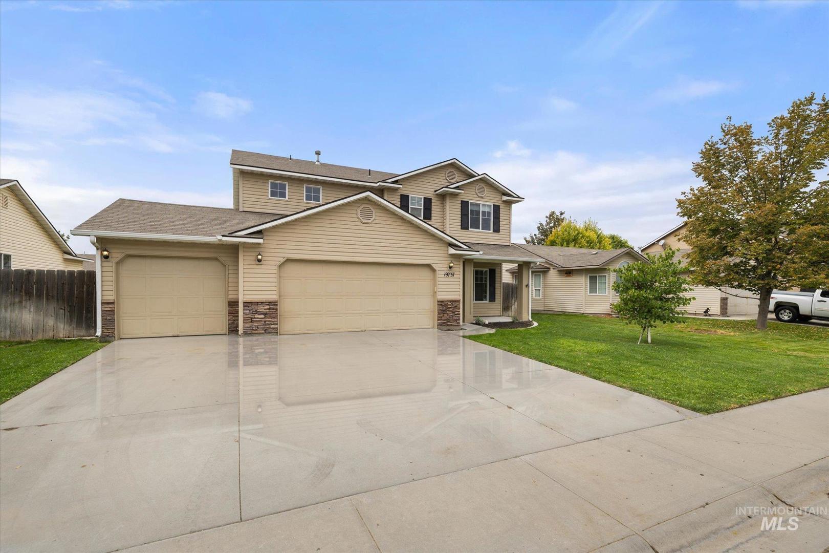 This 4 bedroom, 2.5 bath home is better than new with thoughtful updates throughout. The main level features newer luxury vinyl plank floors and an open design that connects the kitchen, dining, and living areas. The kitchen flows into the living space, creating a practical layout for daily routines and gatherings. Upstairs offers four bedrooms, including a primary suite with private bath, along with additional rooms for family, guests, or office use. The 3-car garage includes epoxy floors for a clean and durable finish, while recent updates such as a new HVAC system and water heater add long-term value. Outdoors, the fenced backyard includes a gazebo and fire pit—an inviting place to relax with friends or enjoy a quiet evening by the fire. With quick access to Highway 20/26 and I-84, this home allows an easy commute into Meridian and Boise, while being close to schools, shopping, and services. Combining newer finishes, recent system upgrades, and a functional floor plan, this property is move-in ready!