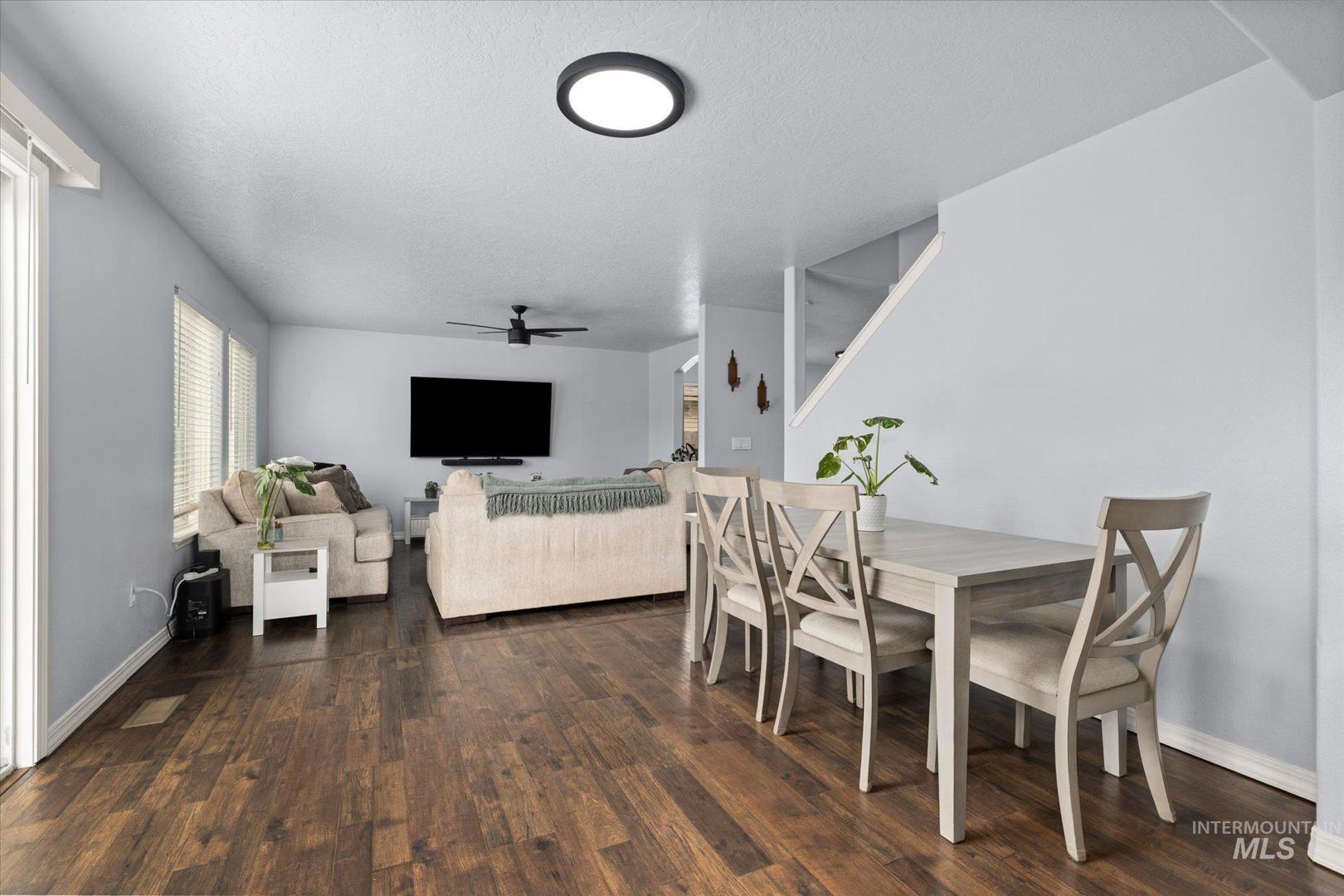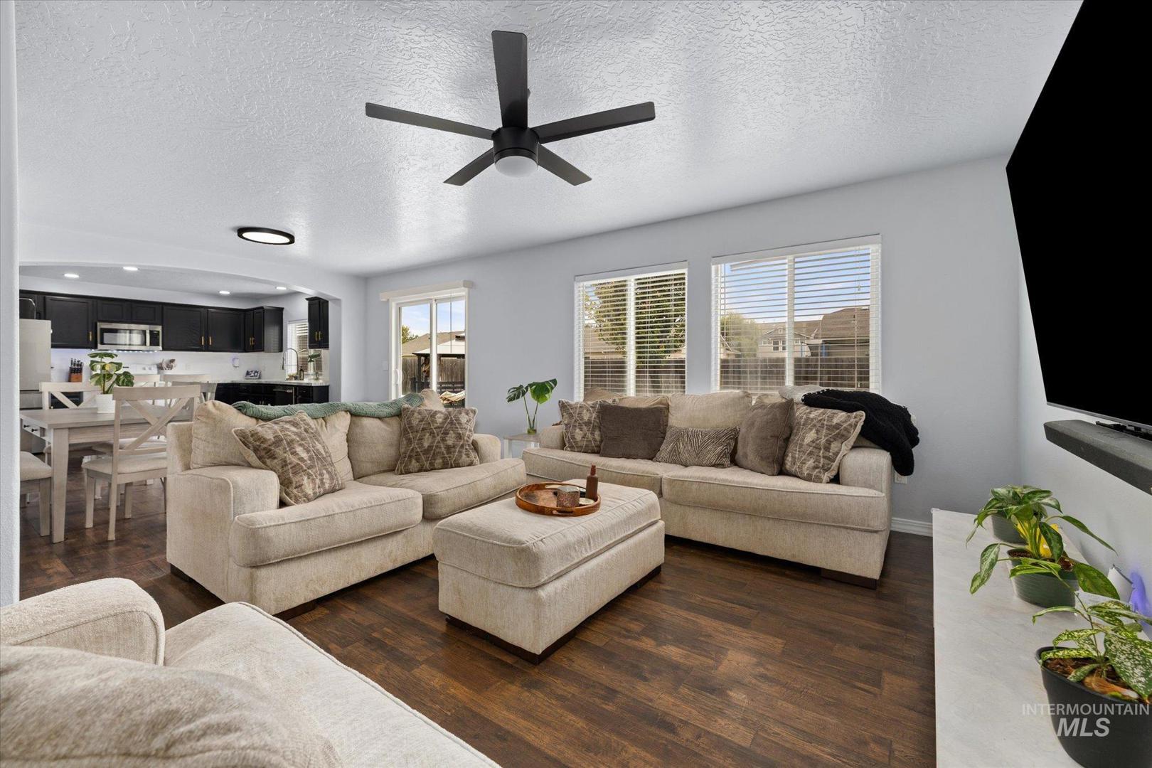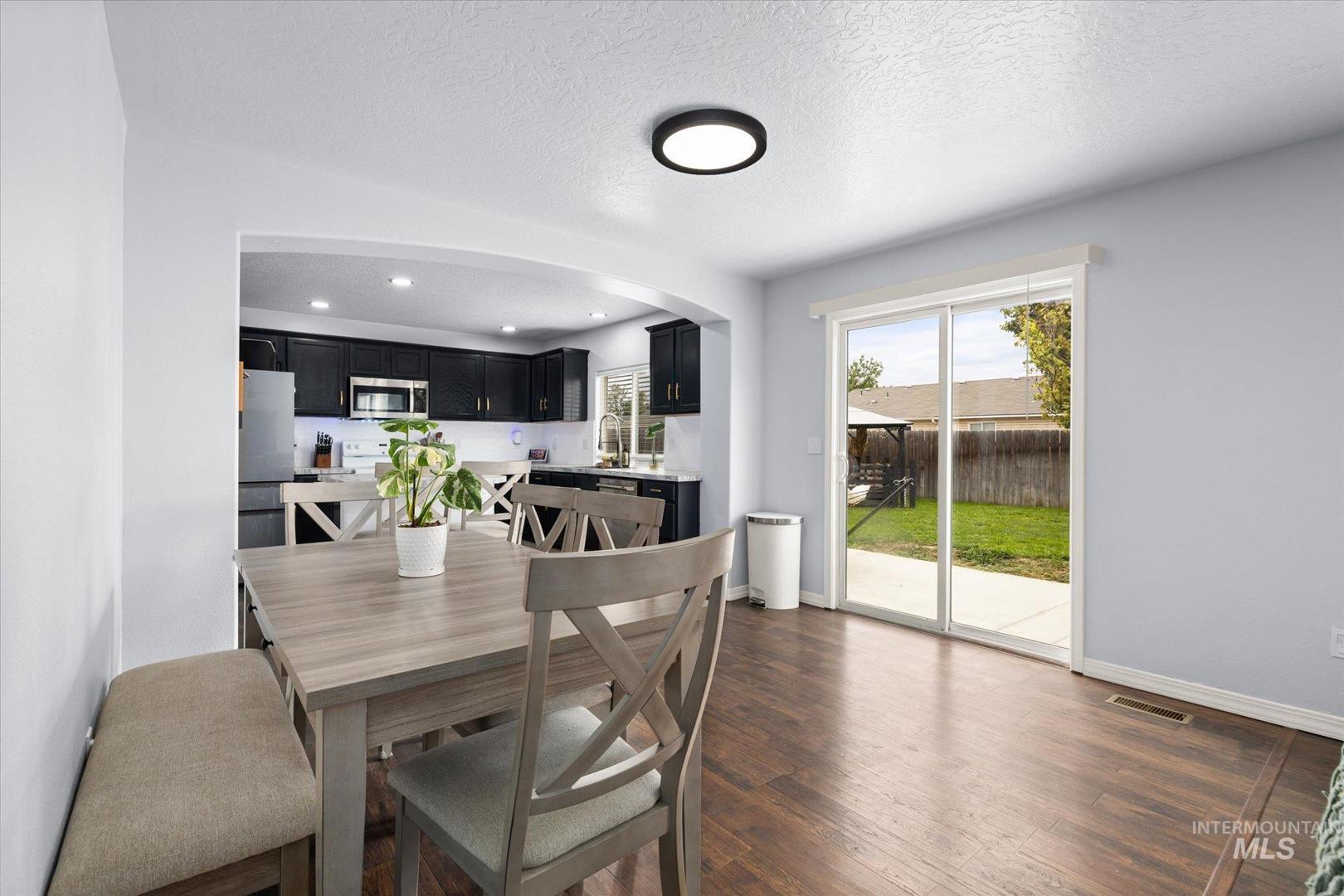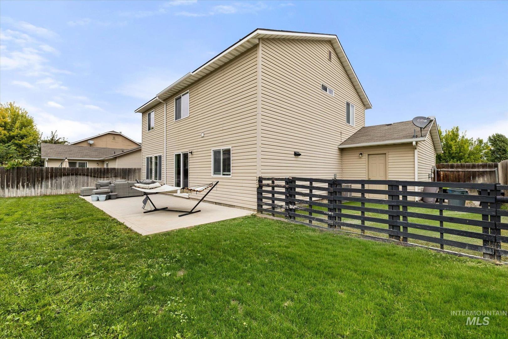 This 4 bedroom, 2.5 bath home is better than new with thoughtful updates throughout. The main level features newer luxury vinyl plank floors and an open design that connects the kitchen, dining, and living areas. The kitchen flows into the living space, creating a practical layout for daily routines and gatherings. Upstairs offers four bedrooms, including a primary suite with private bath, along with additional rooms for family, guests, or office use. The 3-car garage includes epoxy floors for a clean and durable finish, while recent updates such as a new HVAC system and water heater add long-term value. Outdoors, the fenced backyard includes a gazebo and fire pit—an inviting place to relax with friends or enjoy a quiet evening by the fire. With quick access to Highway 20/26 and I-84, this home allows an easy commute into Meridian and Boise, while being close to schools, shopping, and services. Combining newer finishes, recent system upgrades, and a functional floor plan, this property is move-in ready!