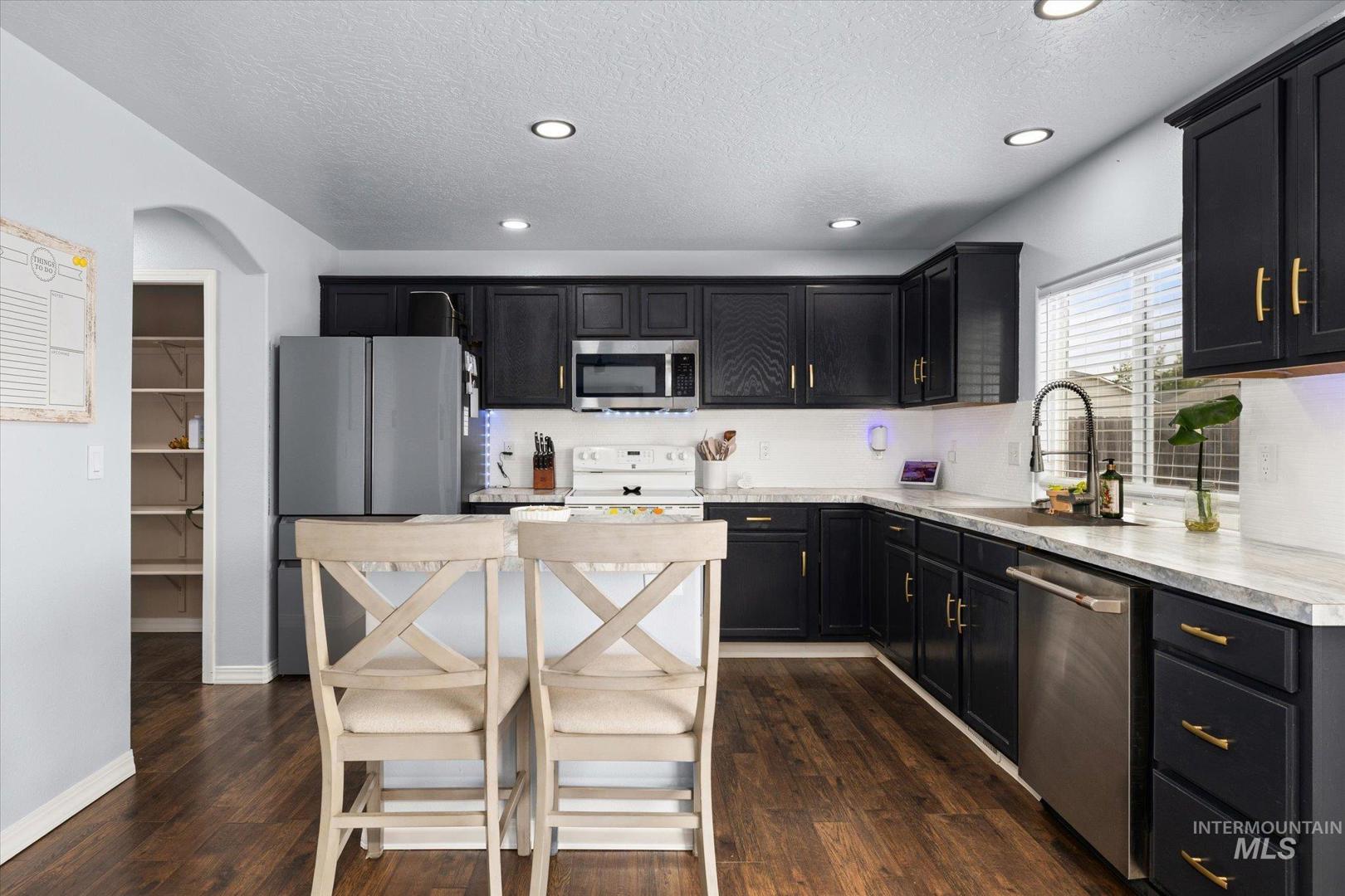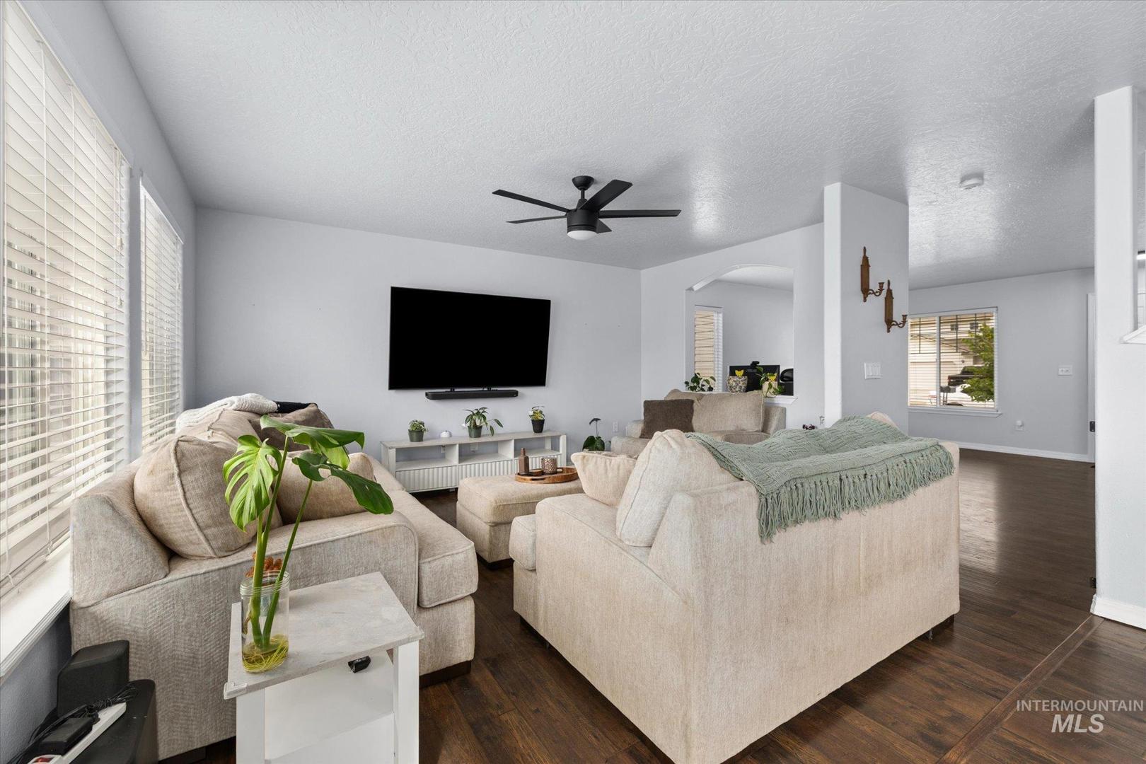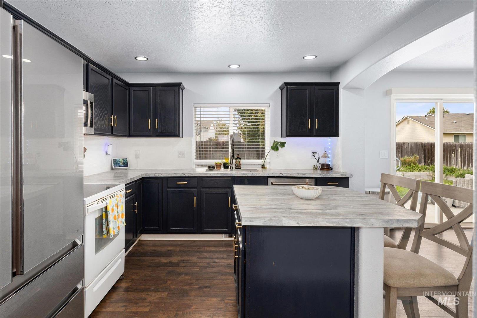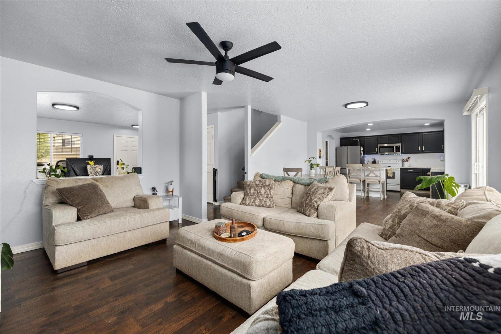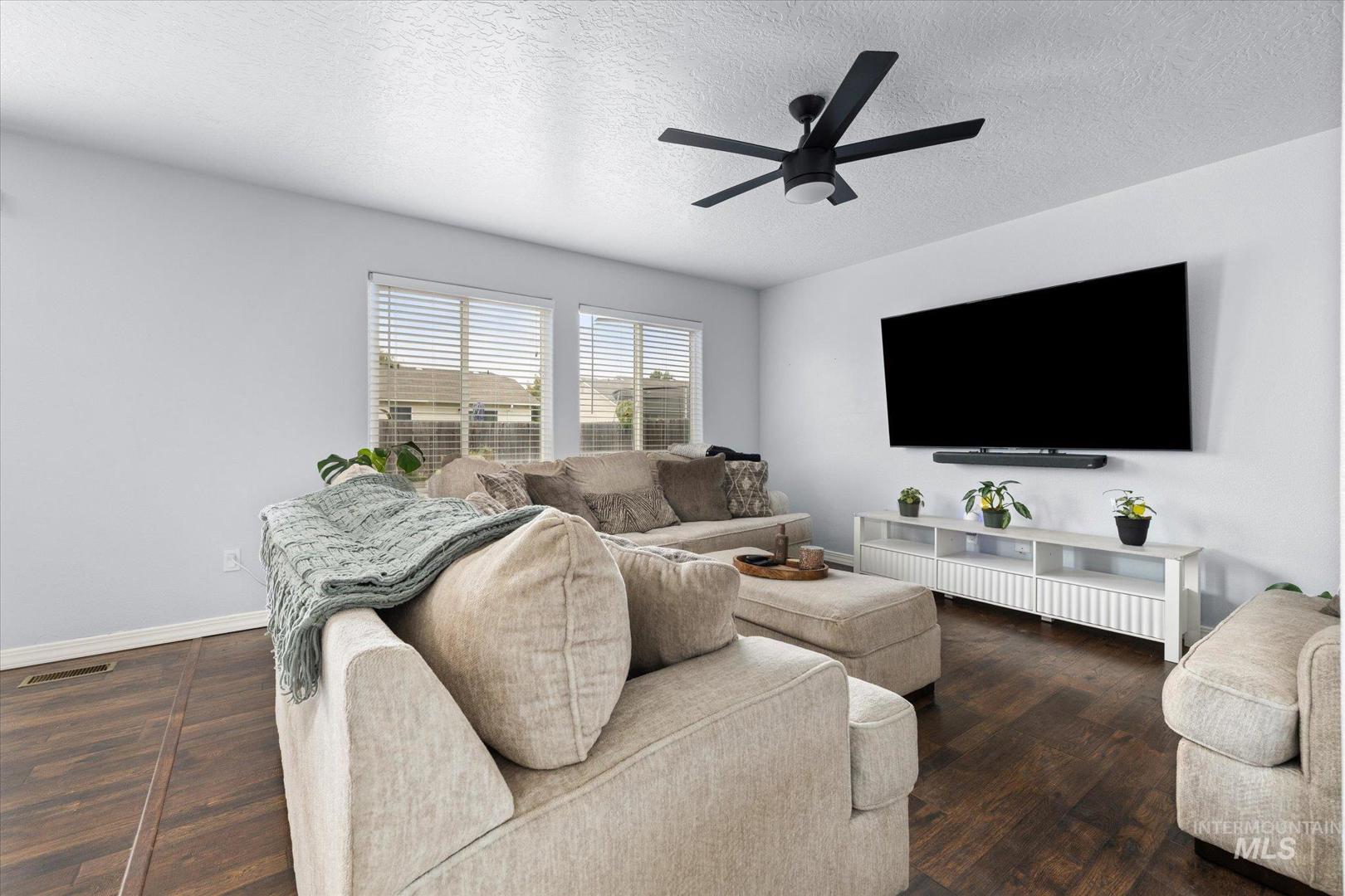 This 4 bedroom, 2.5 bath home is better than new with thoughtful updates throughout. The main level features newer luxury vinyl plank floors and an open design that connects the kitchen, dining, and living areas. The kitchen flows into the living space, creating a practical layout for daily routines and gatherings. Upstairs offers four bedrooms, including a primary suite with private bath, along with additional rooms for family, guests, or office use. The 3-car garage includes epoxy floors for a clean and durable finish, while recent updates such as a new HVAC system and water heater add long-term value. Outdoors, the fenced backyard includes a gazebo and fire pit—an inviting place to relax with friends or enjoy a quiet evening by the fire. With quick access to Highway 20/26 and I-84, this home allows an easy commute into Meridian and Boise, while being close to schools, shopping, and services. Combining newer finishes, recent system upgrades, and a functional floor plan, this property is move-in ready!