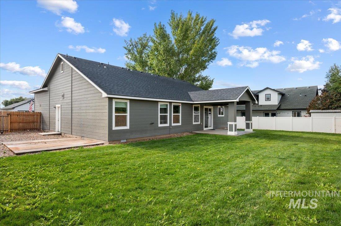 Welcome home! This move-in-ready split-bedroom property features three bedrooms and two bathrooms. Enjoy the naturally lit great room, a kitchen island, and a spacious garage. The yard is fully landscaped, fenced, and equipped with irrigation. There is room for a garden, RV parking and added privacy with no neighbors behind. Located in a small community, this home is within walking distance of parks, schools, restaurants, and churches. You can take a short drive to the Snake River for fishing or head to the Owyhees for hiking.