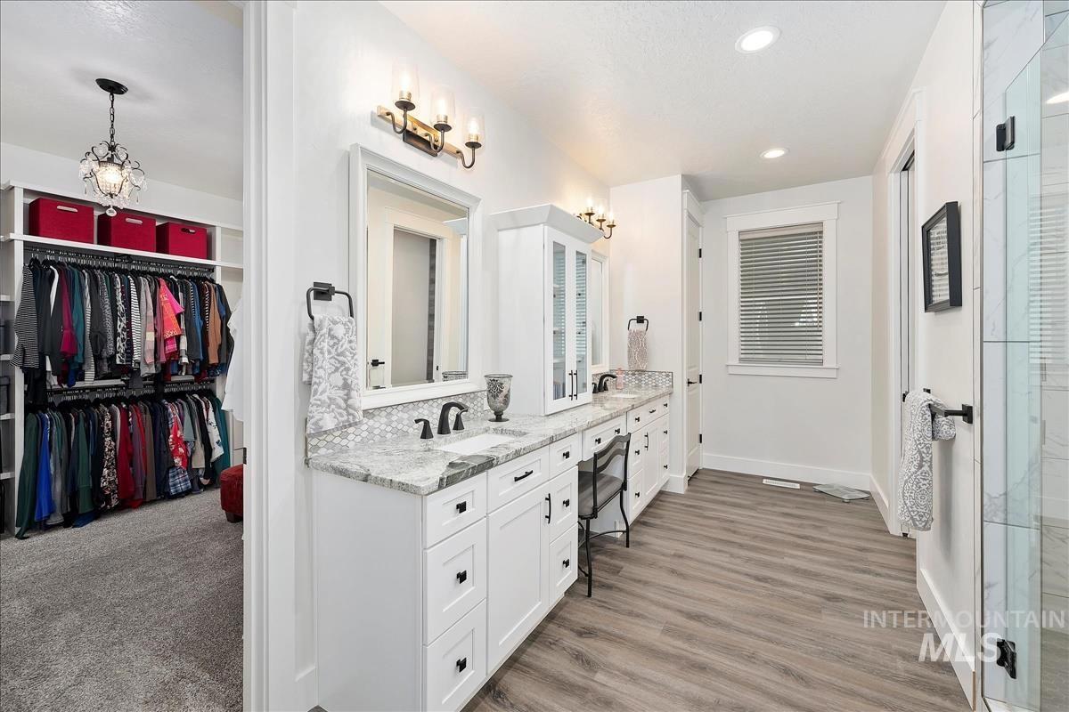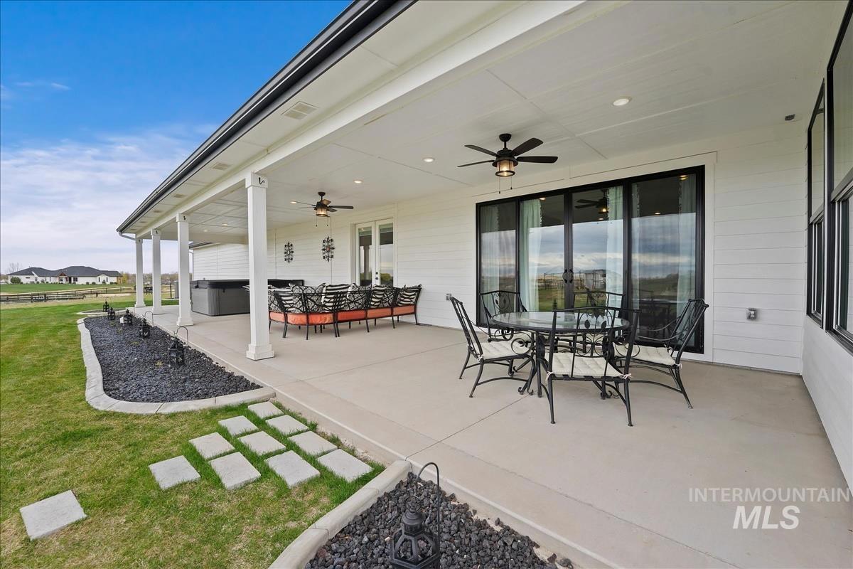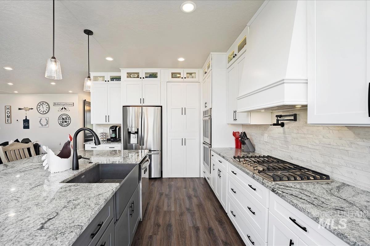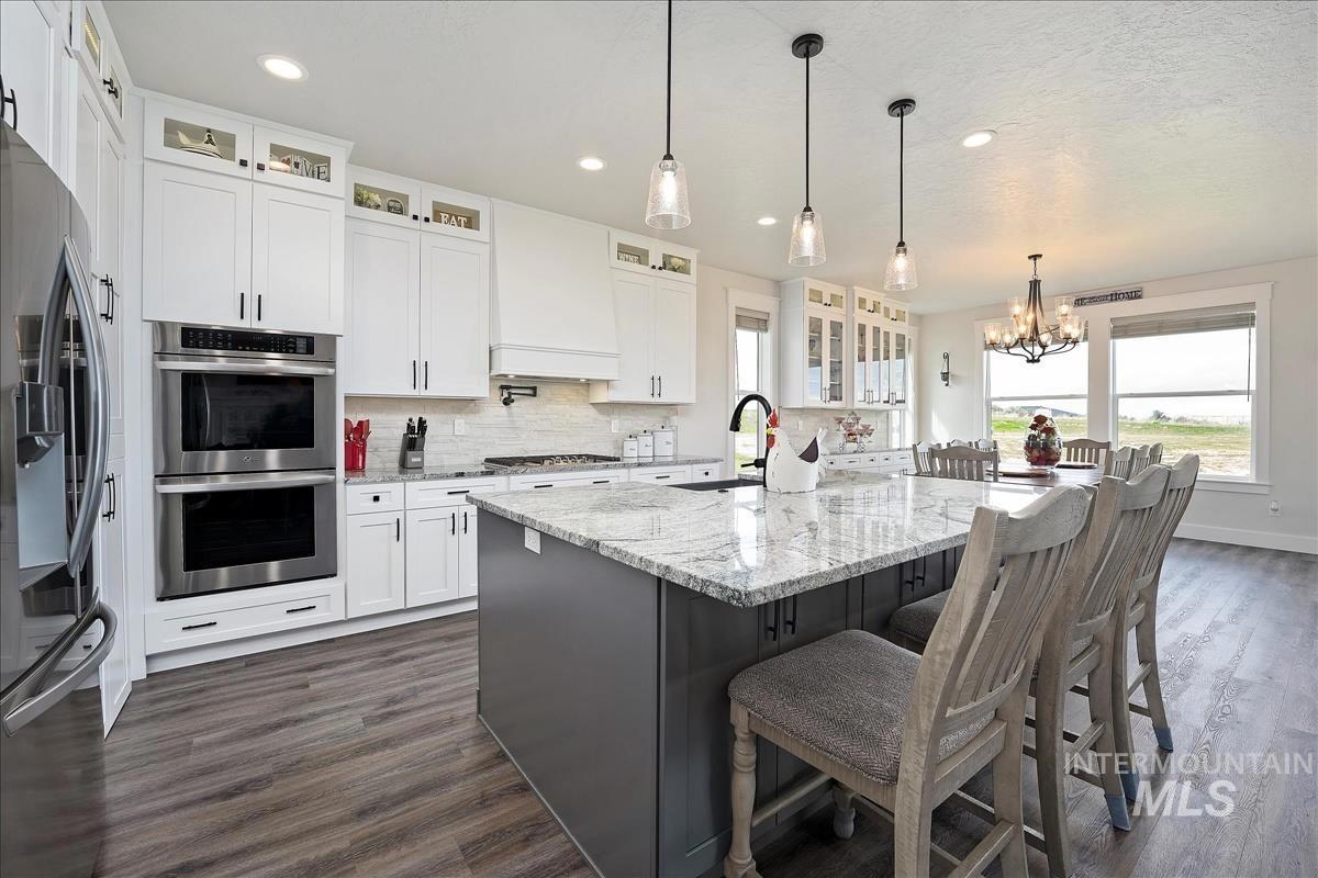 $10k Landscaping credit at closing with a reasonable offer. HORSE PROPERTY POTENTIAL. No HOA. Welcome to this stunning single-level 4-bedroom, 3-bath home nestled on 2.4 acres of beautiful land. This property offers breathtaking panoramic views and plenty of space for outdoor entertainment, perfect for enjoying the natural beauty that surrounds you. The home features an open floor plan with a gourmet kitchen, ideal for both cooking and entertaining, complete with high-end finishes, modern appliances and a hidden walk in pantry. Enjoy the dining room which features built in China Cabinet. The Master suite has a spa like bathroom with a beautiful closet/dressing room with crystal chandeliers. In addition to the spacious bedrooms, there’s a versatile bunk/bonus room, perfect for guests or a play area. Whether you`re hosting family gatherings or relaxing in solitude, this home provides a perfect blend of comfort and luxury.