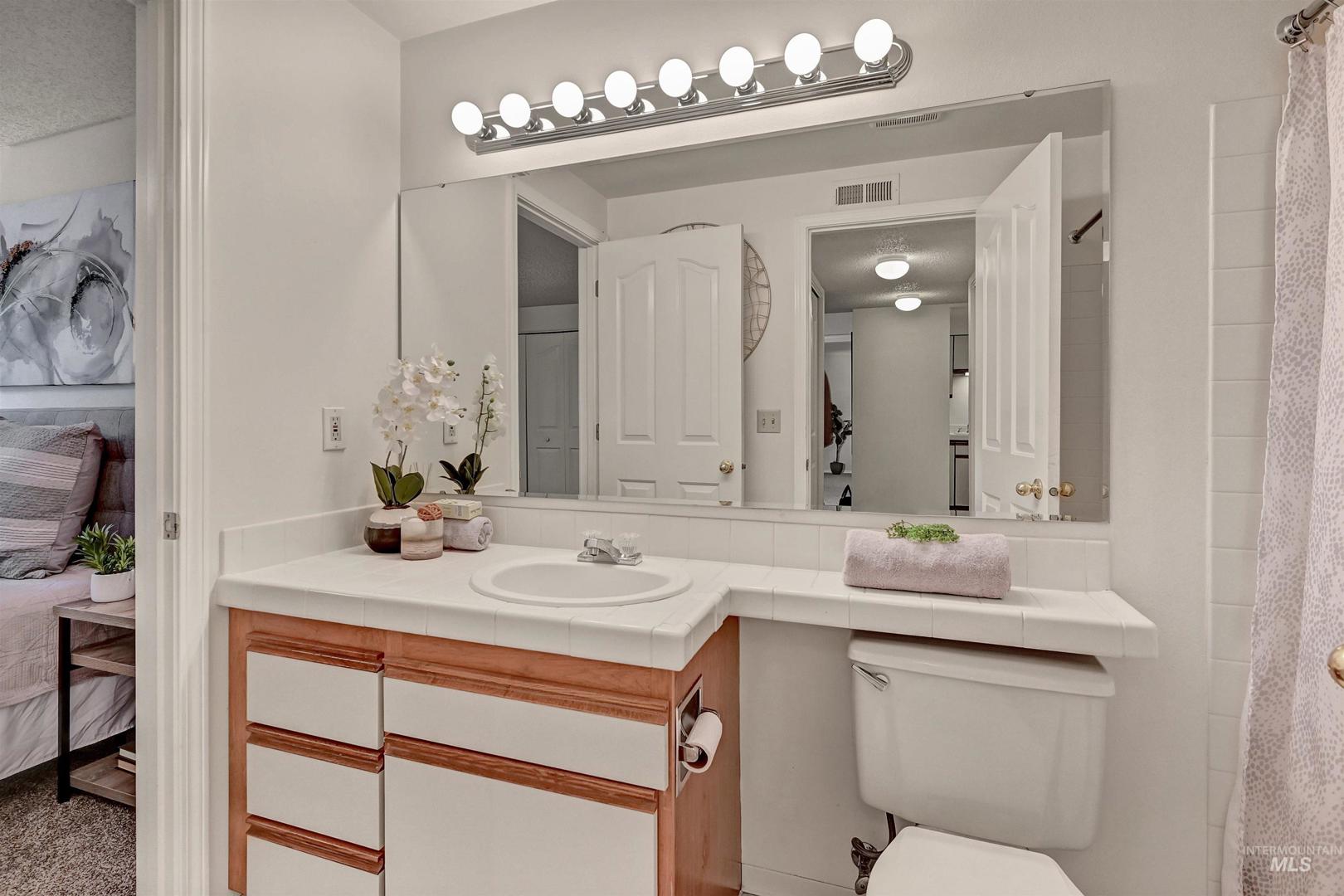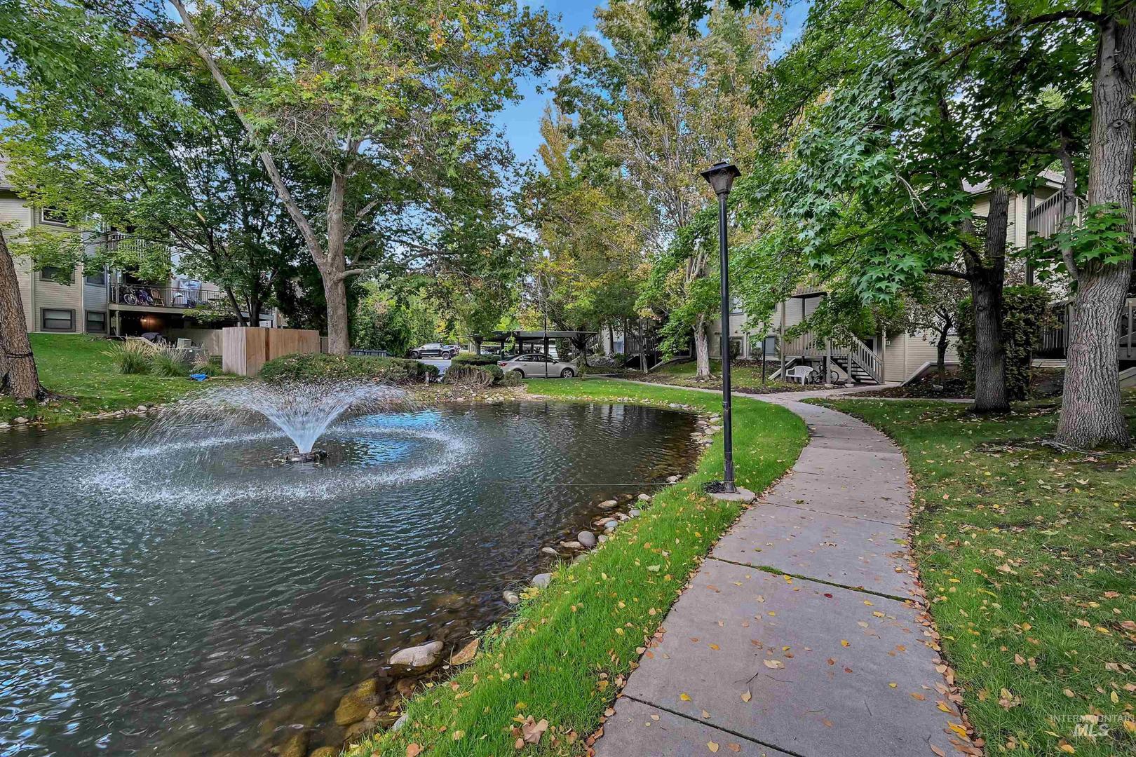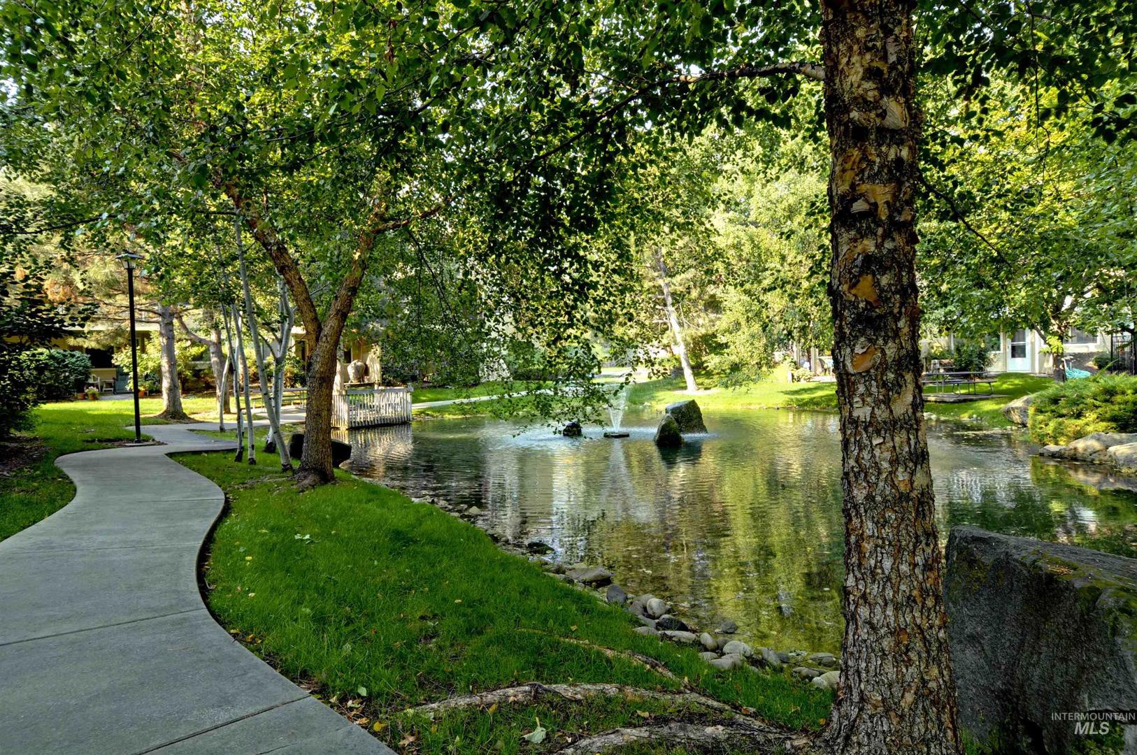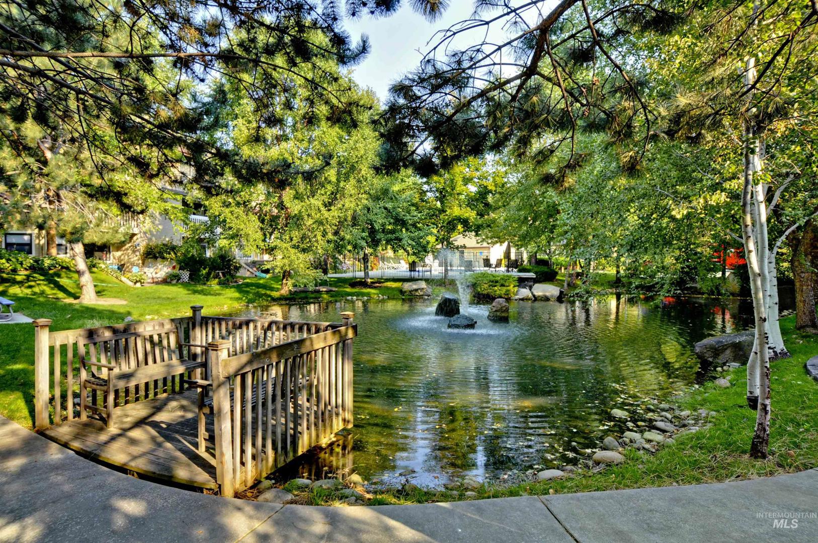 Enjoy single-level condo living in the heart of SE Boise! This inviting second-floor end unit welcomes you with the peaceful sounds of a pond and fountain just steps from your front door. Inside, you’ll find new carpet and LVP flooring in the kitchen, plus a thoughtful layout designed for comfort. The primary suite features a walk-in closet and private en suite bath. A generous second bedroom connects with a Jack & Jill bath, creating an ideal setup for a second suite or guest accommodations. The spacious outdoor deck includes a storage locker for added convenience. Located near the clubhouse, this community offers extensive amenities: pool, spa, clubhouse with sauna and fitness center, walking paths, and beautifully maintained landscaping. HOA dues also include sewer, water, trash, exterior maintenance, and even internet service (through December 2026).Come experience this highly sought-after SE Boise location has to offer!