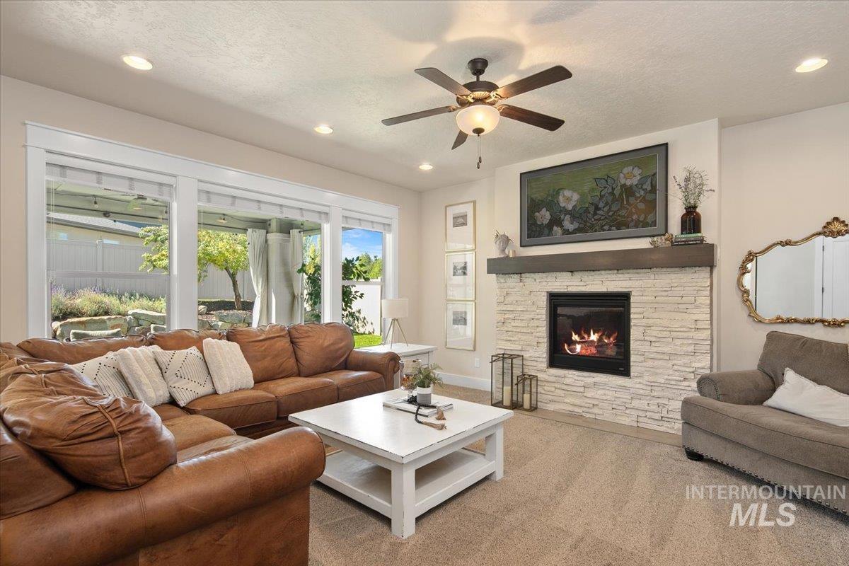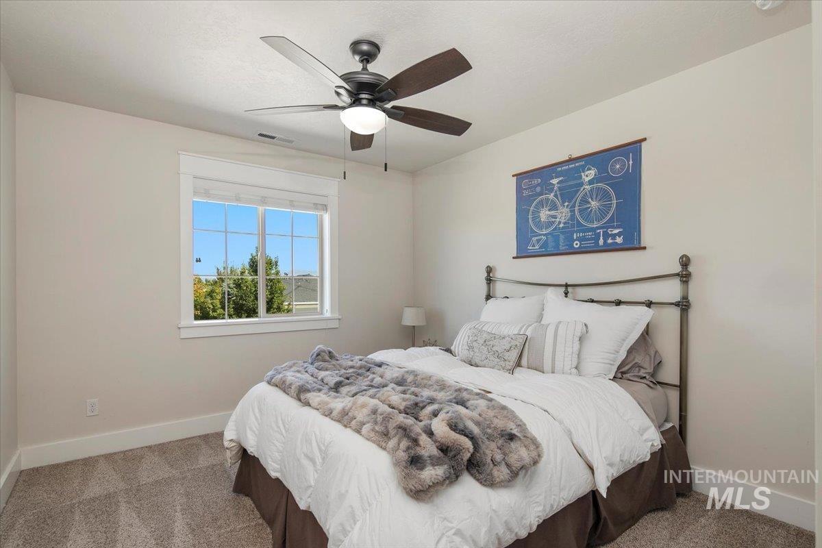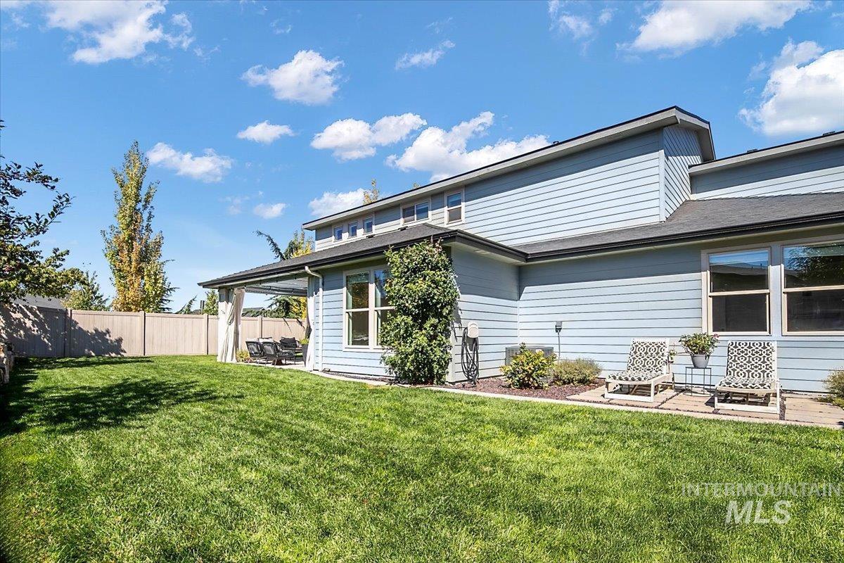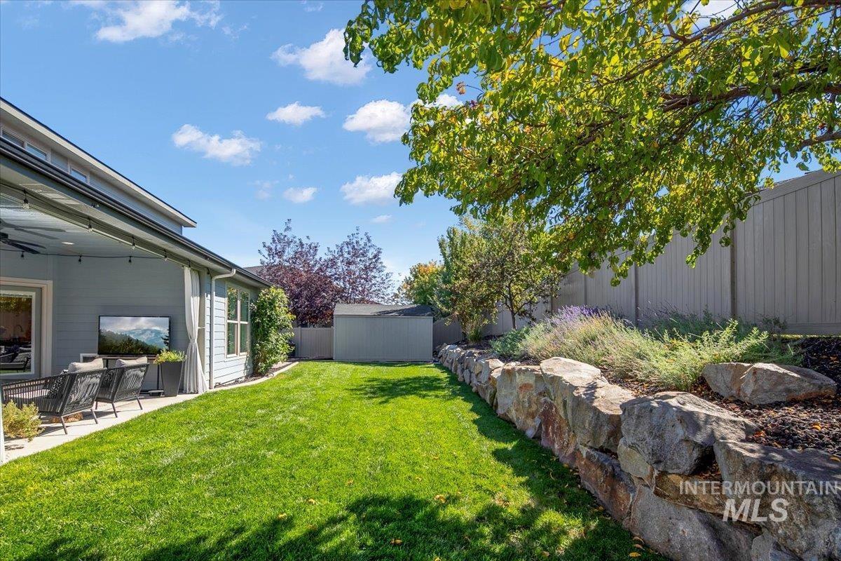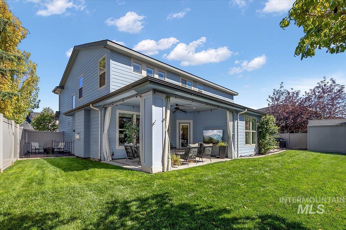 Enjoy the best of location and lifestyle — quiet streets, highly regarded schools, effortless access to downtown Meridian and the freeway. Built by Eaglewood Custom Homes, this property showcases quality craftsmanship and thoughtful design, offering 5 bedrooms plus an office (easily a 6th bedroom), a spacious bonus room, and open living areas filled with natural light. The floor plan is designed for comfort and function, featuring a huge master closet with direct access to the laundry room, a master bath with a tiled walk-in shower and abundant natural light. Perfect for large families or those who love to host, the home offers versatile living spaces: a downstairs mini-master for guests or multigenerational living, a bonus room ideal for gaming or a home theater, and an office that can easily serve as a guest suite. Step outside to a covered patio with a ceiling fan, privacy curtains, and a gas fire pit—perfect for year-round relaxing or entertaining. The yard features mature landscaping, fruit trees, and a garden with raised planters. The desirable corner lot provides extra space, privacy, and beautiful curb appeal, while an oversized 3-car garage and extra large storage shed give ample room for hobbies and tools. The community offers walking paths, parks and a pool. Discovery Park is just minutes away - making this not just a home but a lifestyle.