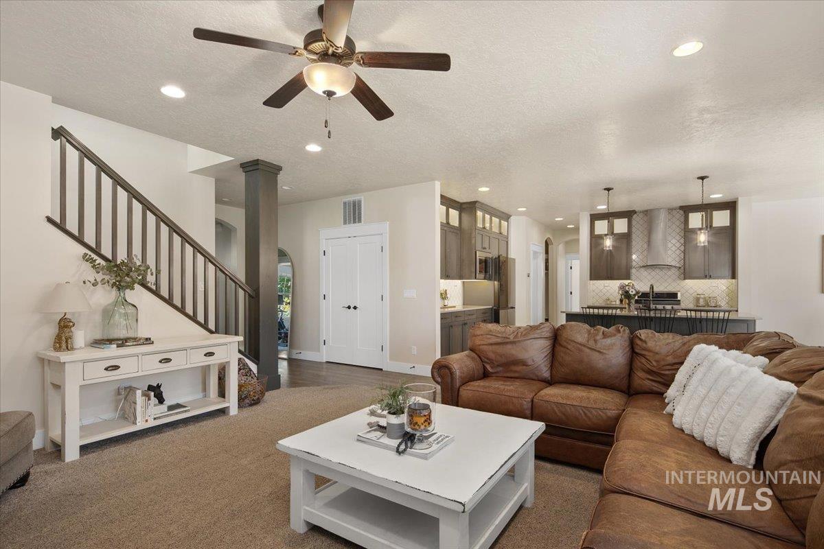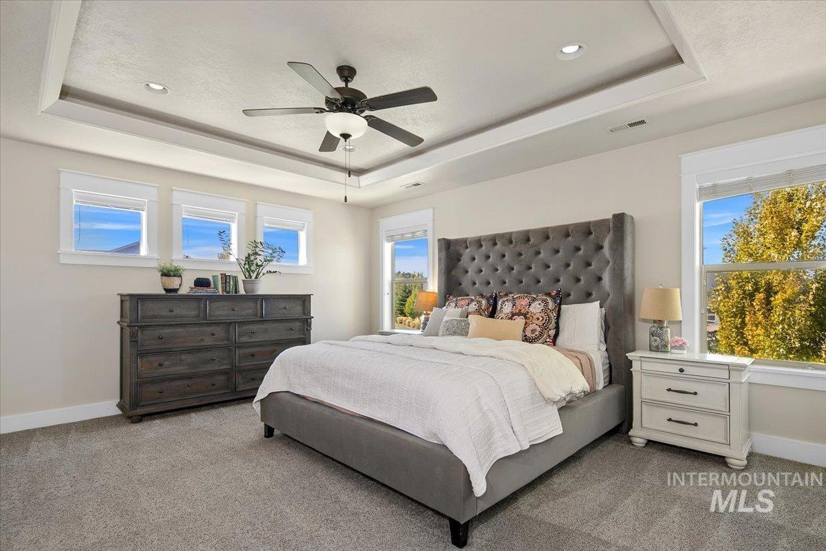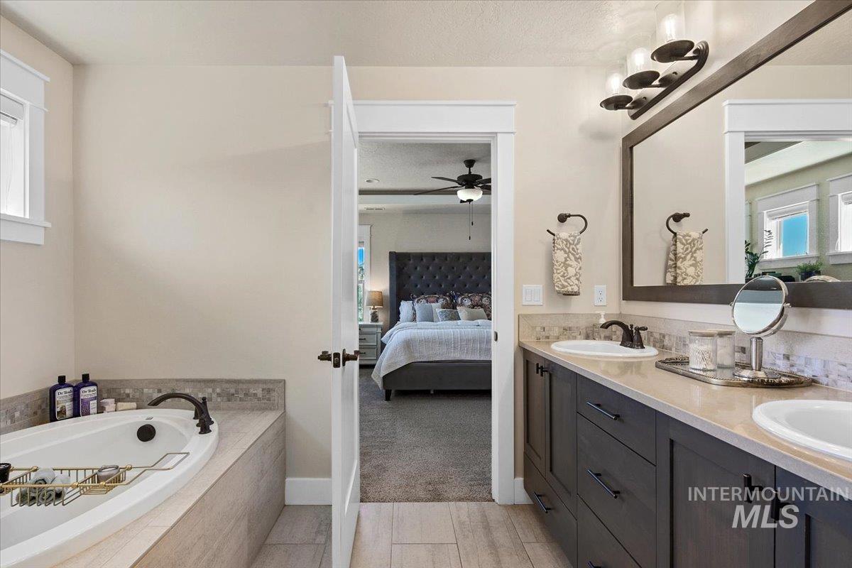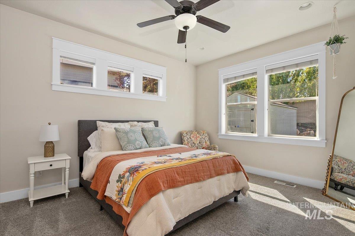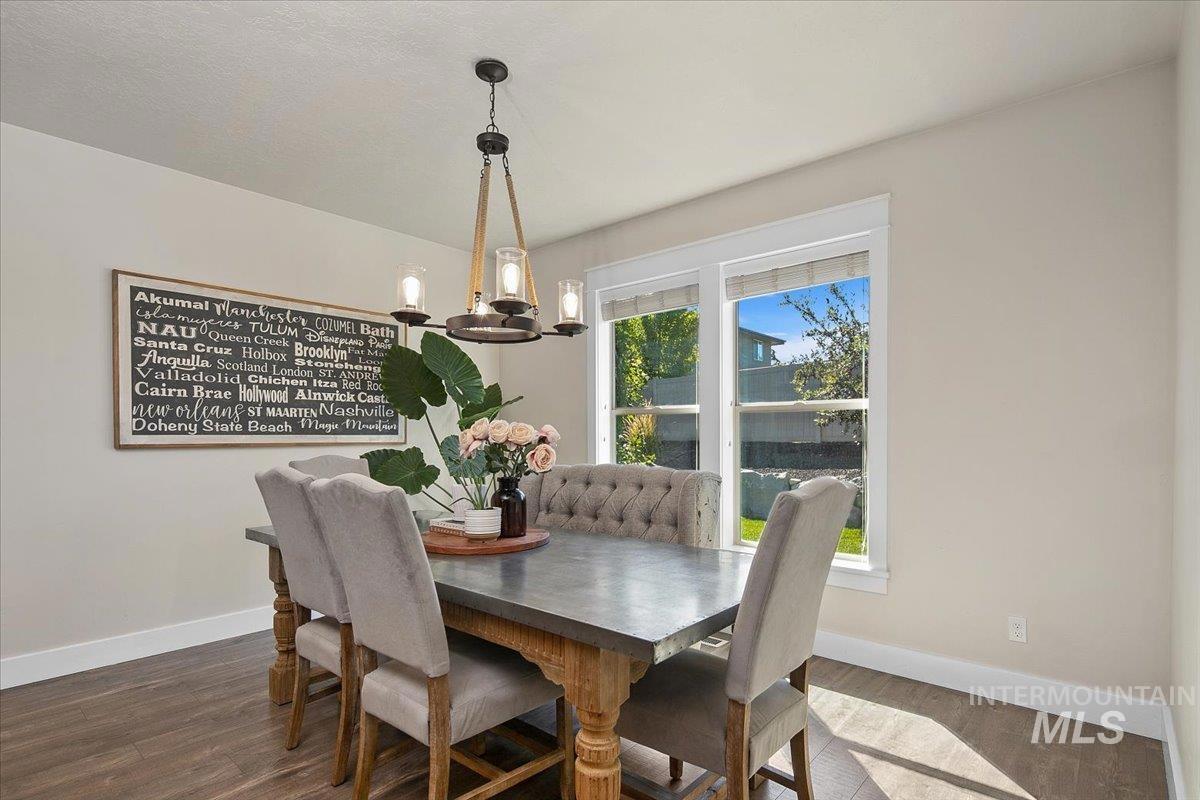Enjoy the best of location and lifestyle — quiet streets, highly regarded schools, effortless access to downtown Meridian and the freeway. Built by Eaglewood Custom Homes, this property showcases quality craftsmanship and thoughtful design, offering 5 bedrooms plus an office (easily a 6th bedroom), a spacious bonus room, and open living areas filled with natural light. The floor plan is designed for comfort and function, featuring a huge master closet with direct access to the laundry room, a master bath with a tiled walk-in shower and abundant natural light. Perfect for large families or those who love to host, the home offers versatile living spaces: a downstairs mini-master for guests or multigenerational living, a bonus room ideal for gaming or a home theater, and an office that can easily serve as a guest suite. Step outside to a covered patio with a ceiling fan, privacy curtains, and a gas fire pit—perfect for year-round relaxing or entertaining. The yard features mature landscaping, fruit trees, and a garden with raised planters. The desirable corner lot provides extra space, privacy, and beautiful curb appeal, while an oversized 3-car garage and extra large storage shed give ample room for hobbies and tools. The community offers walking paths, parks and a pool. Discovery Park is just minutes away - making this not just a home but a lifestyle.