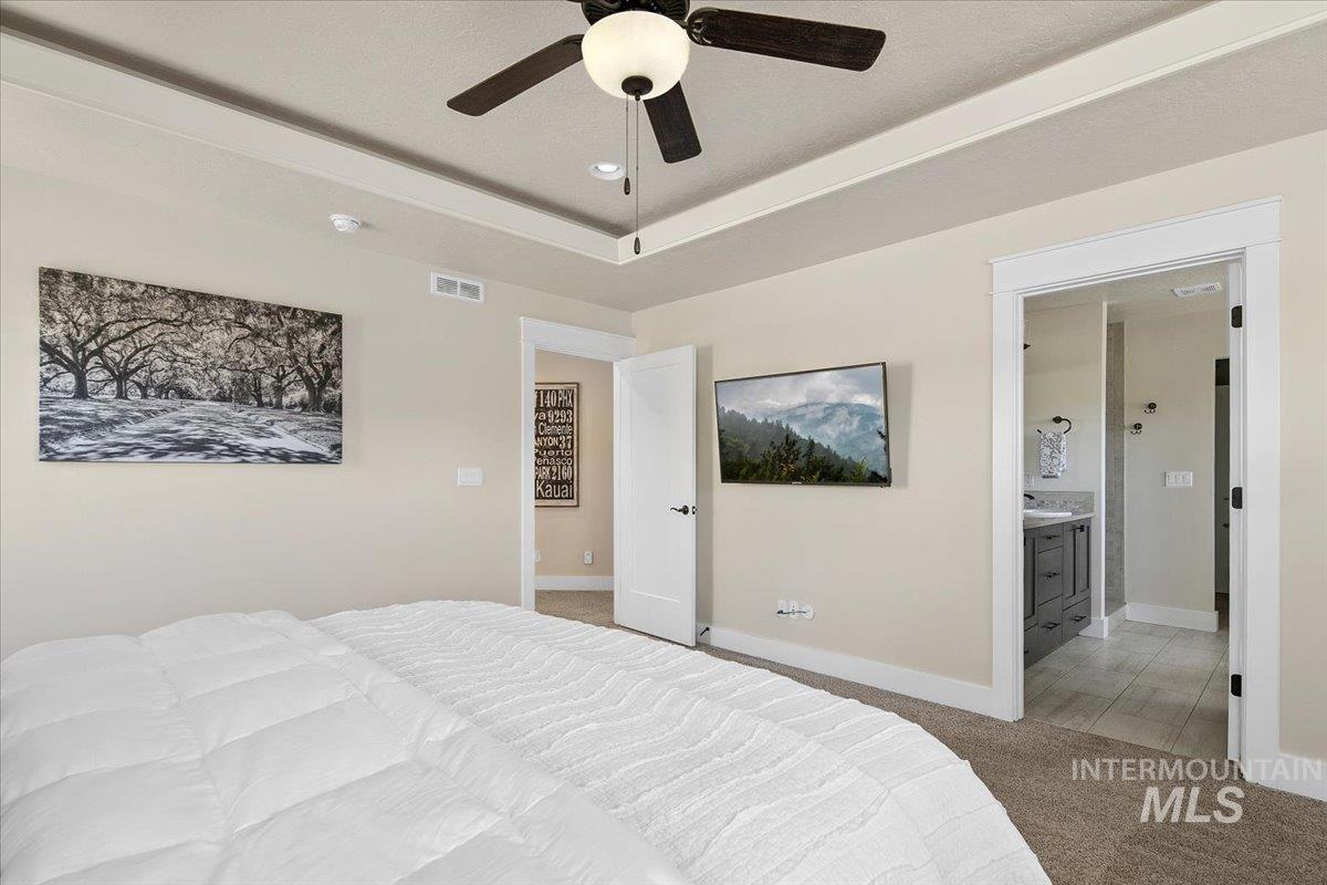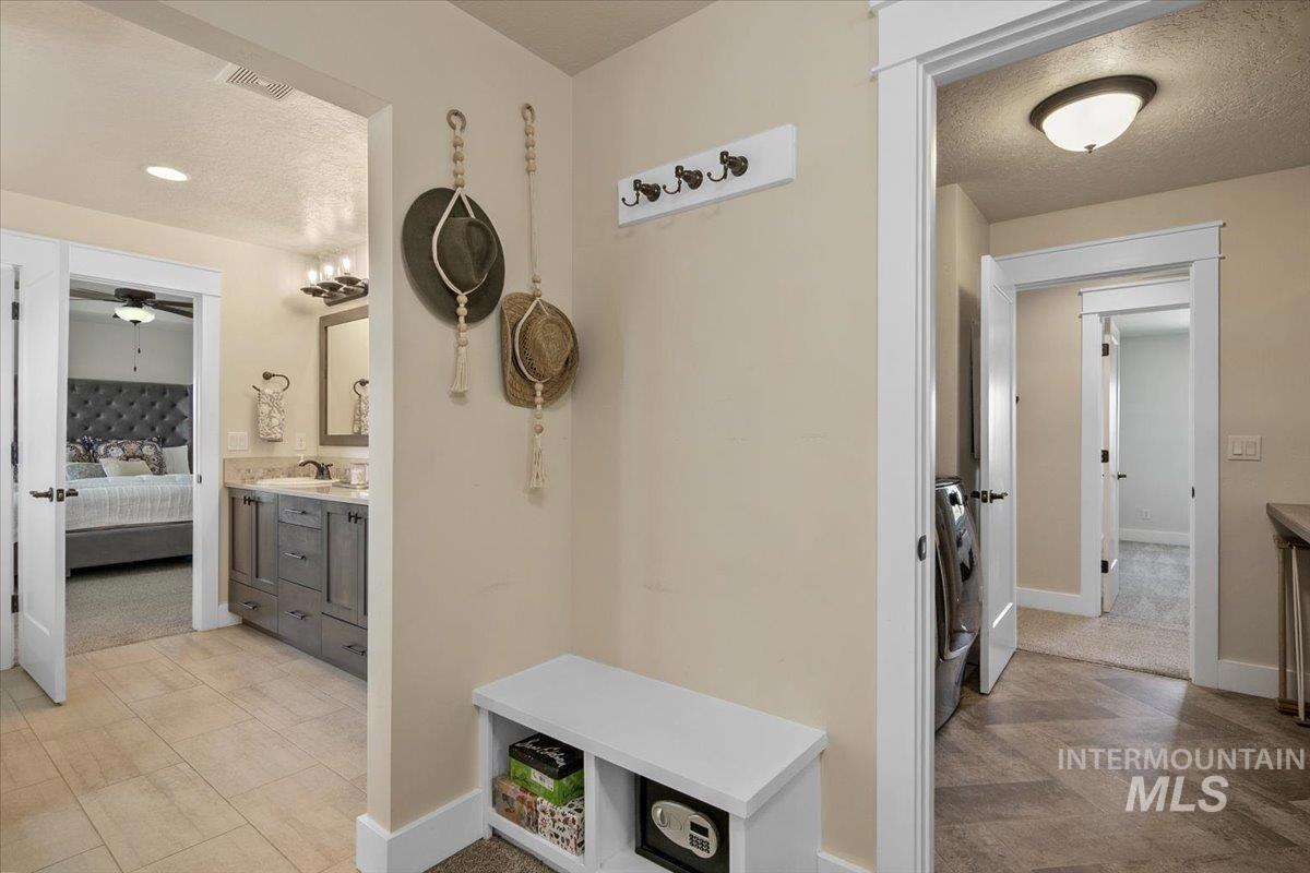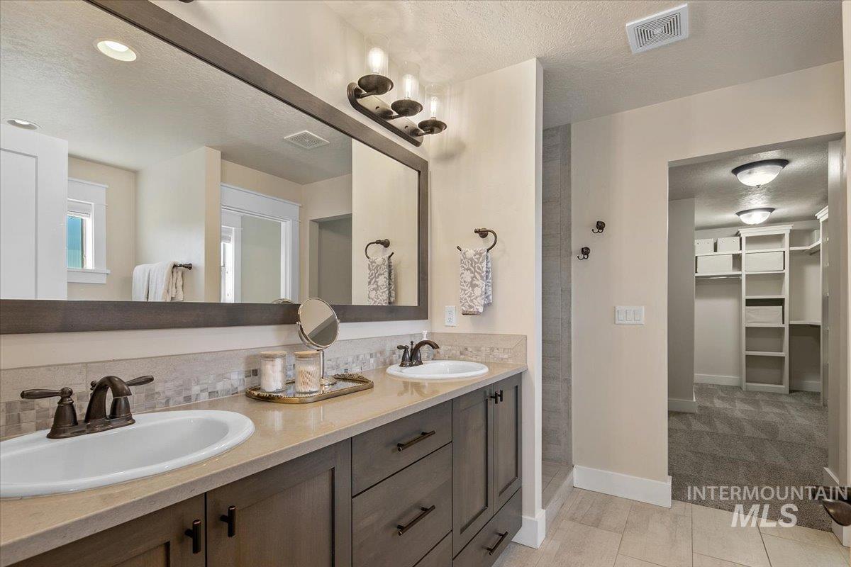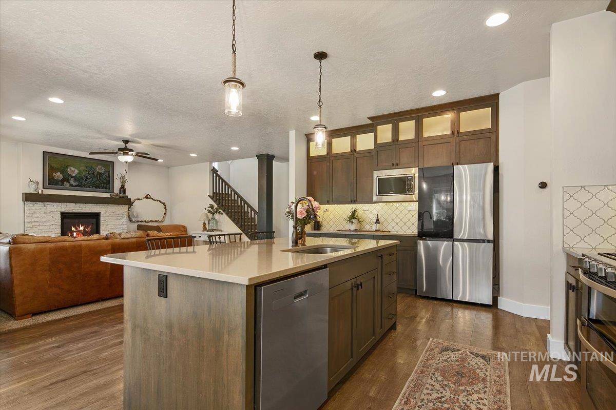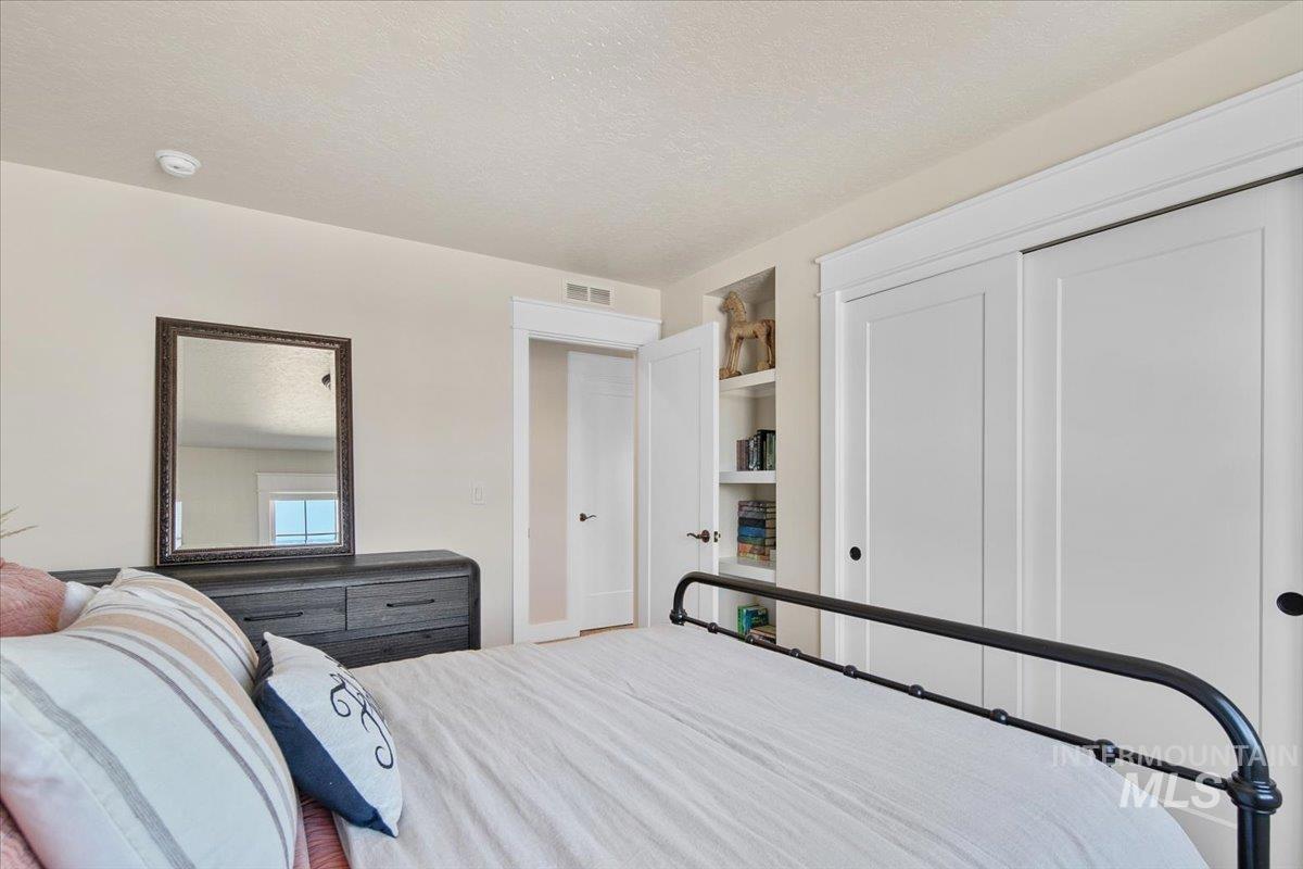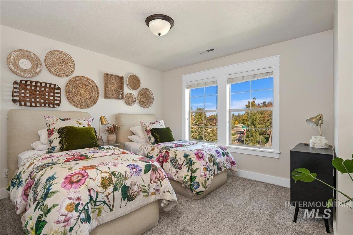 Enjoy the best of location and lifestyle — quiet streets, highly regarded schools, effortless access to downtown Meridian and the freeway. Built by Eaglewood Custom Homes, this property showcases quality craftsmanship and thoughtful design, offering 5 bedrooms plus an office (easily a 6th bedroom), a spacious bonus room, and open living areas filled with natural light. The floor plan is designed for comfort and function, featuring a huge master closet with direct access to the laundry room, a master bath with a tiled walk-in shower and abundant natural light. Perfect for large families or those who love to host, the home offers versatile living spaces: a downstairs mini-master for guests or multigenerational living, a bonus room ideal for gaming or a home theater, and an office that can easily serve as a guest suite. Step outside to a covered patio with a ceiling fan, privacy curtains, and a gas fire pit—perfect for year-round relaxing or entertaining. The yard features mature landscaping, fruit trees, and a garden with raised planters. The desirable corner lot provides extra space, privacy, and beautiful curb appeal, while an oversized 3-car garage and extra large storage shed give ample room for hobbies and tools. The community offers walking paths, parks and a pool. Discovery Park is just minutes away - making this not just a home but a lifestyle.