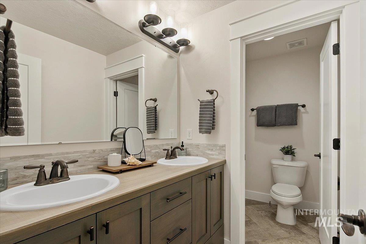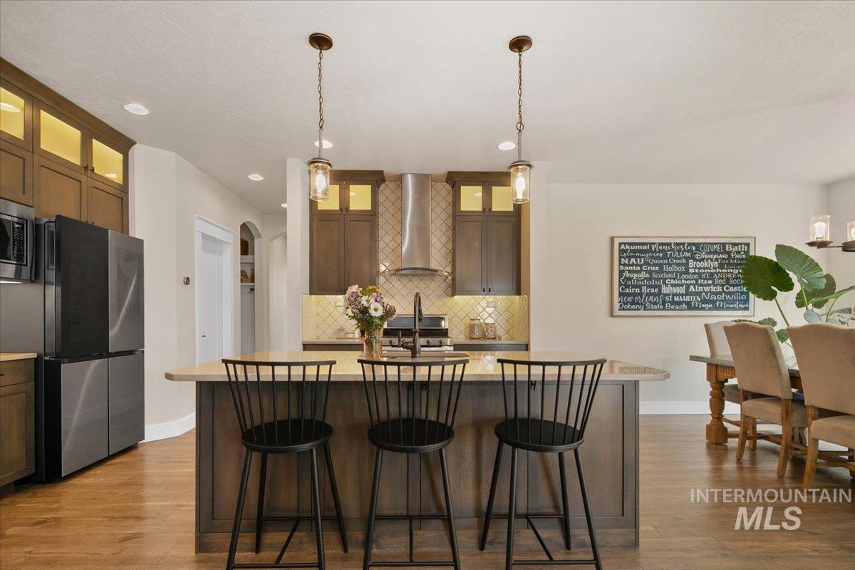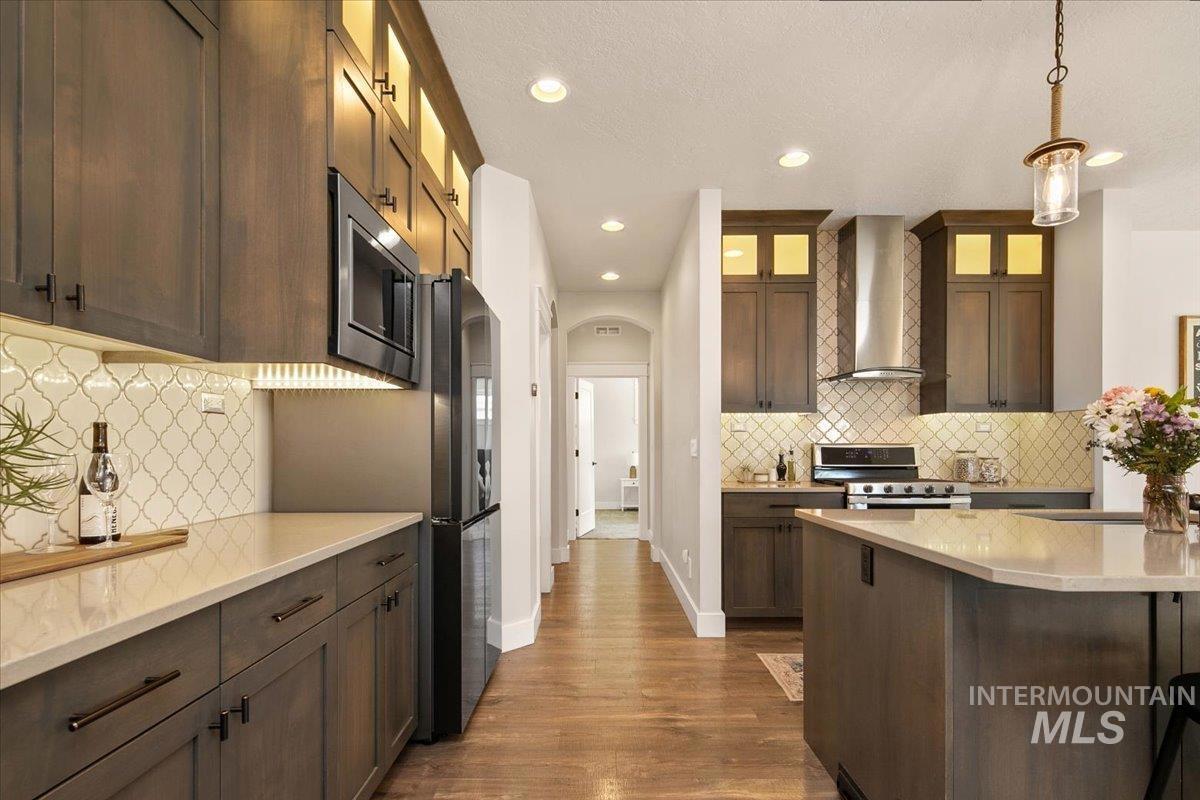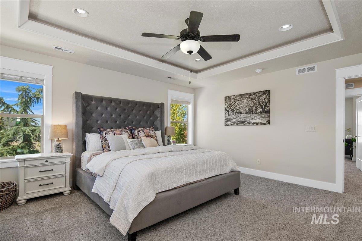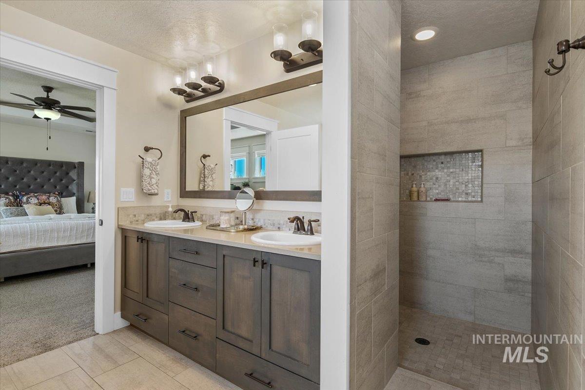 Enjoy the best of location and lifestyle — quiet streets, highly regarded schools, effortless access to downtown Meridian and the freeway. Built by Eaglewood Custom Homes, this property showcases quality craftsmanship and thoughtful design, offering 5 bedrooms plus an office (easily a 6th bedroom), a spacious bonus room, and open living areas filled with natural light. The floor plan is designed for comfort and function, featuring a huge master closet with direct access to the laundry room, a master bath with a tiled walk-in shower and abundant natural light. Perfect for large families or those who love to host, the home offers versatile living spaces: a downstairs mini-master for guests or multigenerational living, a bonus room ideal for gaming or a home theater, and an office that can easily serve as a guest suite. Step outside to a covered patio with a ceiling fan, privacy curtains, and a gas fire pit—perfect for year-round relaxing or entertaining. The yard features mature landscaping, fruit trees, and a garden with raised planters. The desirable corner lot provides extra space, privacy, and beautiful curb appeal, while an oversized 3-car garage and extra large storage shed give ample room for hobbies and tools. The community offers walking paths, parks and a pool. Discovery Park is just minutes away - making this not just a home but a lifestyle.