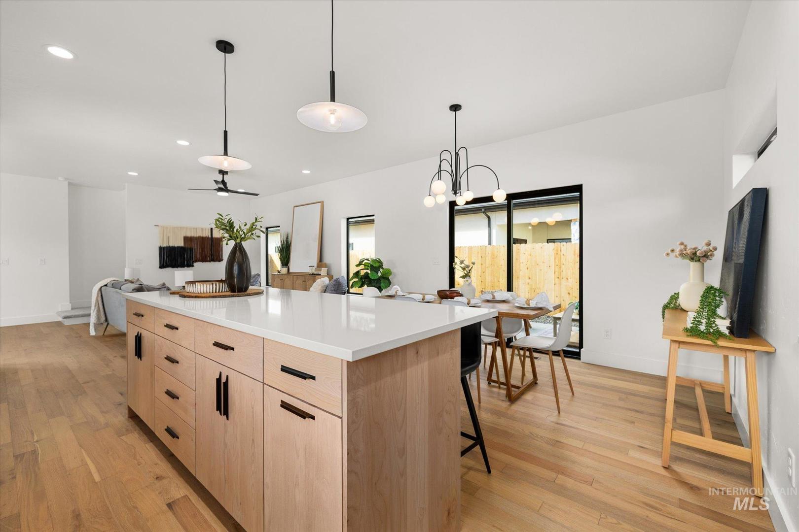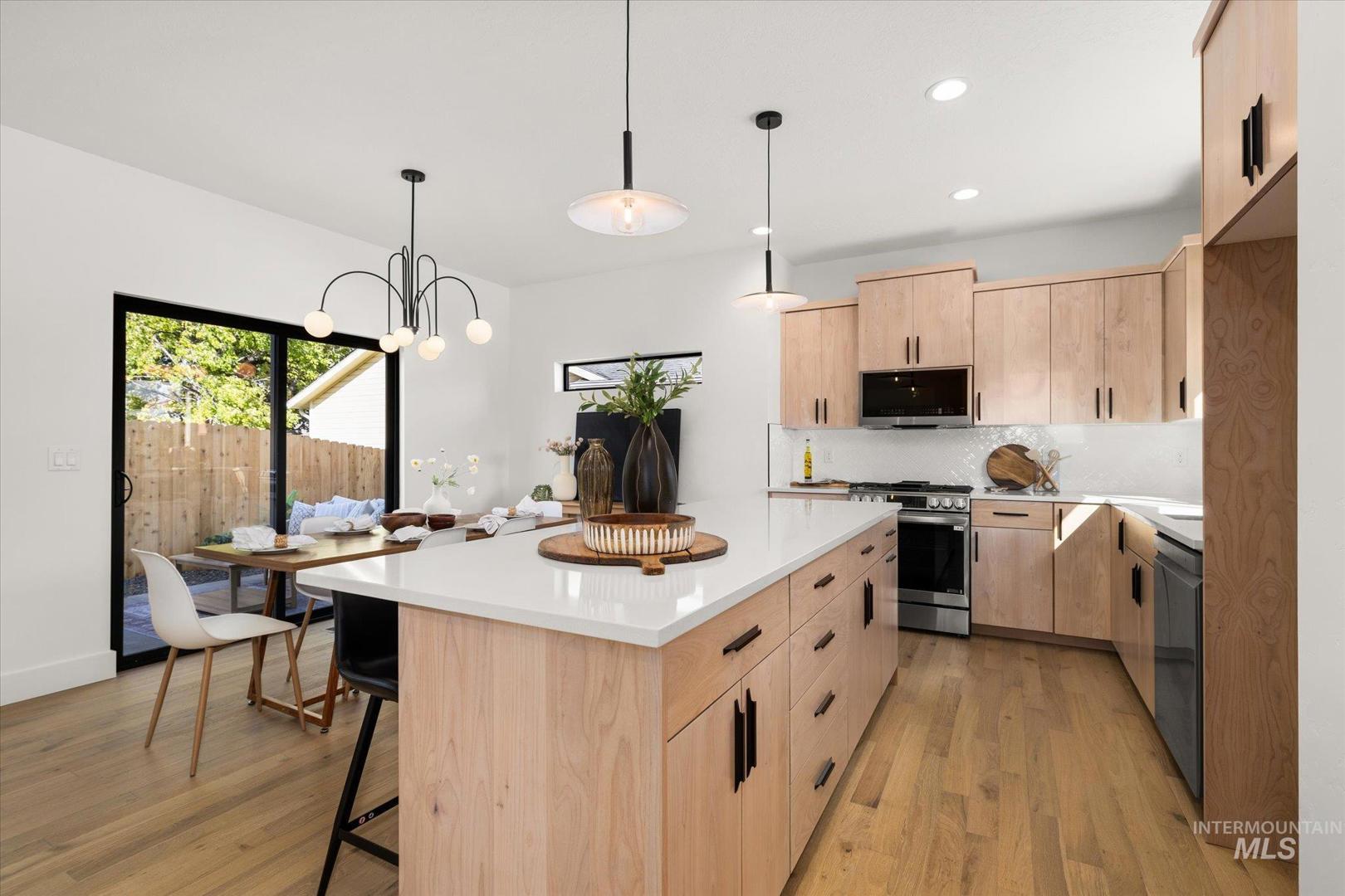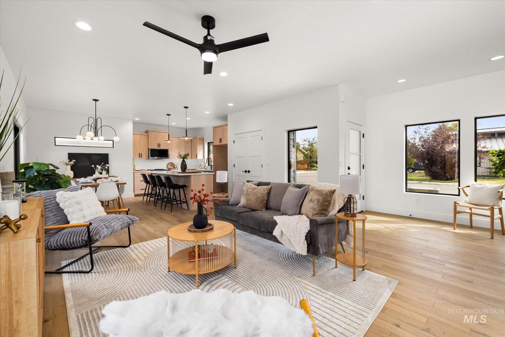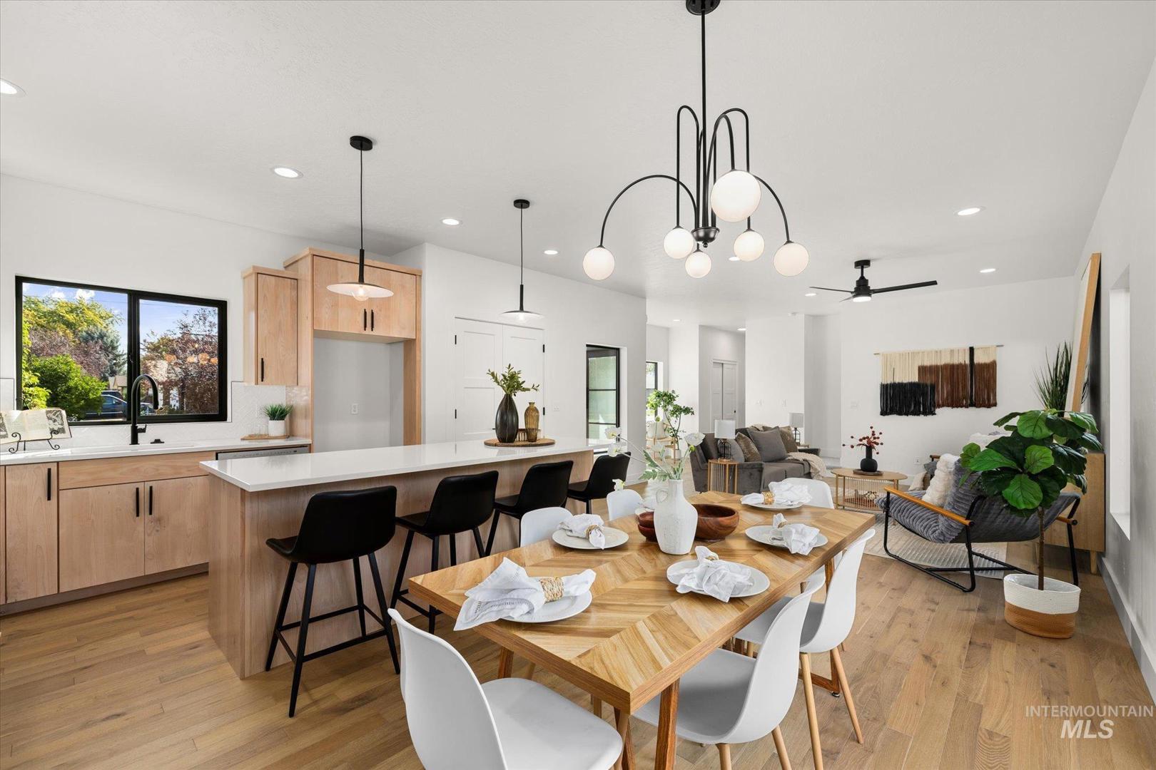 This innovative new home, uniquely designed by Kouba Homes, showcases the perfect blend of form and function. Contemporary design, combined with attention to detail and a highly efficient layout, create a special opportunity to own a one-of-a-kind home at an unheard of price point for new construction in the center of Boise. The sweeping great room flows into an expansive kitchen, boasting Euro-cabinetry, an oversized island, quartz countertops, stylish tilework & pantry. Enjoy the cozy & private backyard fully fenced yard with patio in a mature neighborhood. A fully fenced & landscaped yard is invitingly accessed via the oversized sliding glass door off a dedicated dining area. This is no cookie cutter, offering generously sized bedrooms and an airy loft with soaring ceilings, & expansive windows. Engineered hardwoods throughout living areas, & handpicked lighting & tile by a local designer. Tucked away in a private setting (no HOA!), this location could not be more convenient, walkable to schools and parks.