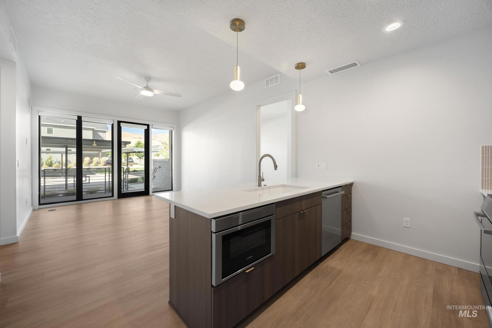 Open House: Thursday, October 16 & Saturday, October 18, from 12-3pm! Welcome to Loft 104, a stunning corner-unit retreat in the heart of Harris Ranch’s vibrant Stacker building in Boise’s coveted Barber Valley! Embrace a carefree, low-maintenance lifestyle with unparalleled access to Boise’s finest treasures: the Boise River, Greenbelt, Foothills trails, Barber Park, and Lucky Peak. This single-level, main-floor gem offers breathtaking Foothill views and abundant natural light. The expansive primary suite impresses with a ceiling fan, oversized windows, and a spa-inspired en suite bathroom featuring sleek tile floors and a luxurious walk-in tile shower. The open-concept great room, with soaring ceilings and a ceiling fan, flows seamlessly to a private patio—perfect for effortless indoor-outdoor living. The gourmet kitchen dazzles with premium Bosch appliances, including induction cooking and a sleek refrigerator (included!). Additional perks include assigned bike storage, generous closet space, and exclusive community amenities: a sparkling pool, scenic rooftop deck, and inviting clubhouse. Don’t miss your chance to own this rare Boise gem—where modern luxury meets outdoor adventure!