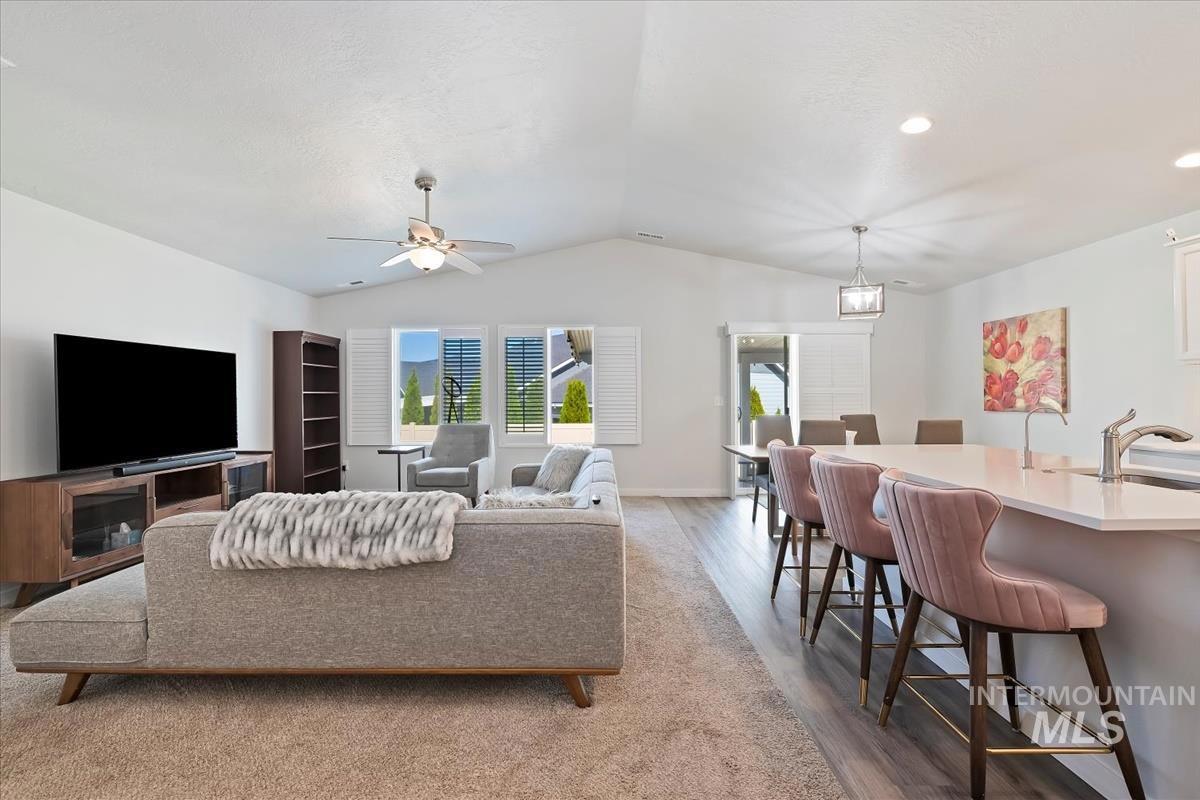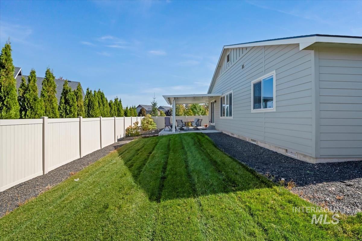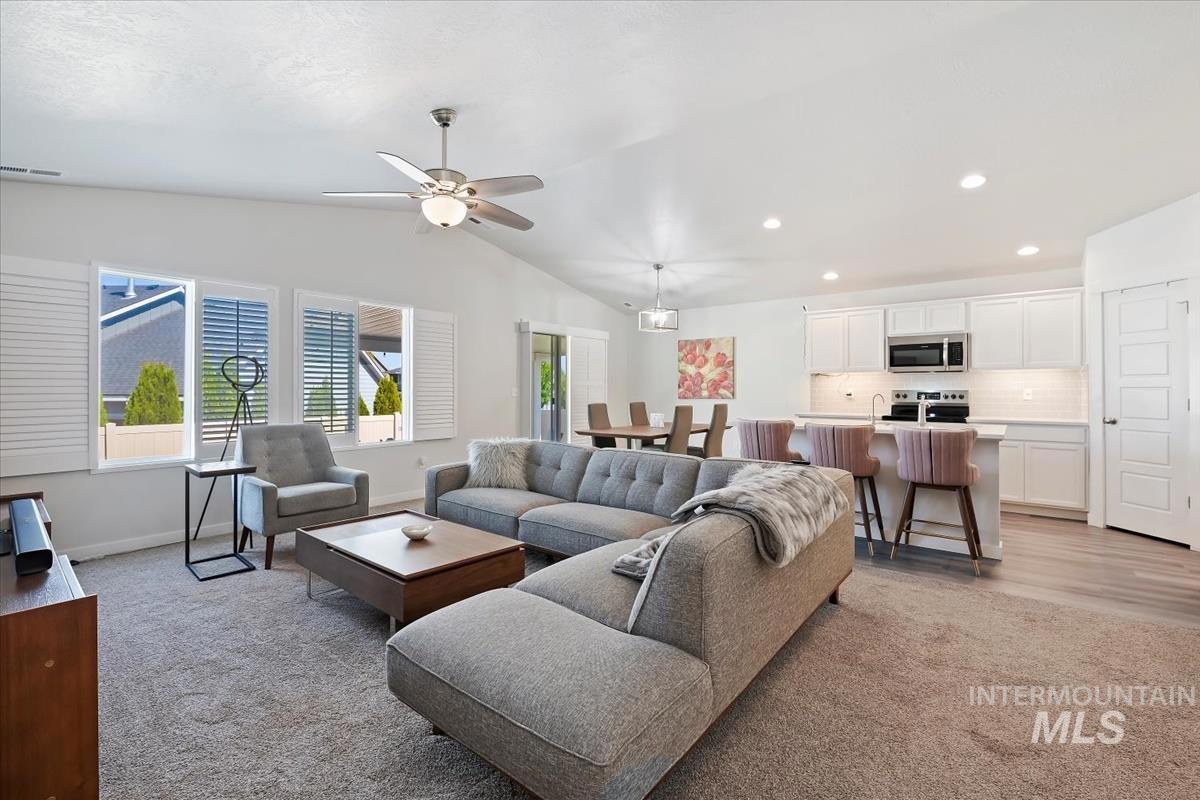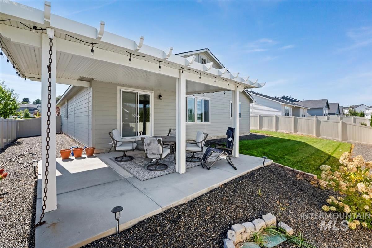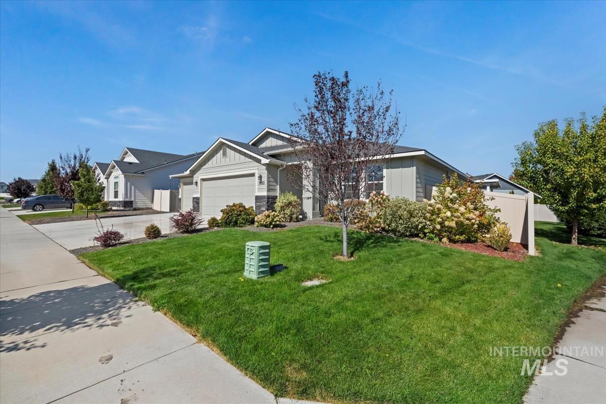 Welcome to this vibrant single-level home offering 3 bedrooms plus a den and an open, airy layout designed for both comfort and connection. Vaulted ceilings and natural light create a warm, inviting feel throughout. The kitchen is a true hub with stainless steel appliances and a walk-in pantry, flowing seamlessly into the dining and living areas. Retreat to the spacious primary suite with dual vanities, while the fully fenced yard and covered patio invite year-round gatherings and easy outdoor living. Nestled on a sun-filled corner lot, this home blends charm, convenience, and everyday enjoyment.