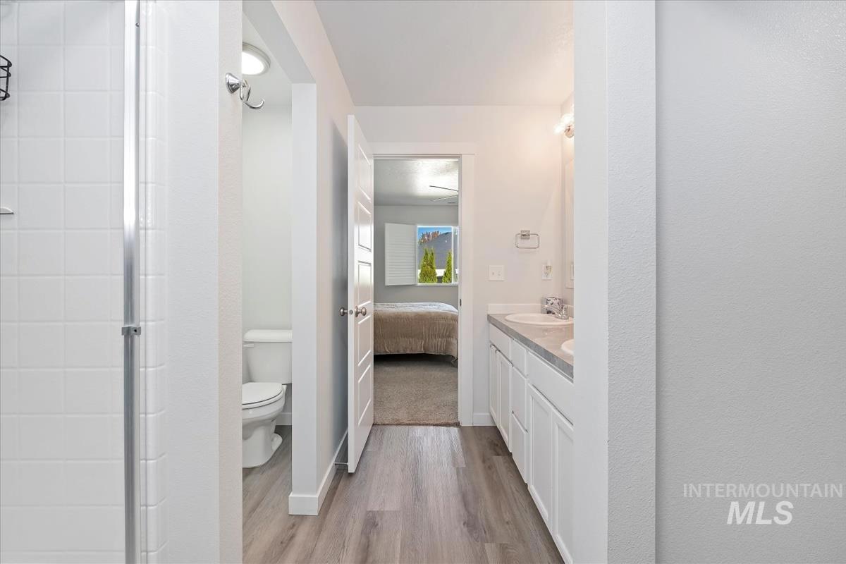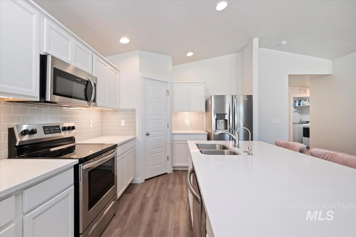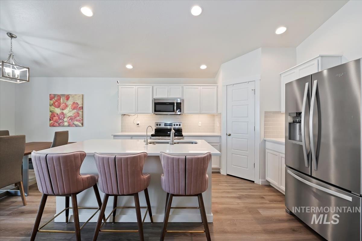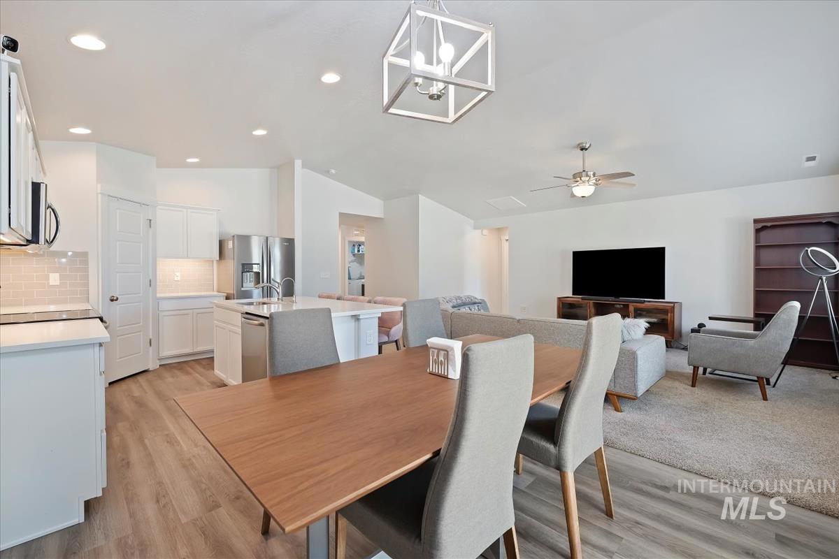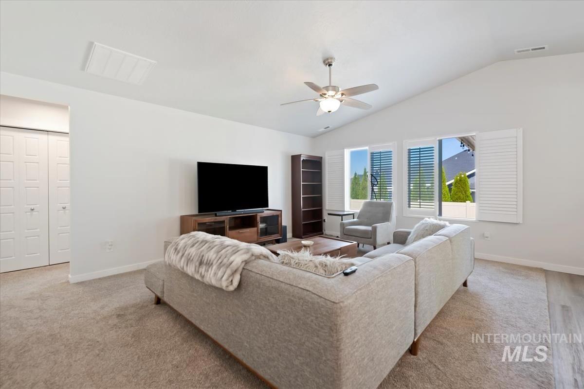 Welcome to this vibrant single-level home offering 3 bedrooms plus a den and an open, airy layout designed for both comfort and connection. Vaulted ceilings and natural light create a warm, inviting feel throughout. The kitchen is a true hub with stainless steel appliances and a walk-in pantry, flowing seamlessly into the dining and living areas. Retreat to the spacious primary suite with dual vanities, while the fully fenced yard and covered patio invite year-round gatherings and easy outdoor living. Nestled on a sun-filled corner lot, this home blends charm, convenience, and everyday enjoyment.