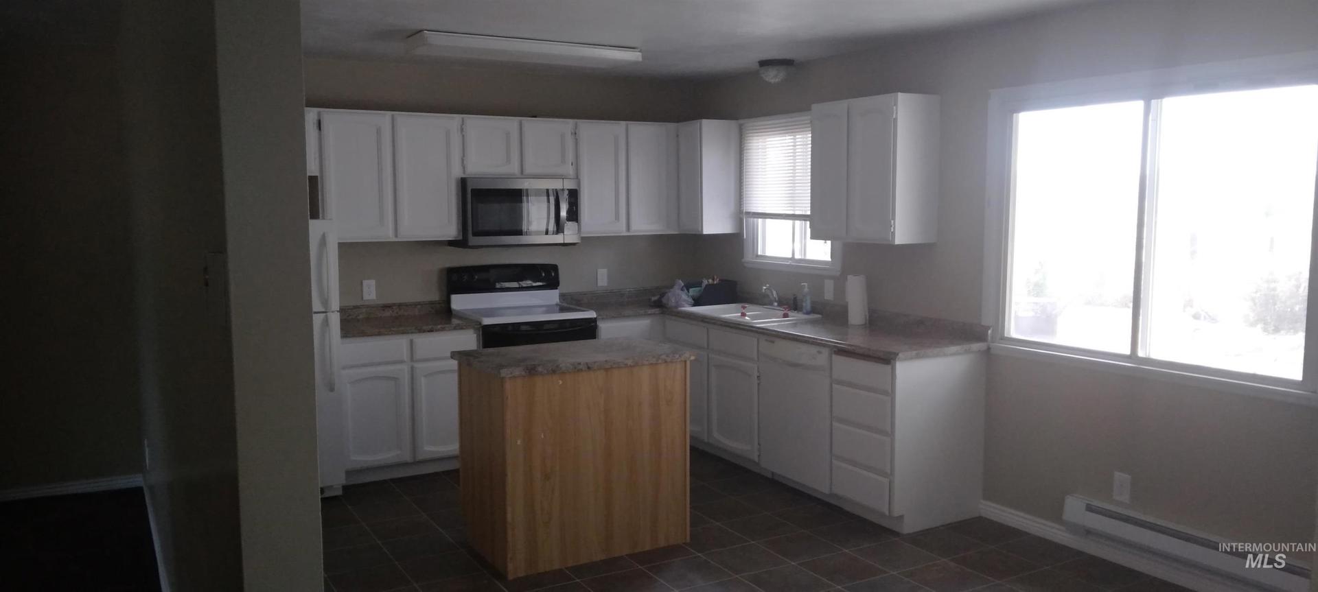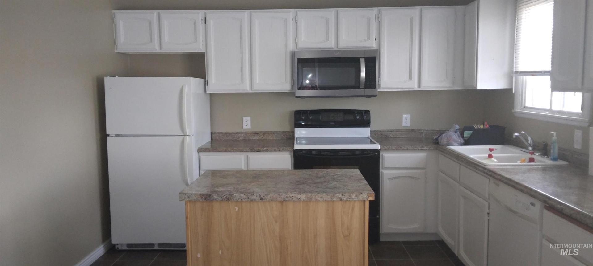 Large family home, sitting on a nice sized corner lot. This 2,080 square foot home blends easy main-level living with a bright daylight basement. The main floor features 2 bedrooms and 1 bath, an island kitchen, living room, and a dedicated laundry room. Lower level adds 3 more bedrooms, a full bath, and a spacious family room with a cozy wood stove—ideal for movie nights or guests. Practical upgrades include a newer roof and durable metal siding. Outside, enjoy an attached garage, storage shed for tools and toys, and chain-link fencing. A solid, flexible layout with room to spread out inside and out.