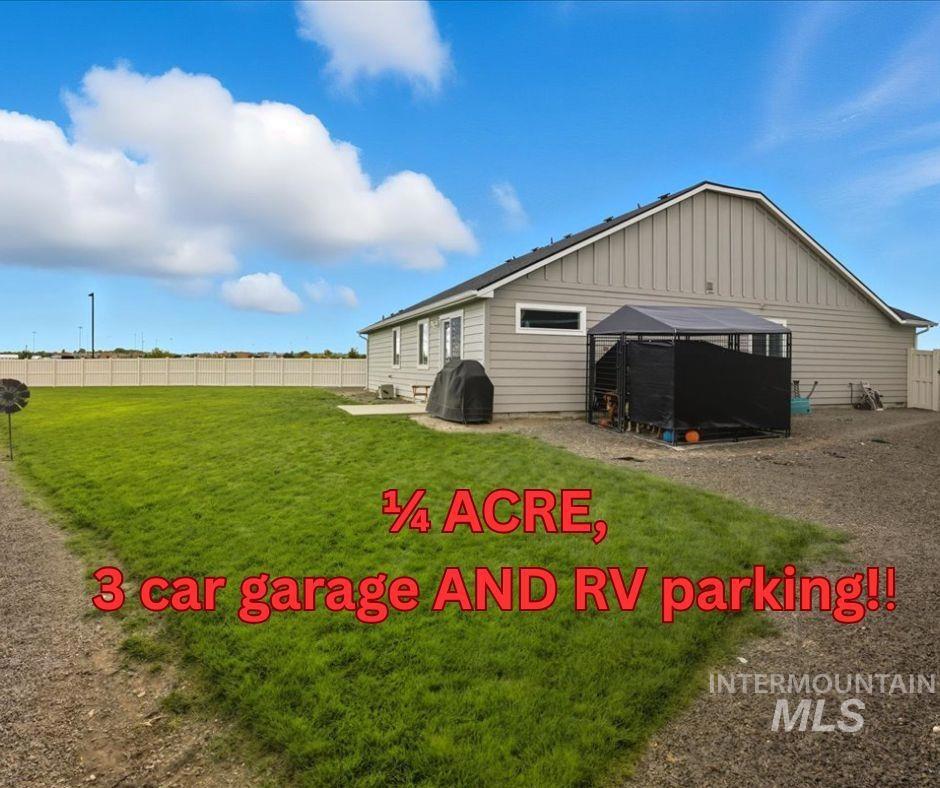 Welcome to your perfect Caldwell retreat! This beautiful 3-year-old home offers 3 bedrooms, 2 bathrooms, and a spacious, insulated 3-car garage with dedicated RV parking—all set on a generous quarter-acre lot. Nestled in a quiet neighborhood with no rear neighbors, you’ll enjoy both privacy and peace. Inside, you’ll find a modern open-concept layout with a bright kitchen, large island, and plenty of storage. The split-bedroom design provides a private primary suite with dual vanities and walk-in closet. Step outside to the backyard where wide-open views and extra space give you room to relax, garden, or entertain. With its ideal location, thoughtful upgrades, and rare RV parking, this property has it all—comfort, convenience, and room to grow.