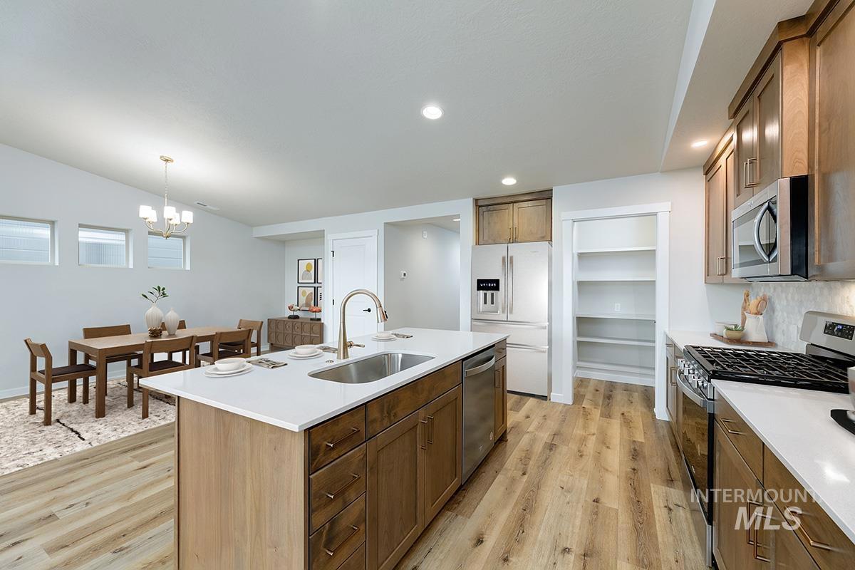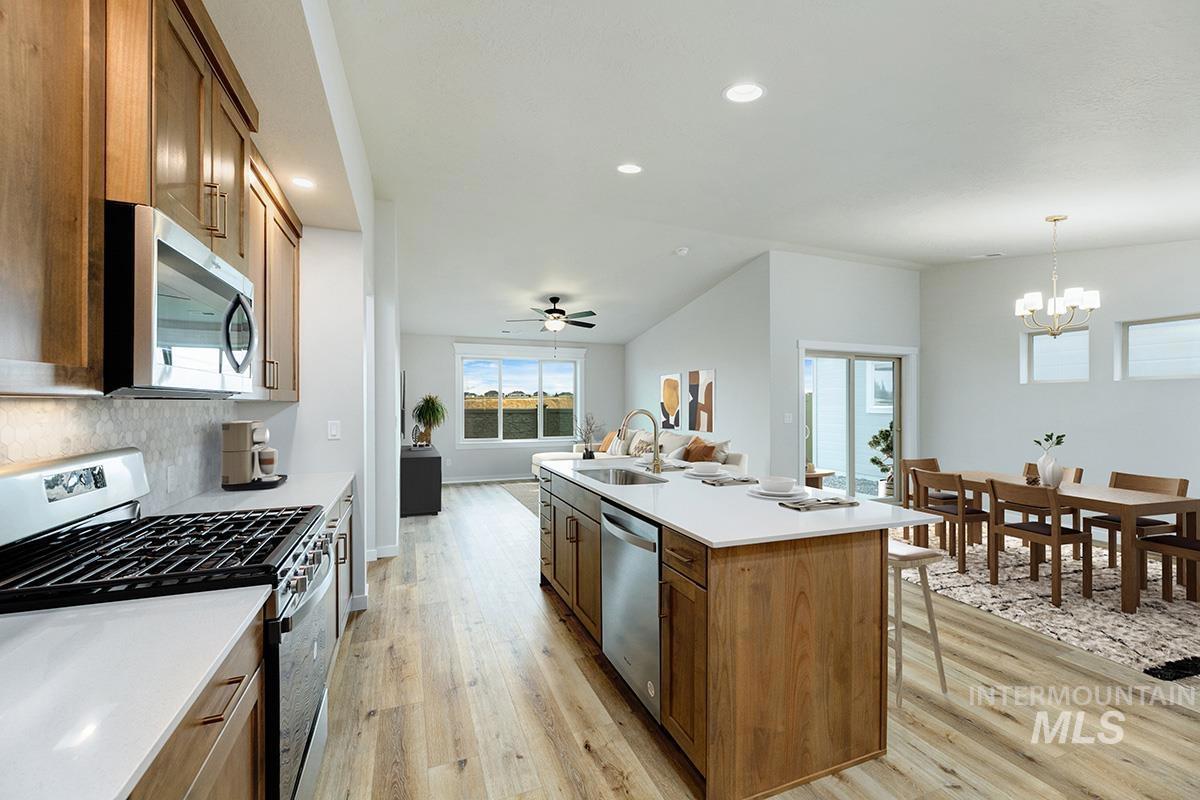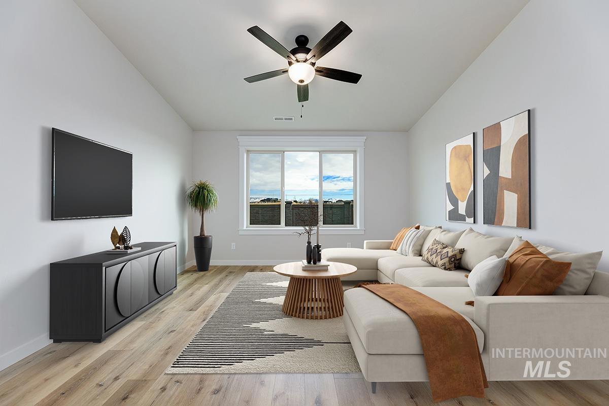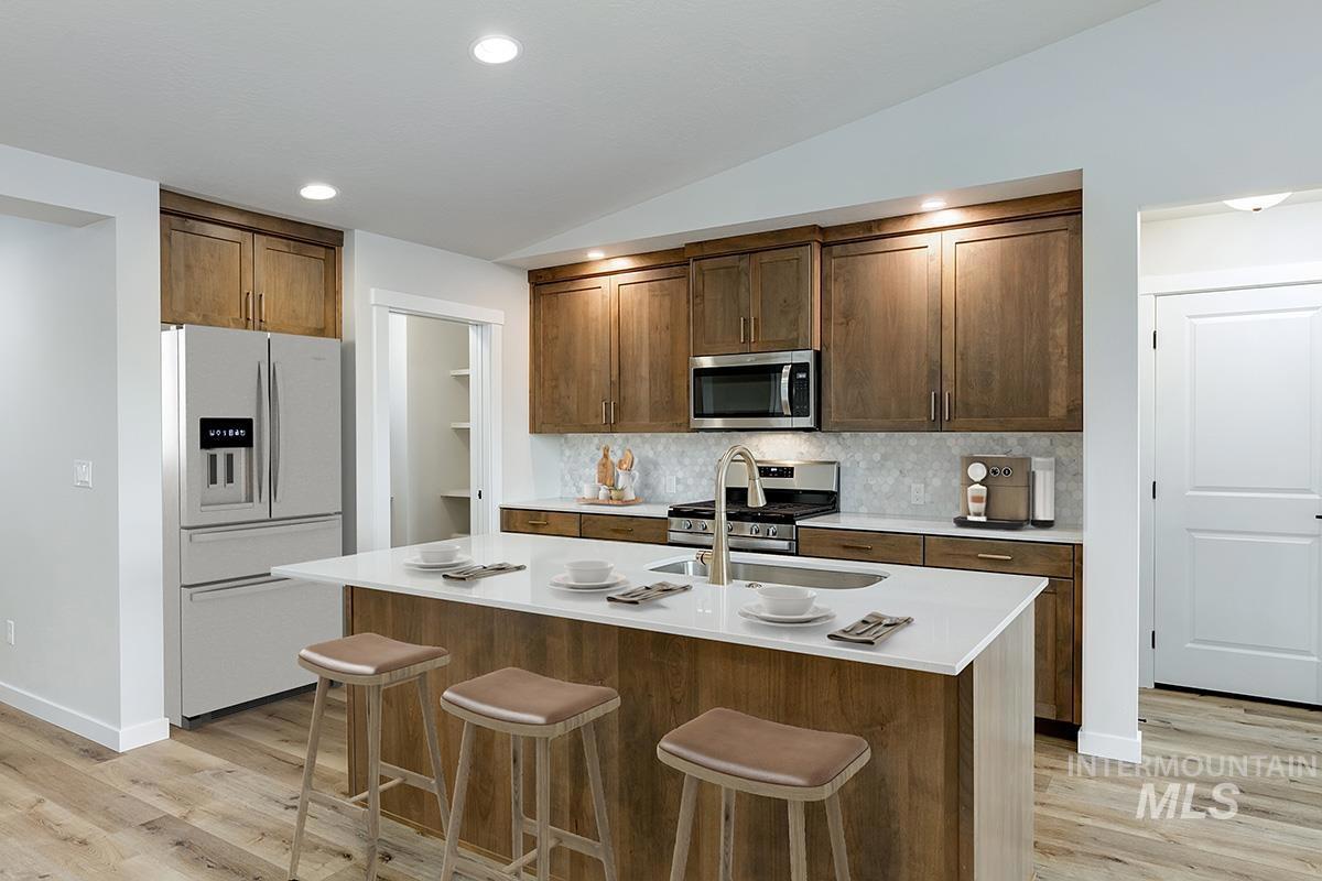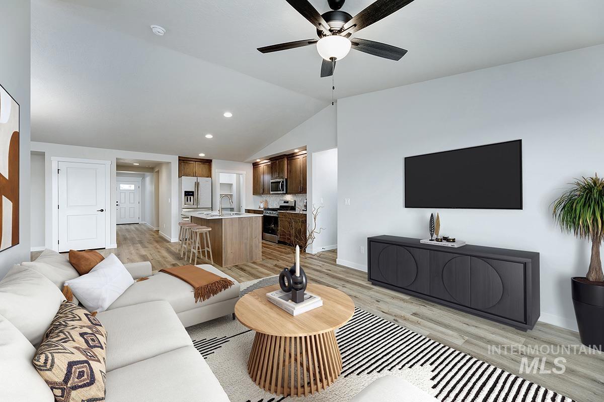 The HAVASU MODEL| Blackrock Homes. Introducing the Urban Collection at Skybreak! Enjoy COMMUNITY POOL, pickle ball courts, walking paths, community dog parks & playground. No backyard neighbors! INCLUDES FULL VINYL FENCING & FRONT & REAR YARD SPRINKLERS & LANDSCAPING. All quartz countertops (No cheap laminate), hardwood (lvp), upgraded trim detail, SS appliances including 5 burner backless gas LG range. Vaulted ceilings, spacious great room. Light & airy floor plan w/lots of natural light. Easy access to the interstate, Downtown Meridian, shopping, dining, & entertainment. *photos similar with same floor plan but not interior package. Interior package - Pewter